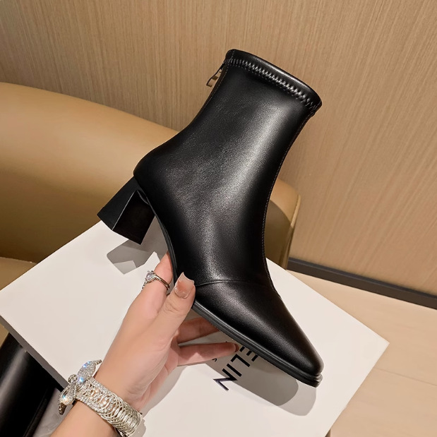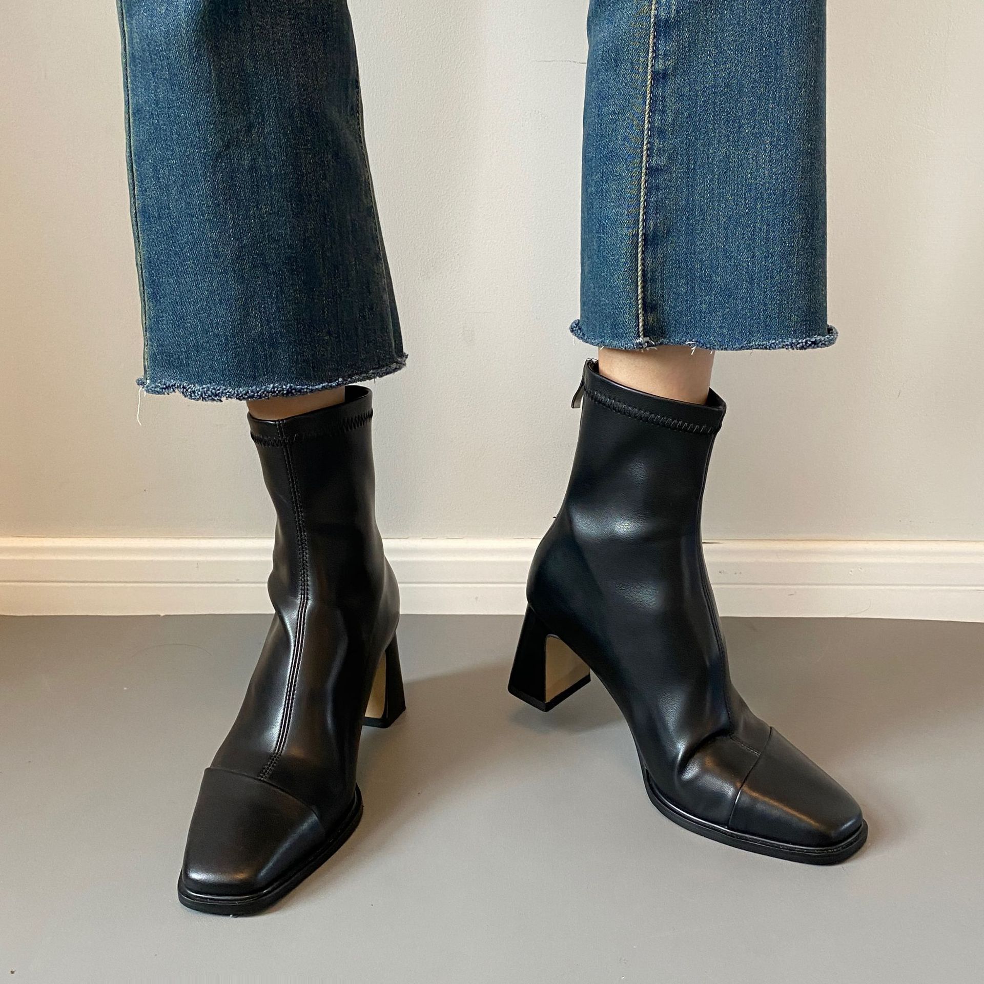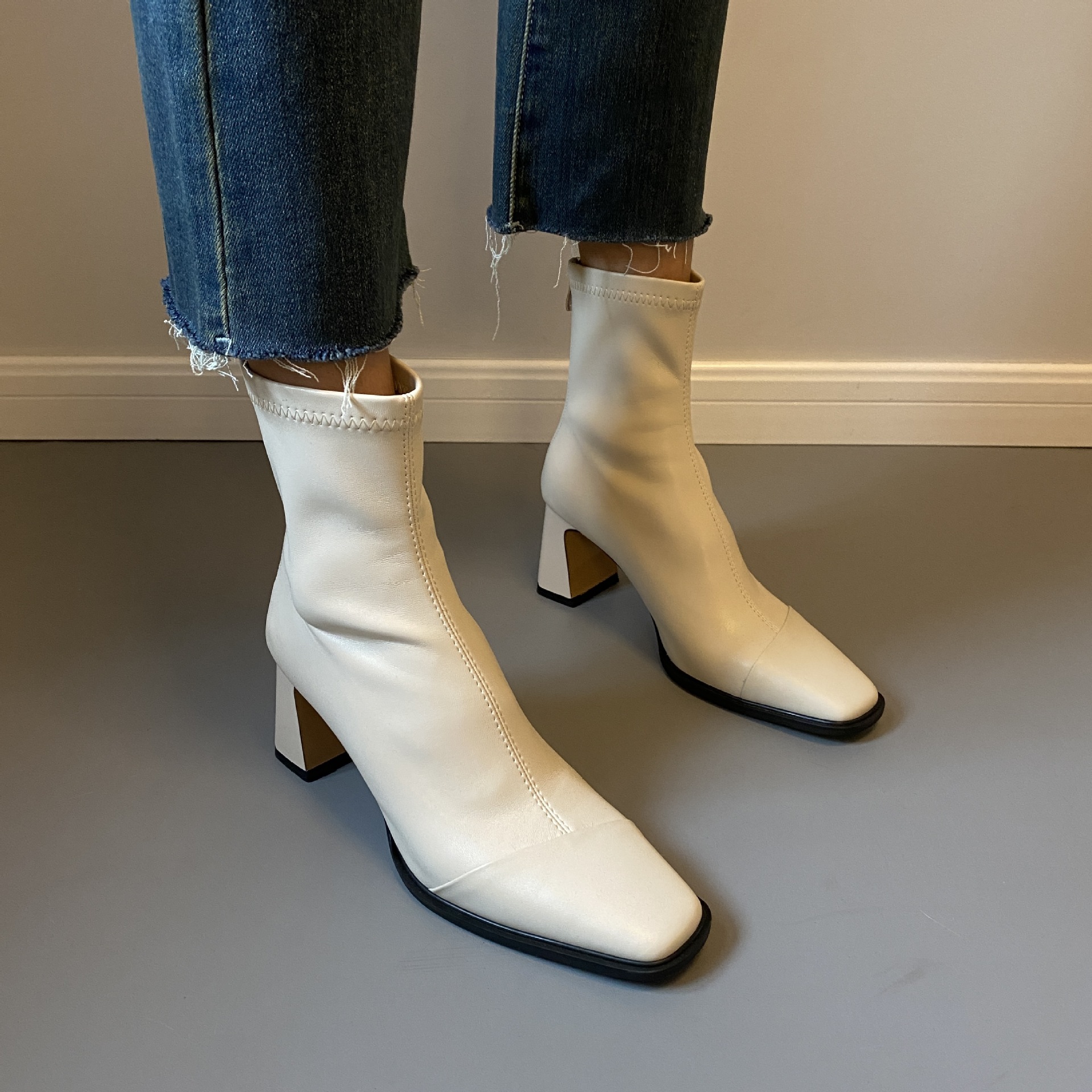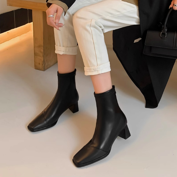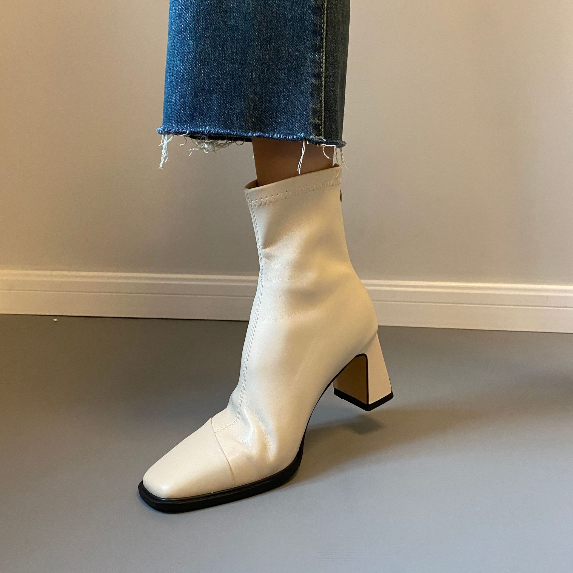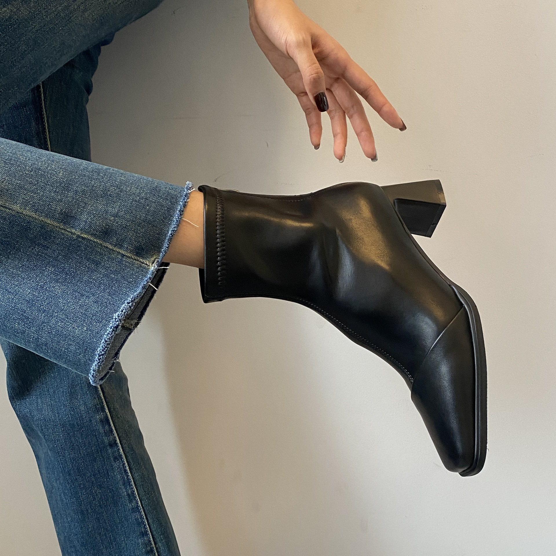 재고! Cowhide 프렌치 레트로 씬 부츠 여성용 마틴 부츠 가을 겨울 기모 하이힐 짧은 부츠 두꺼운 힐스토어 가기