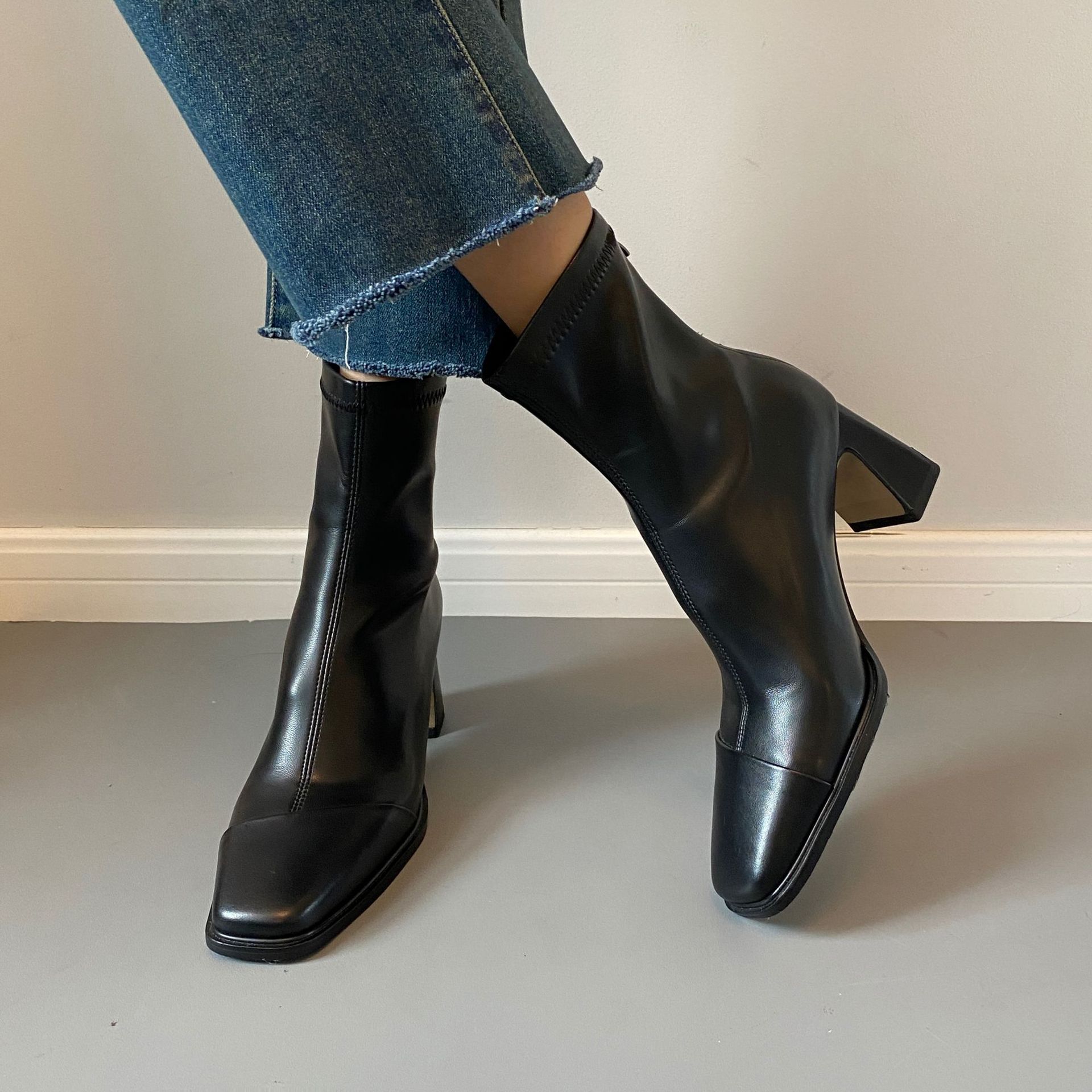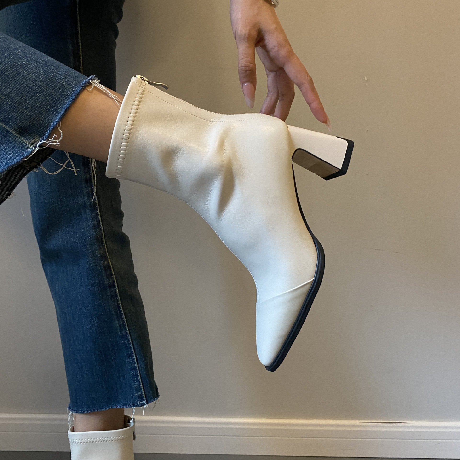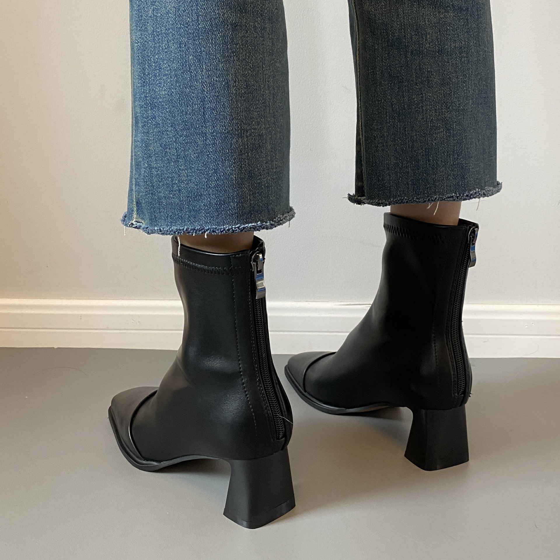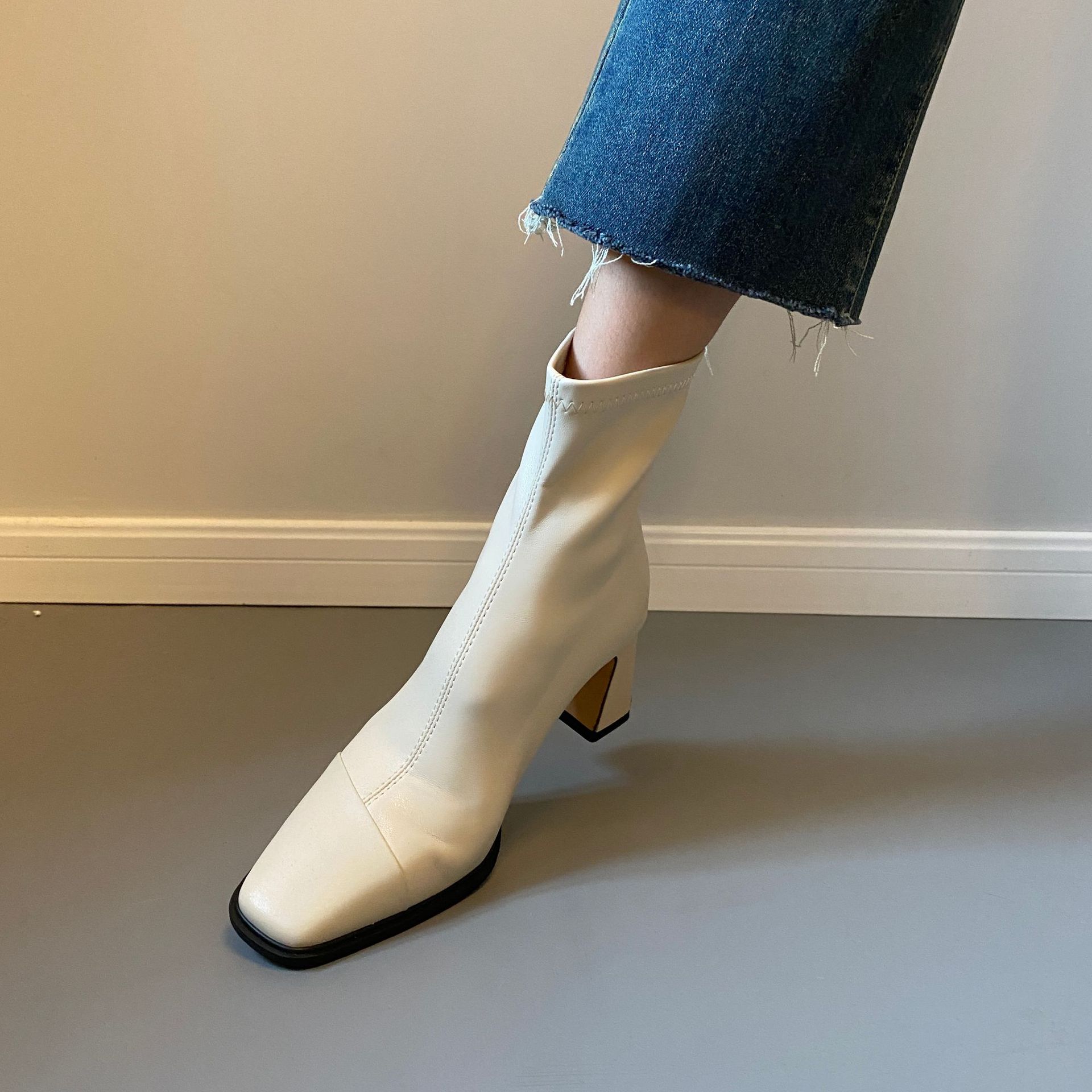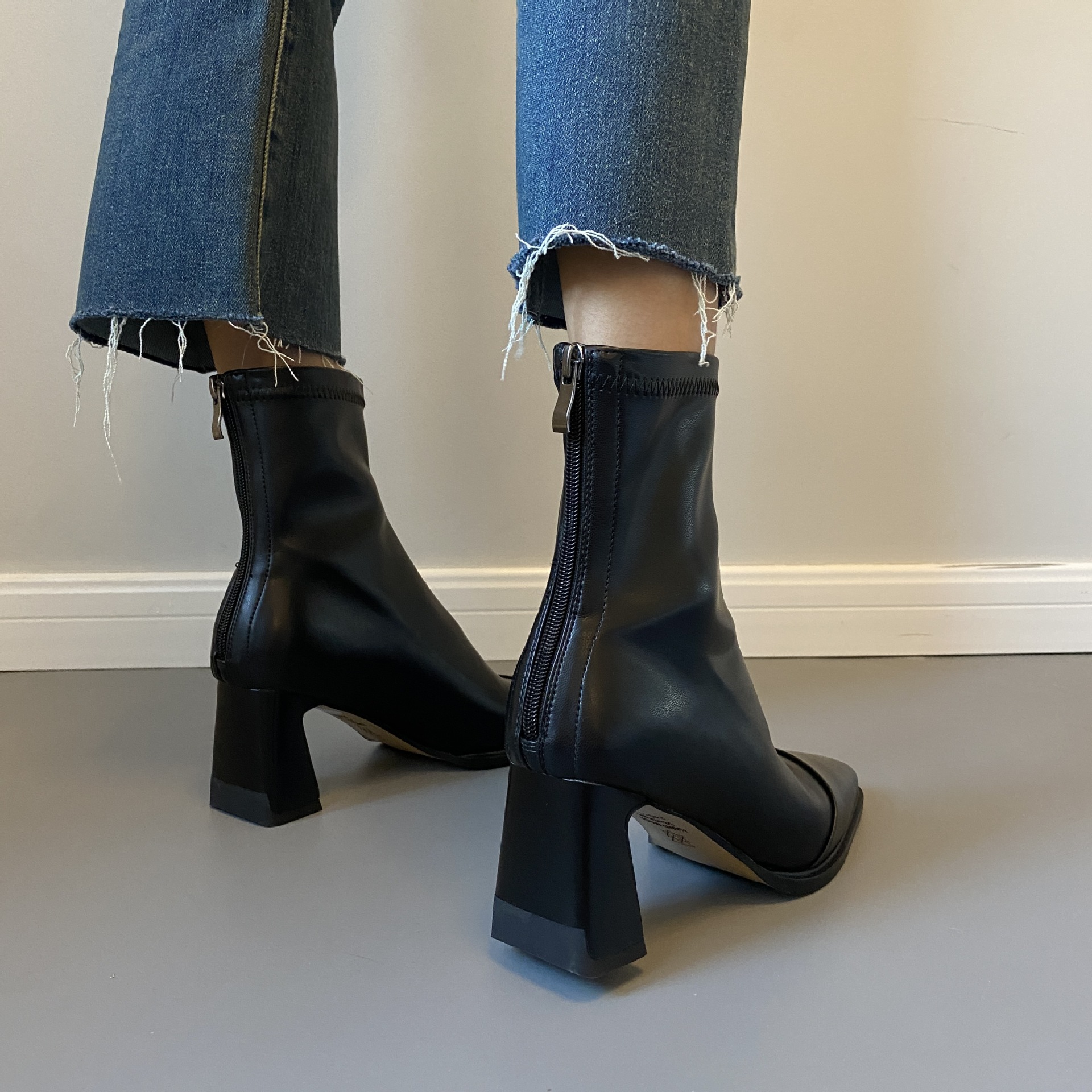 재고! Cowhide 프렌치 레트로 씬 부츠 여성용 마틴 부츠 가을 겨울 기모 하이힐 짧은 부츠 두꺼운 힐스토어 가기