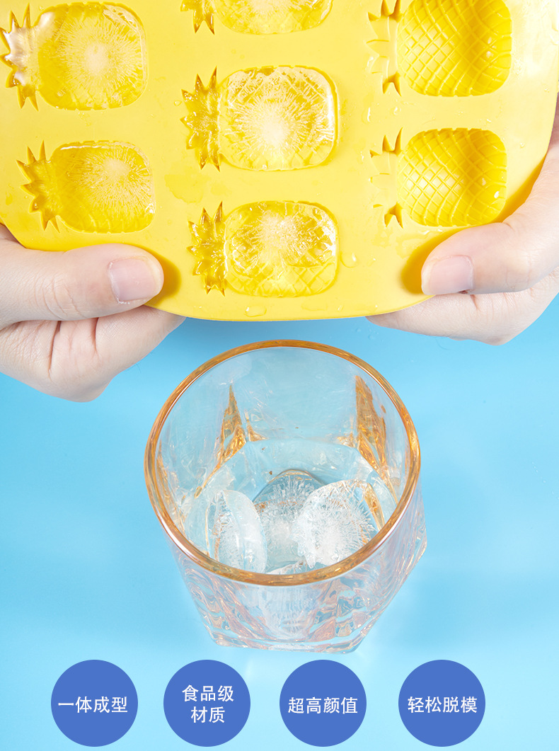 이방 도매 창조적 인 만화 아이스 큐브 10 그리드 실리콘 아이스 큐브 금형 과일 파인애플 아이스 몰드 아이스 큐브