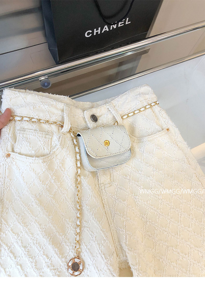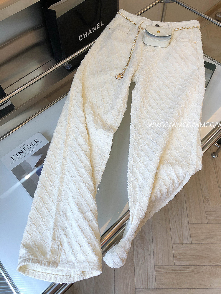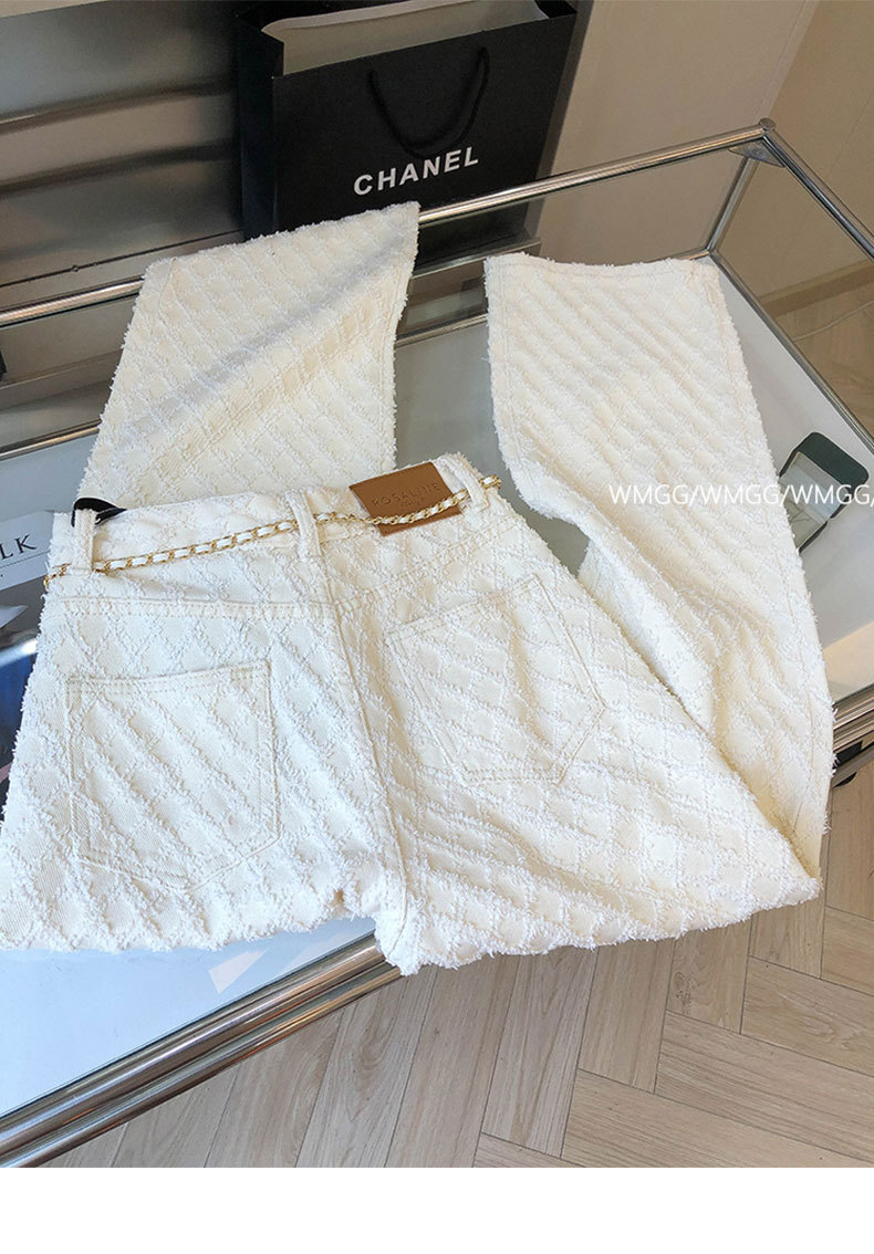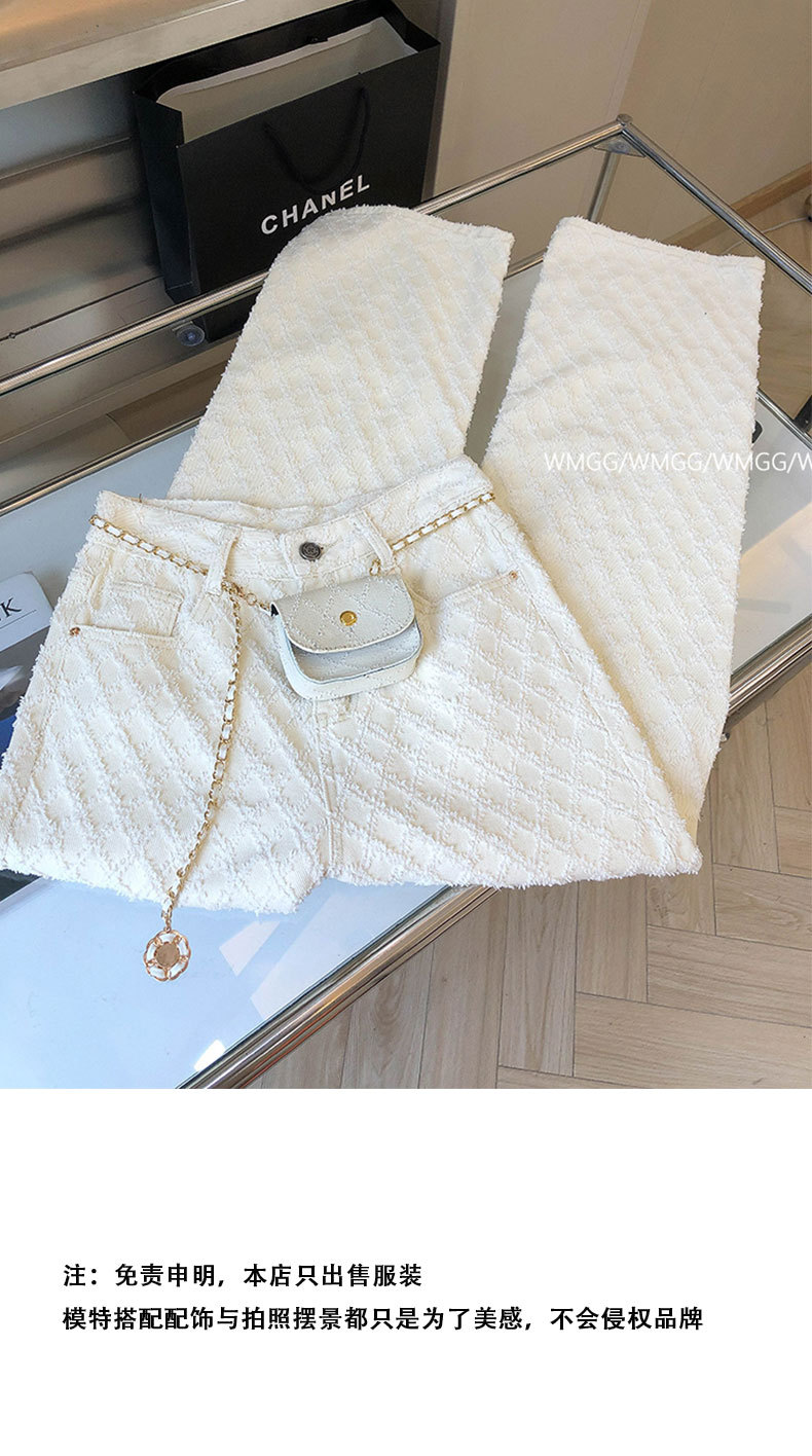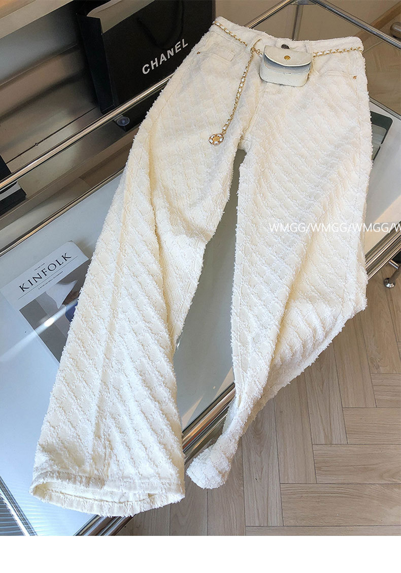 디자인 센스 향기로운 스타일 격자 무늬 화이트 스트레이트 청바지 여성의 2024 봄과 여름 느슨한 슬림 넓은 다리 바지