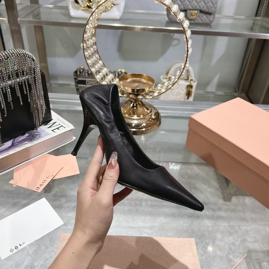 이른 봄 새 가죽 부드러운 가죽 얕은 뾰족한 스틸레토 힐 섹시한 올매치 원피스 연회 여성 신발