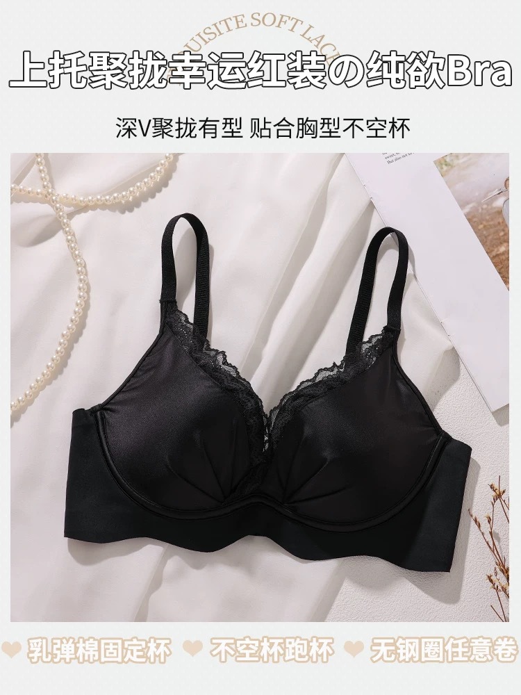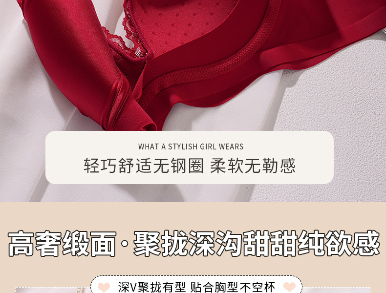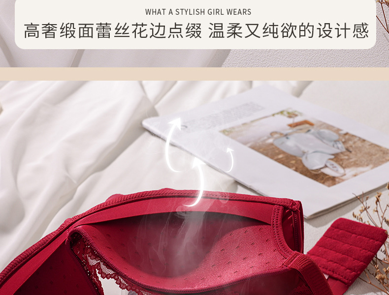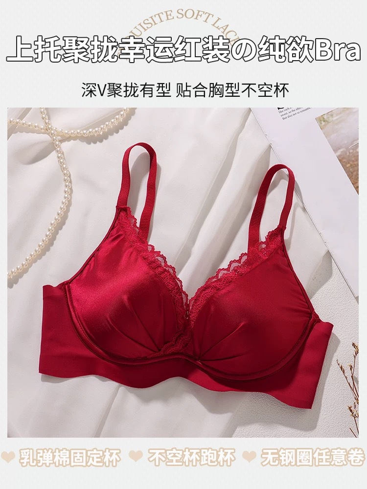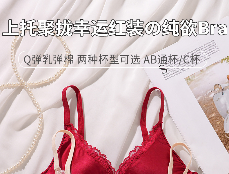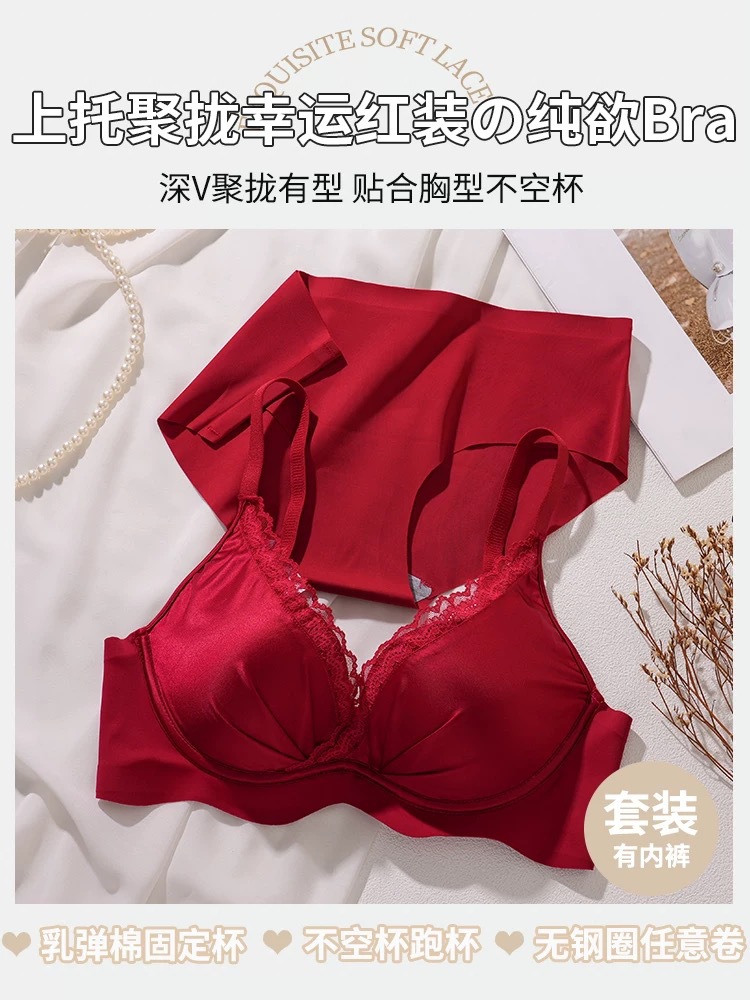 브닝 니언 속옷 여성의 작은 가슴 푸시 업 스틸 링 조정 가능한 대형 가슴 어퍼 브래킷 안티 처짐 레드 브라 세트스토어 가기