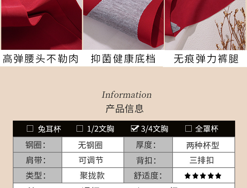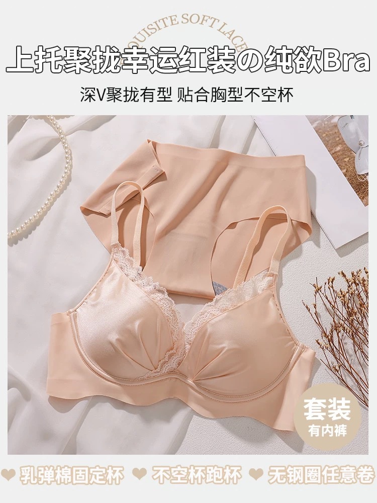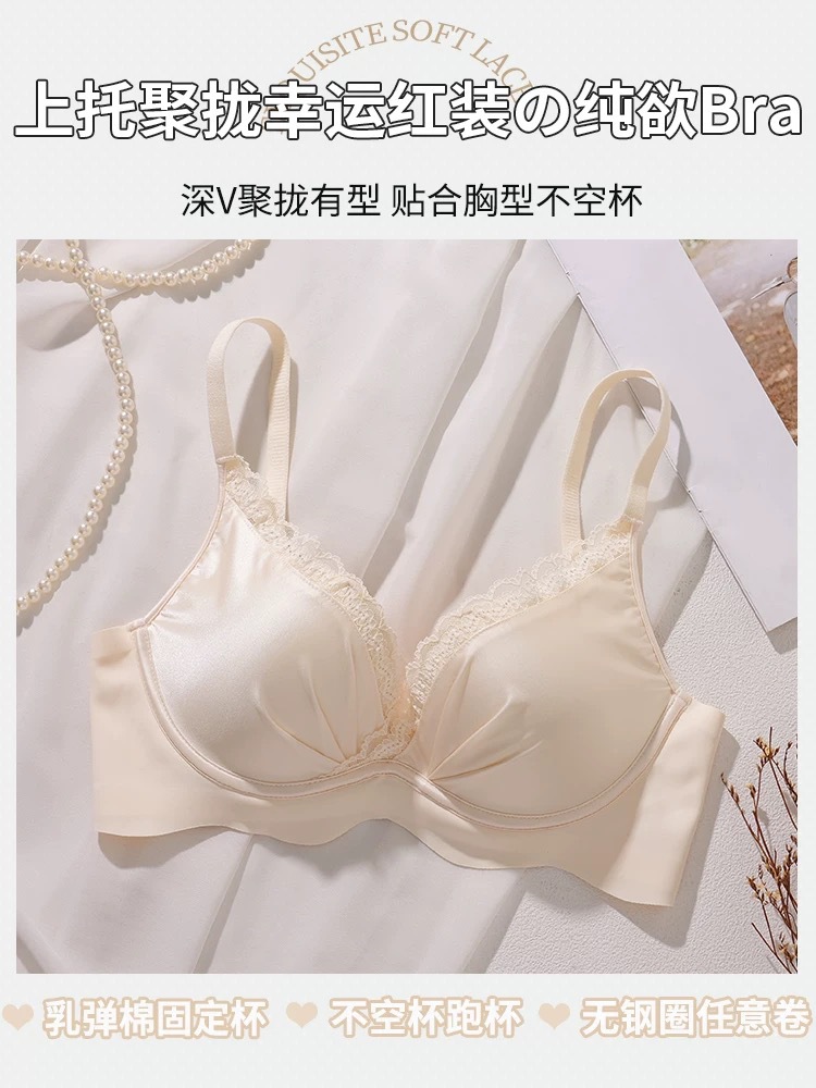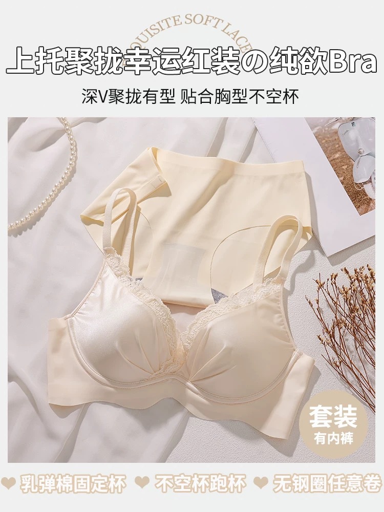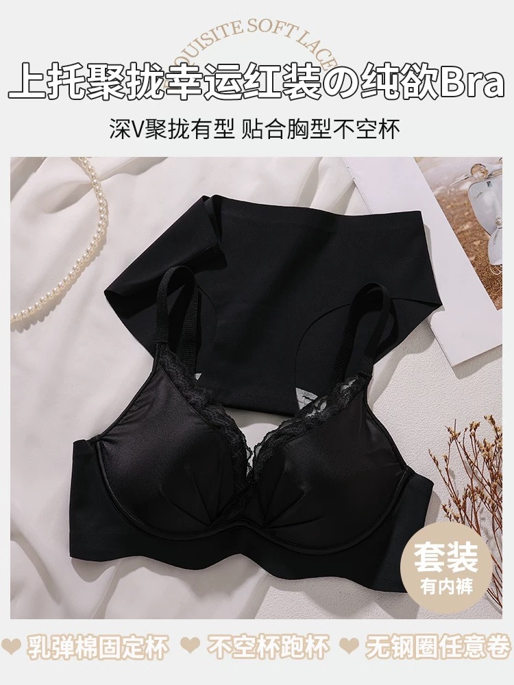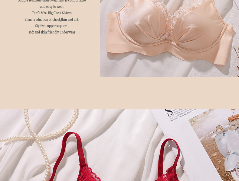 브닝 니언 속옷 여성의 작은 가슴 푸시 업 스틸 링 조정 가능한 대형 가슴 어퍼 브래킷 안티 처짐 레드 브라 세트스토어 가기