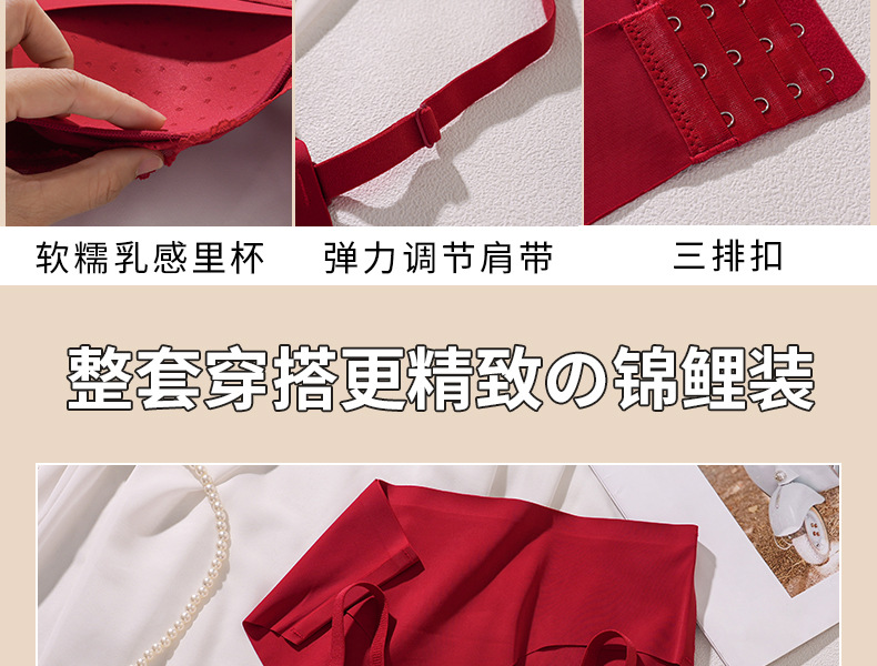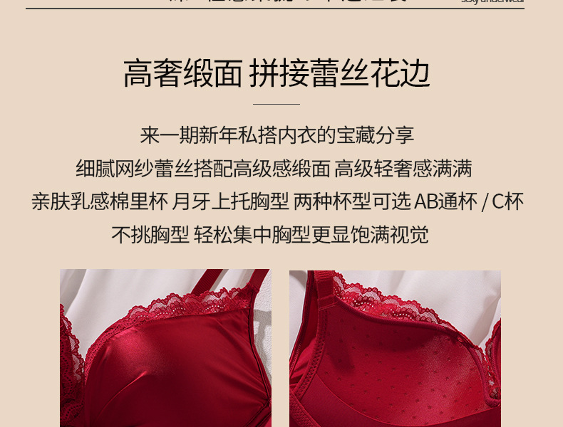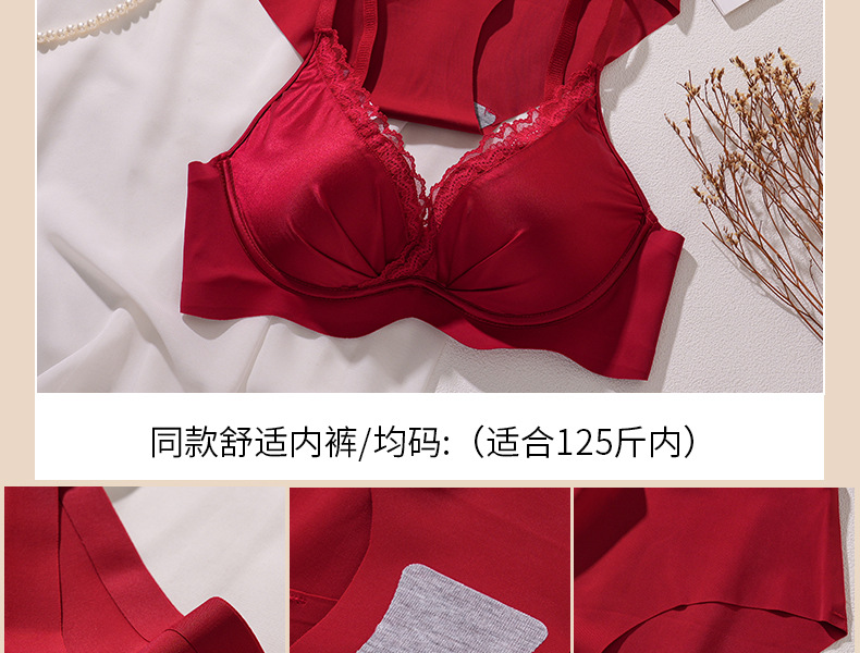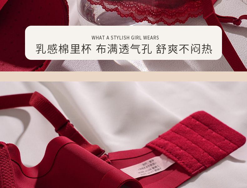 브닝 니언 속옷 여성의 작은 가슴 푸시 업 스틸 링 조정 가능한 대형 가슴 어퍼 브래킷 안티 처짐 레드 브라 세트