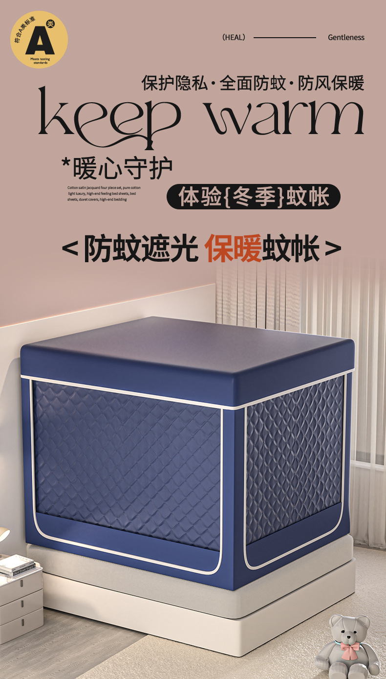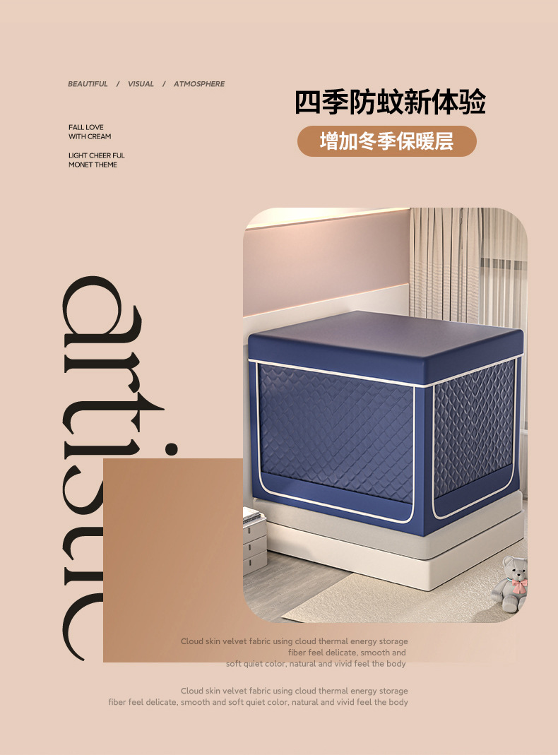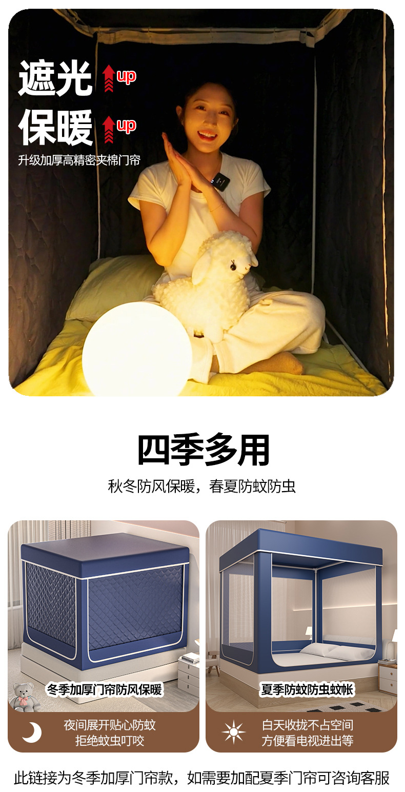 2025년 신형 보온 방지 모기장 겨울용 지퍼형 기모 누빔 침대 커튼 가정용 침실 강력한 차광 침대 커튼스토어 가기