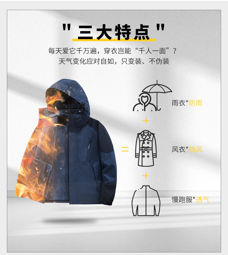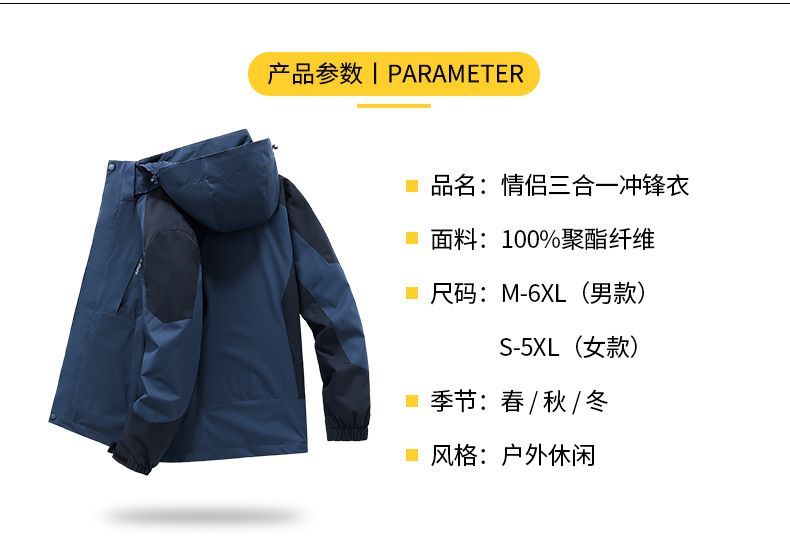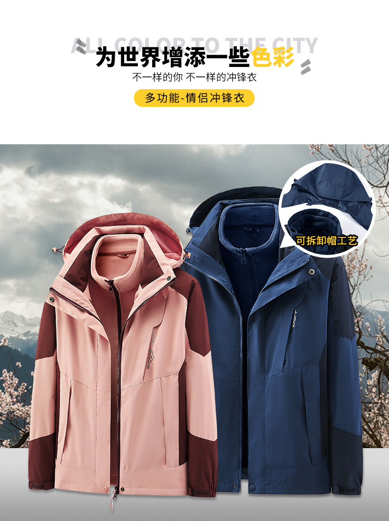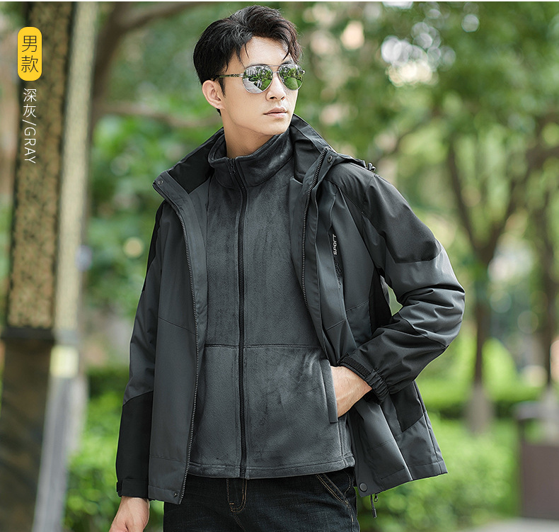남성과 여성의 3 대 1 후드 자켓 코트 기모 가을과 겨울 커플을위한 두꺼운 냉간 마운틴 스타일스토어 가기