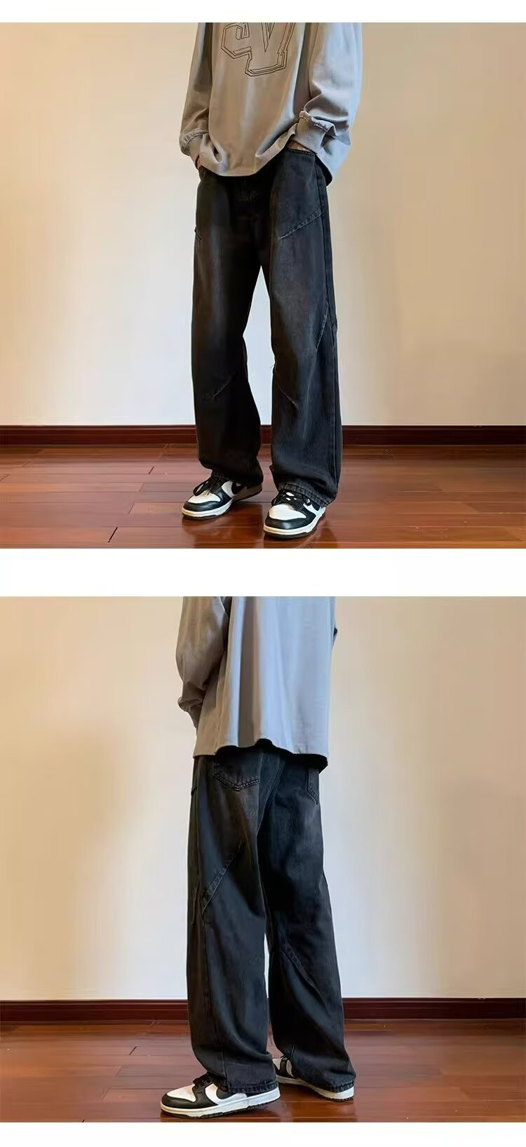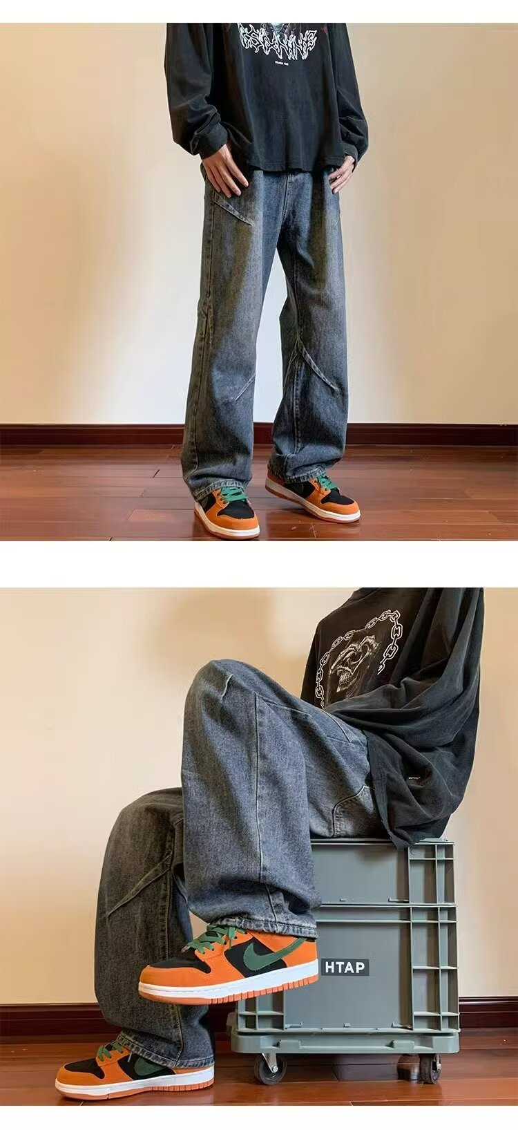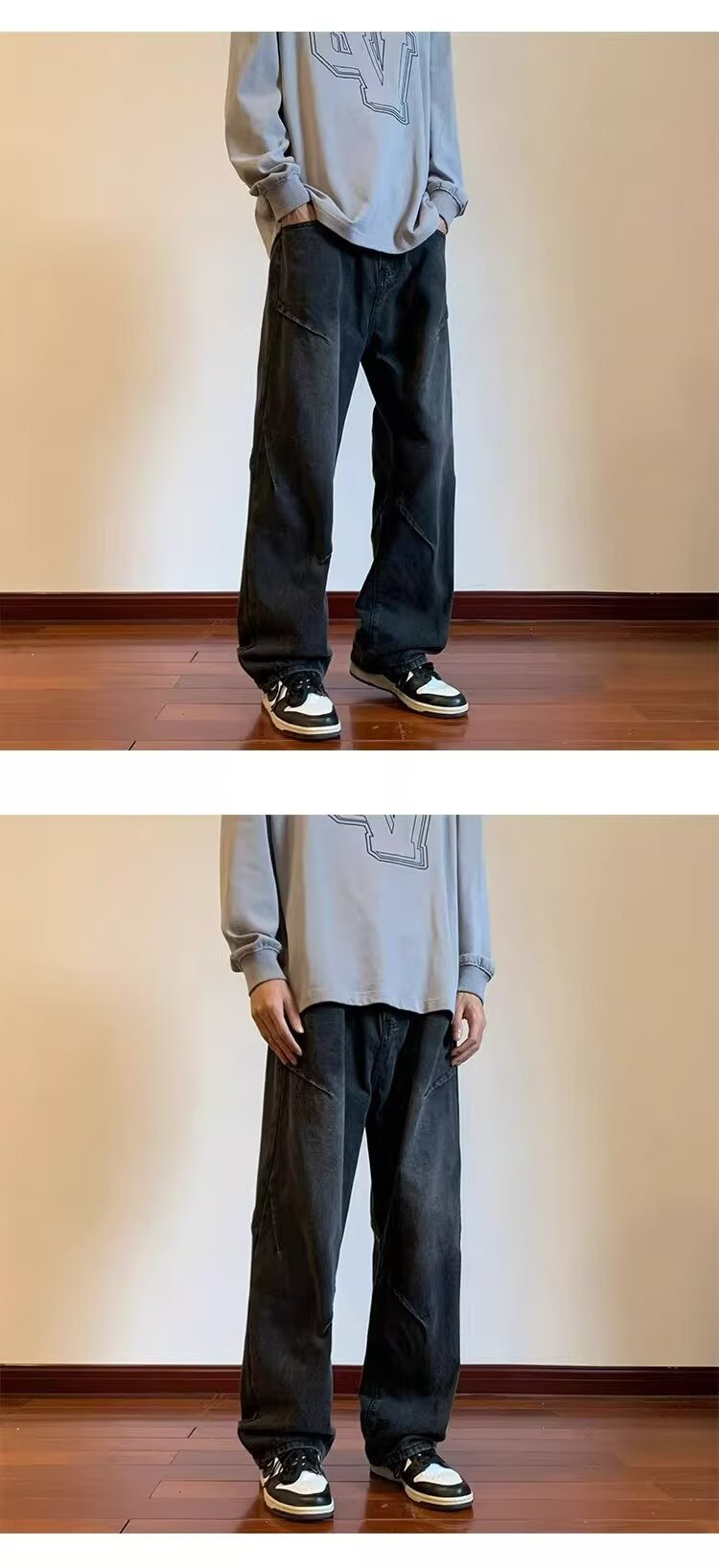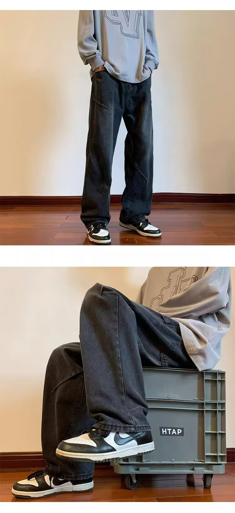 검은 청바지 남자 가을과 겨울 미국 빈티지 세척 느슨한 스트레이트 바지 하이 스트리트 바이브 트렌디 브랜드 바지 소년스토어 가기