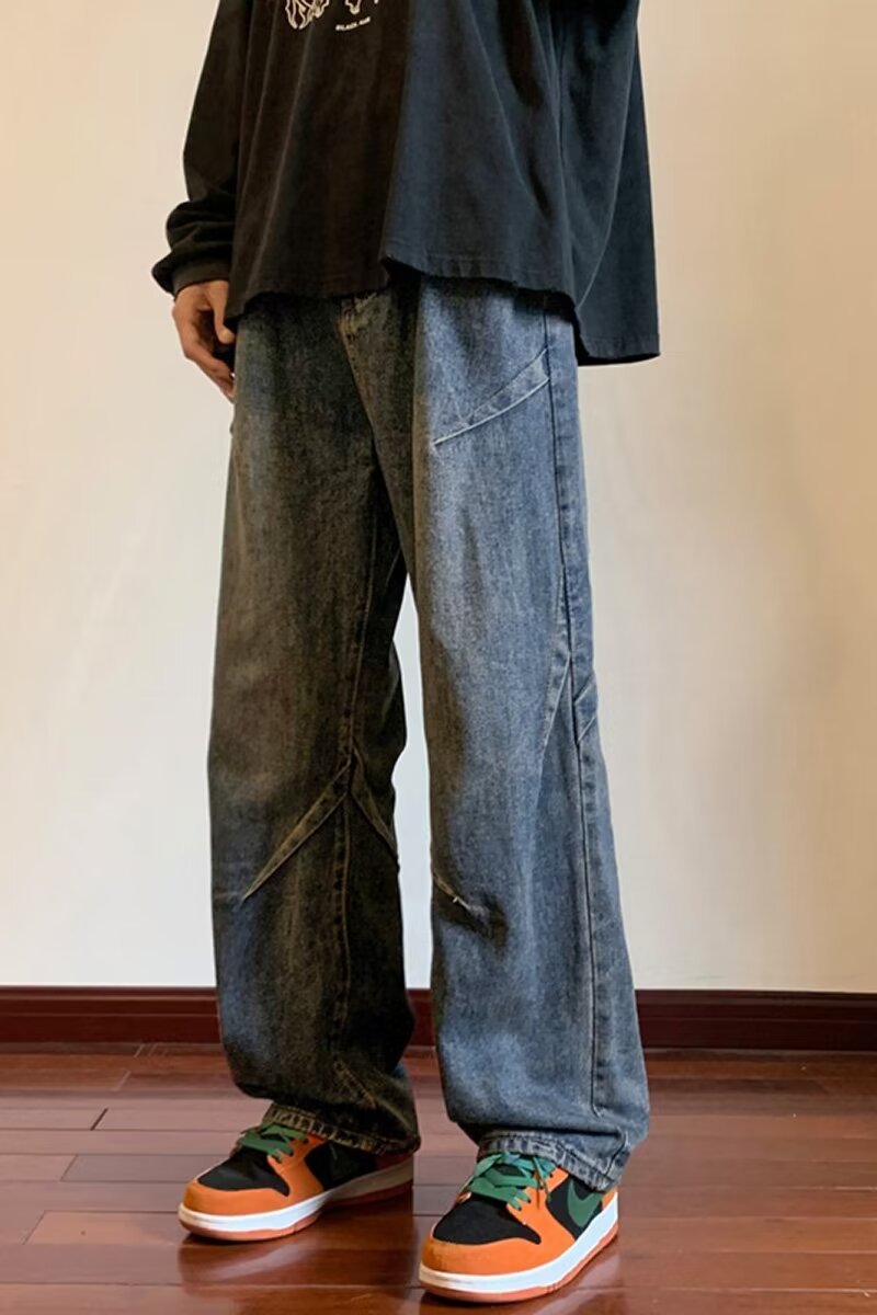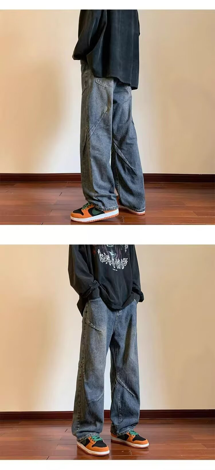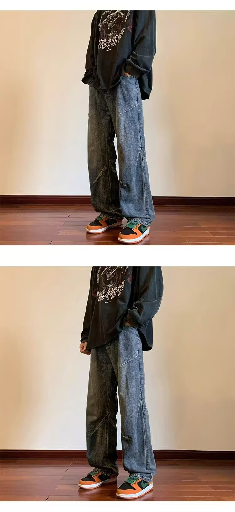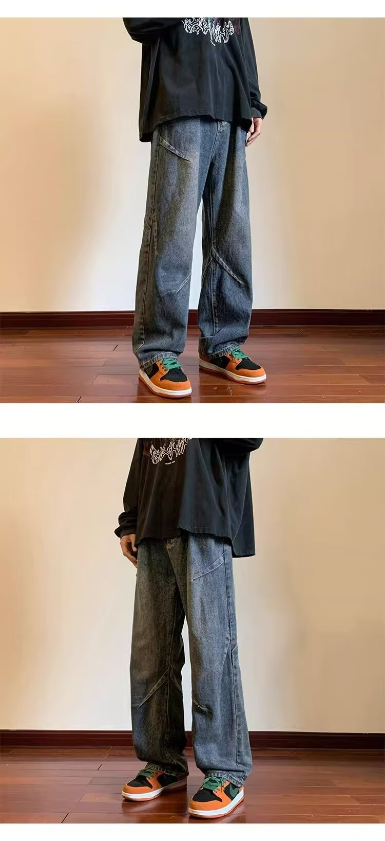 검은 청바지 남자 가을과 겨울 미국 빈티지 세척 느슨한 스트레이트 바지 하이 스트리트 바이브 트렌디 브랜드 바지 소년스토어 가기