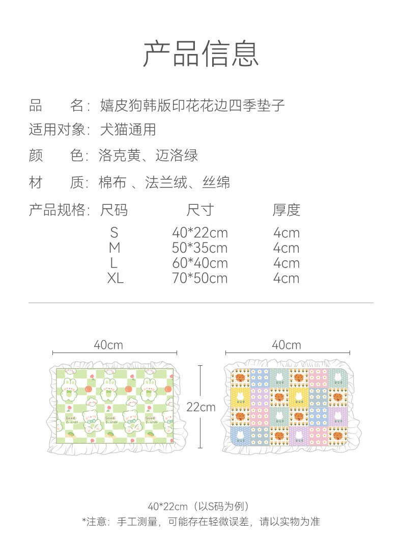 한국 스타일 레이스 고양이 매트 올 시즌 유니버설 고양이 케이지 개 케이지 가능 애완 동물 매트 여름 쿨 매트 두꺼운 둥지