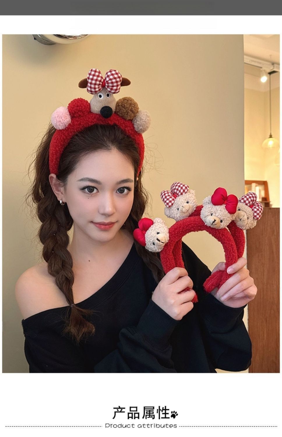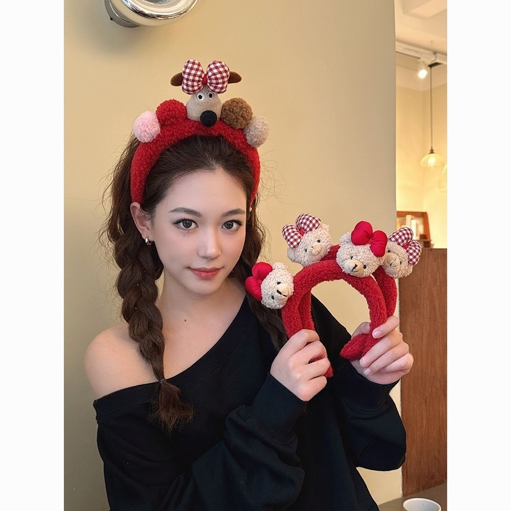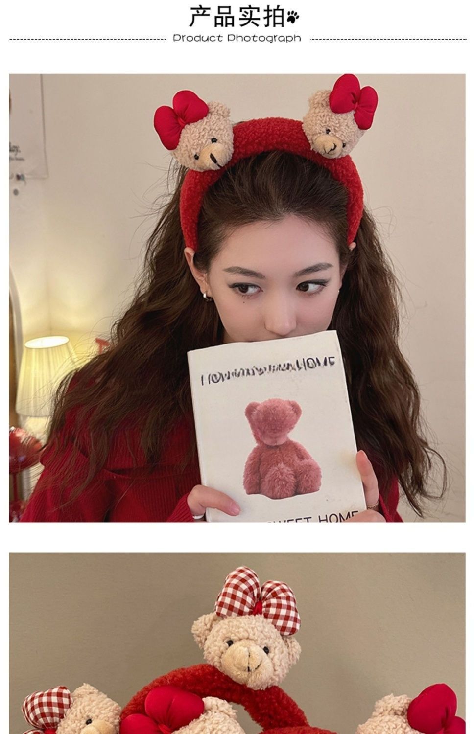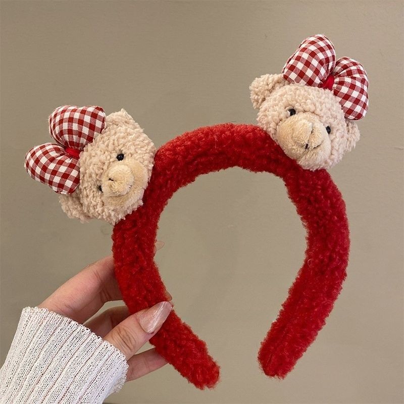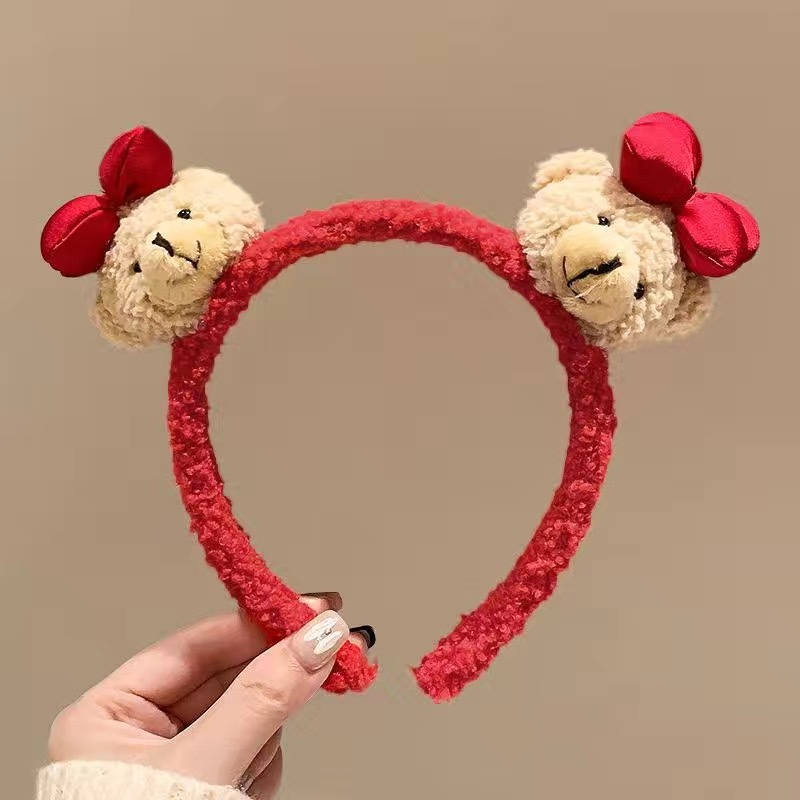 2025 새로운 빨간 귀여운 헤어 밴드 활 곰 강아지 머리띠 얼굴 마스크 압력 헤어 안티 손실 헤어 액세서리스토어 가기