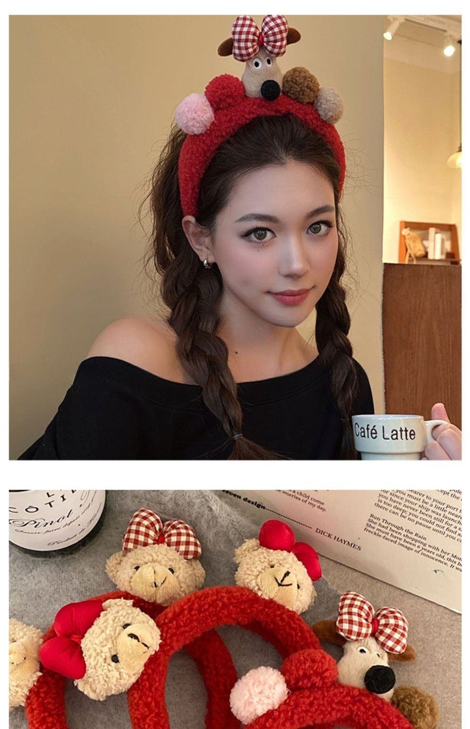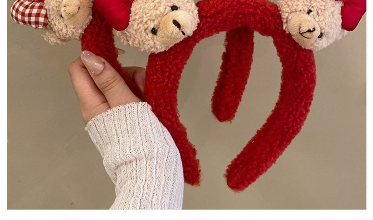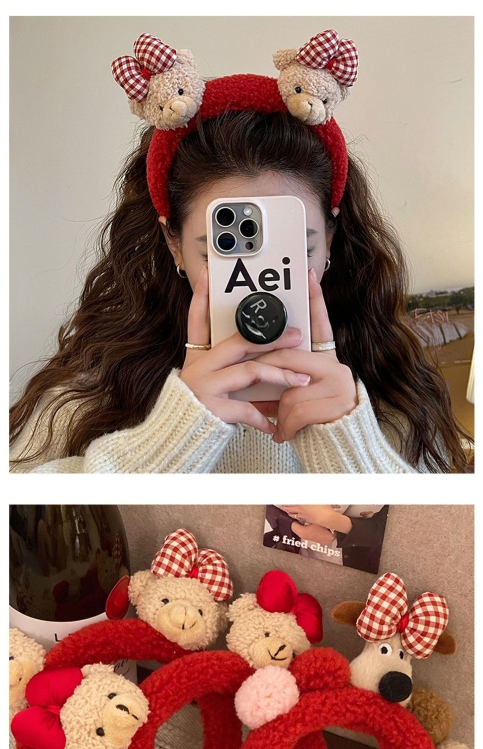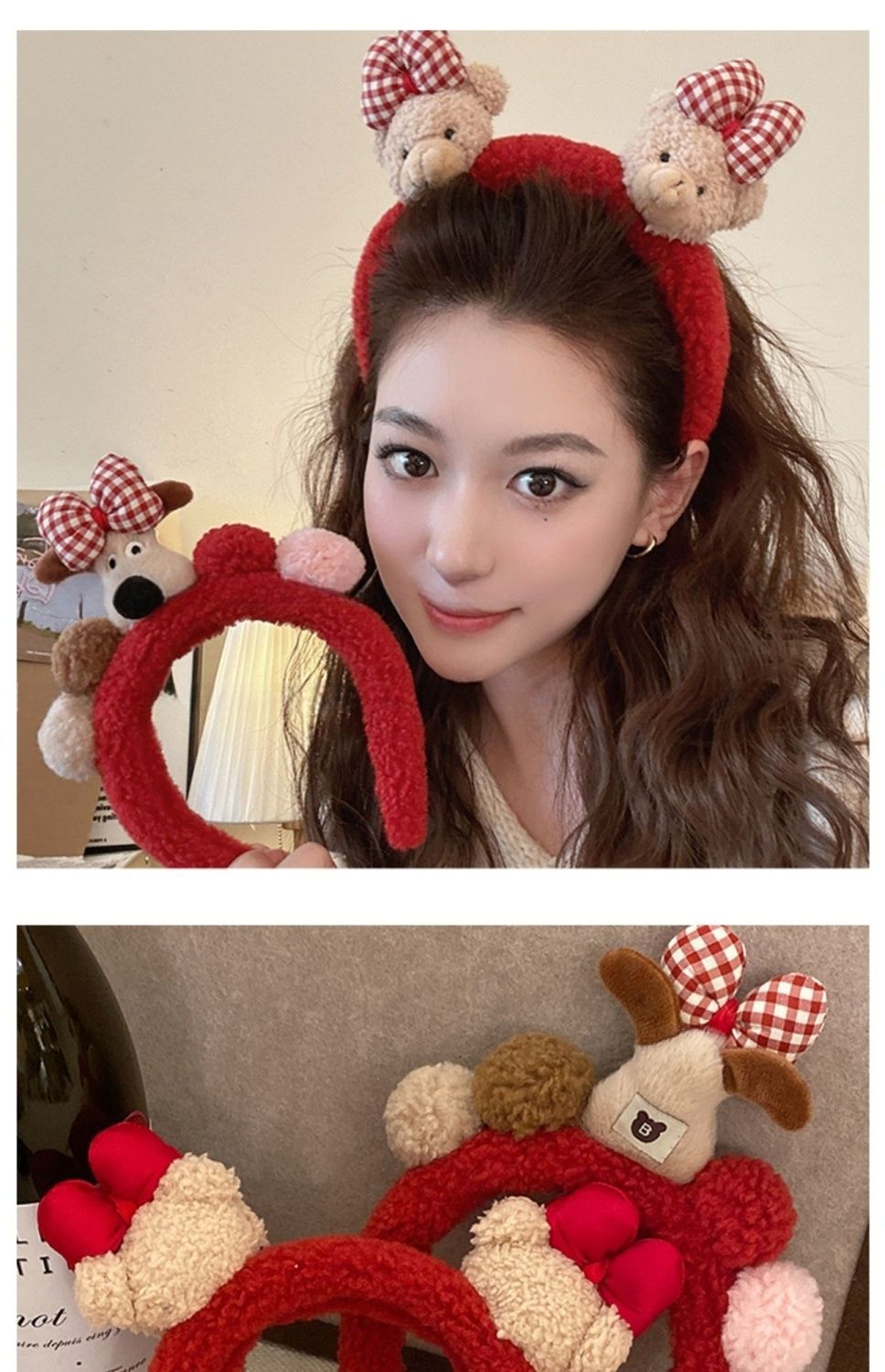 2025 새로운 빨간 귀여운 헤어 밴드 활 곰 강아지 머리띠 얼굴 마스크 압력 헤어 안티 손실 헤어 액세서리스토어 가기
