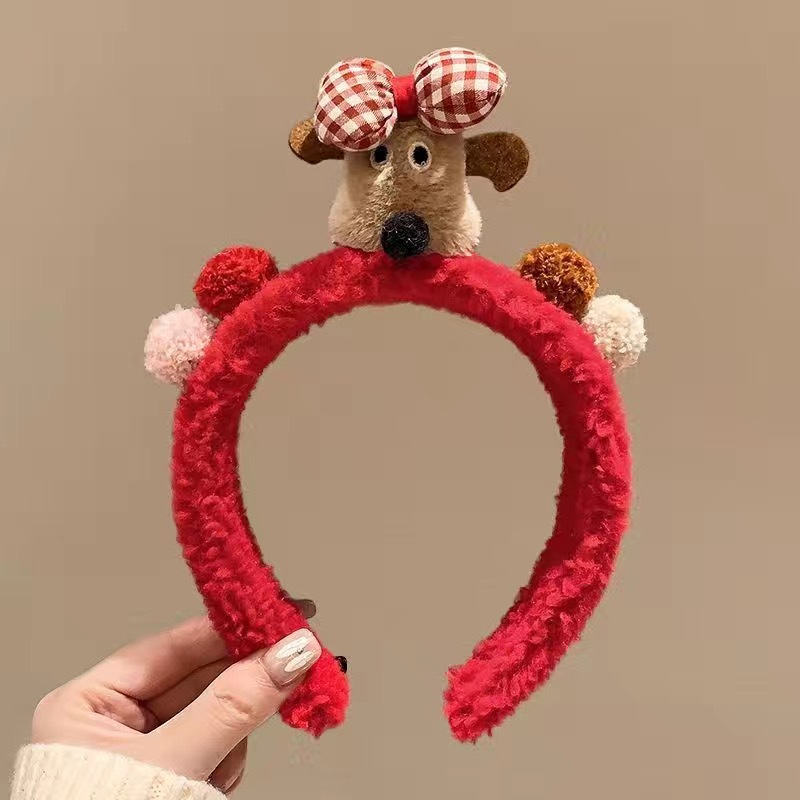 2025 새로운 빨간 귀여운 헤어 밴드 활 곰 강아지 머리띠 얼굴 마스크 압력 헤어 안티 손실 헤어 액세서리