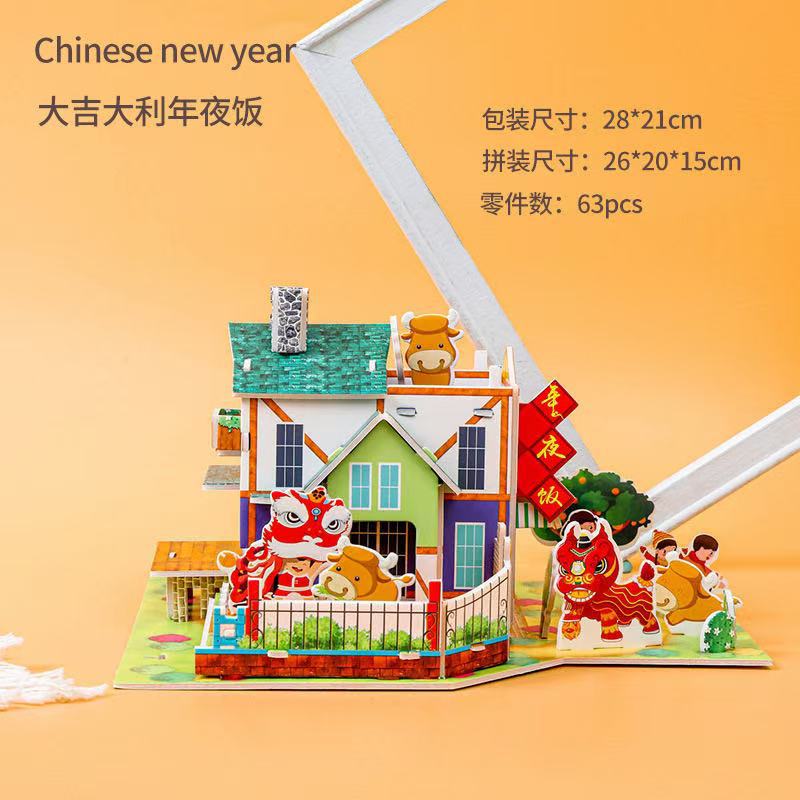새해 종이 수제 diy3D 입체 퍼즐 조용한 책 유치원 스톨 어린이 교육 장난감 선물