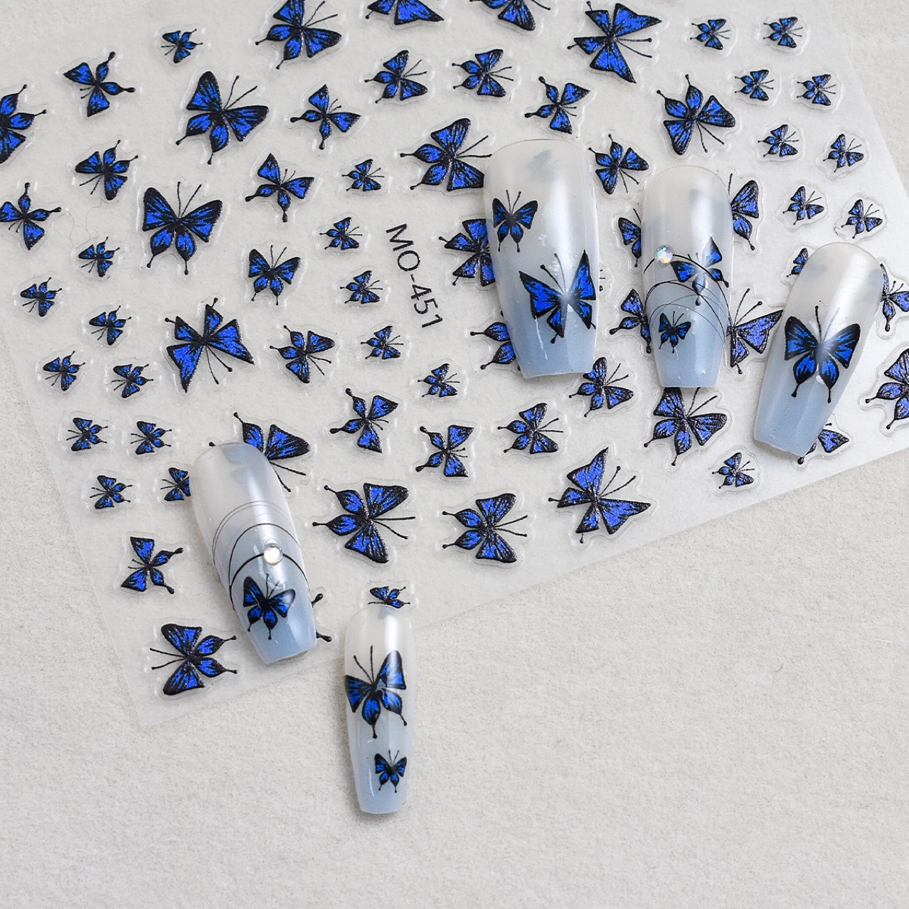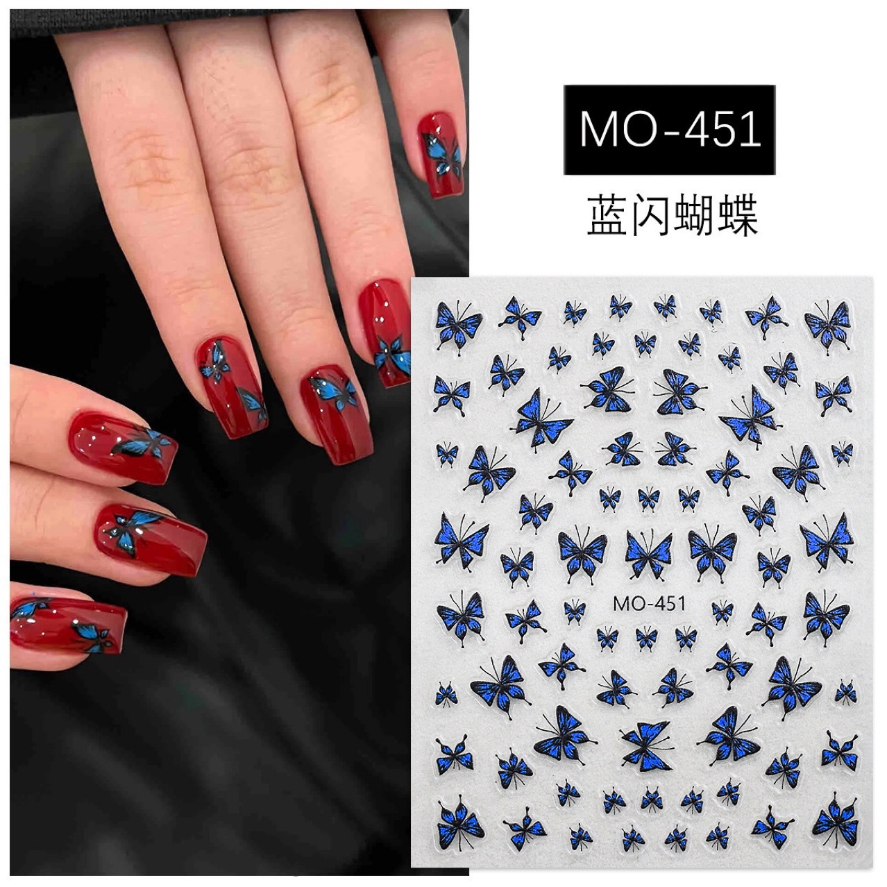 인터넷 축하 폭발 레트로 블루 번쩍이는 독 나비 네일 아트 스티커 클래식 4 색 양각 나비 네일 스티커 작은 데칼