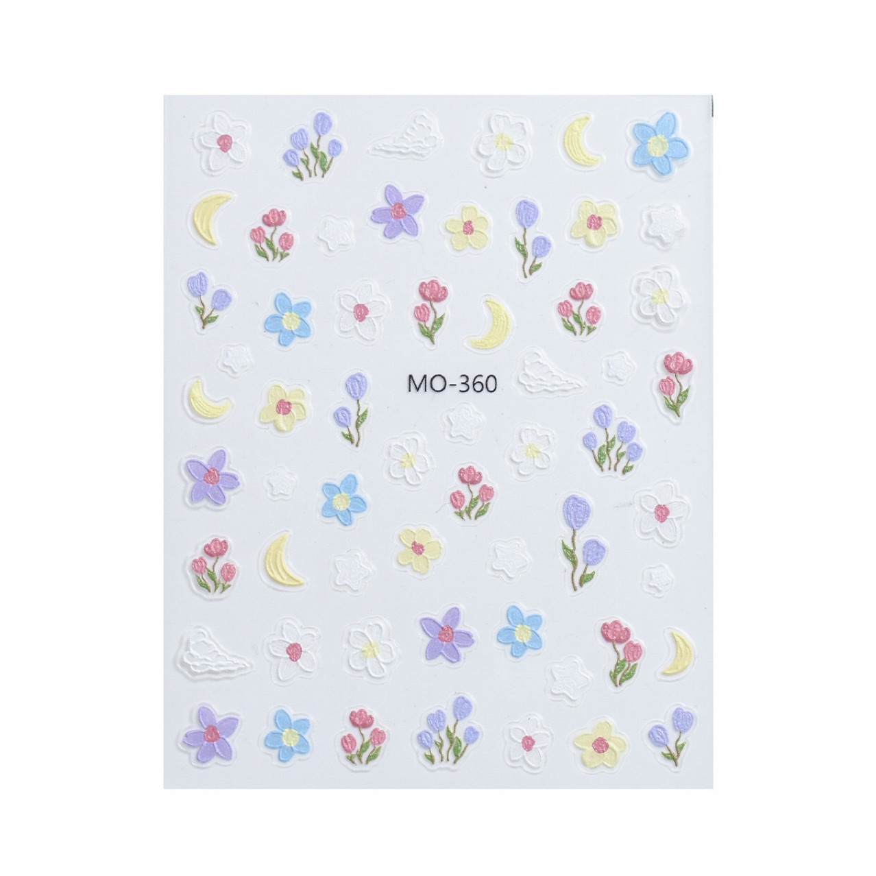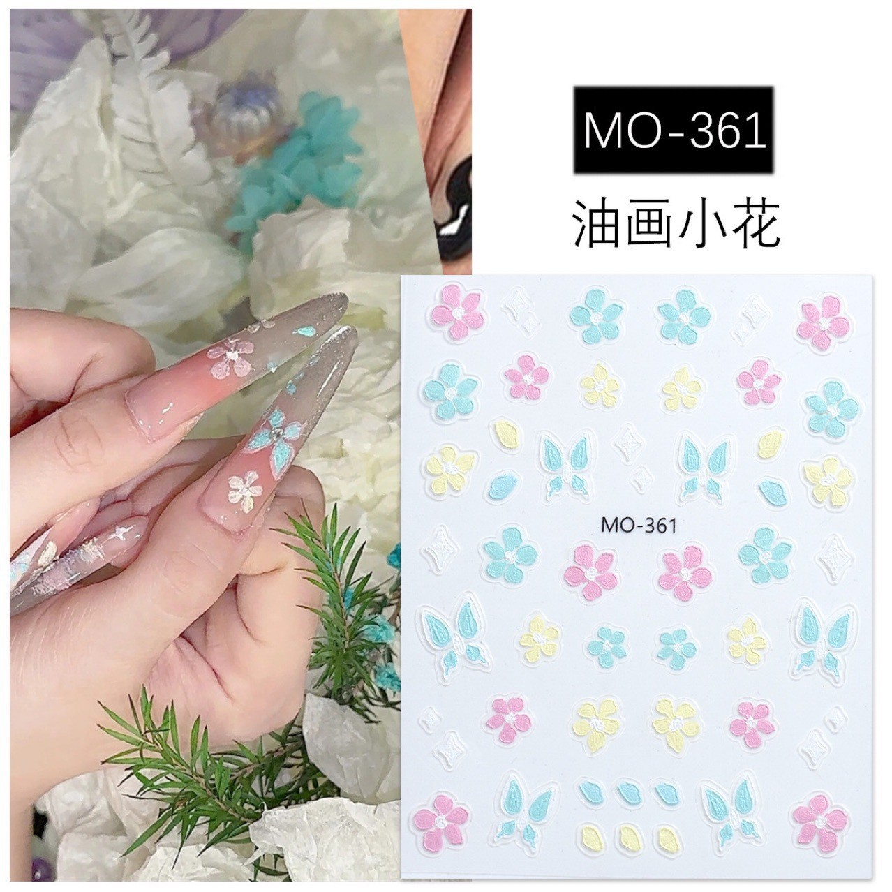 작은 빨간 책 폭발 네일 아트 스티커 도매 5D 구호 작은 신선한 모네 정원 유화 작은 꽃 네일 스티커