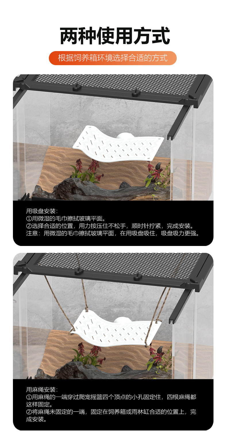 등산 애완 동물 녹색 하이에나 파충류 도마뱀 해먹 유리 탱크 상자 열대 우림 탱크 흡입 컵 파충류 수목 요람에 매달려있는 대마 로프스토어 가기