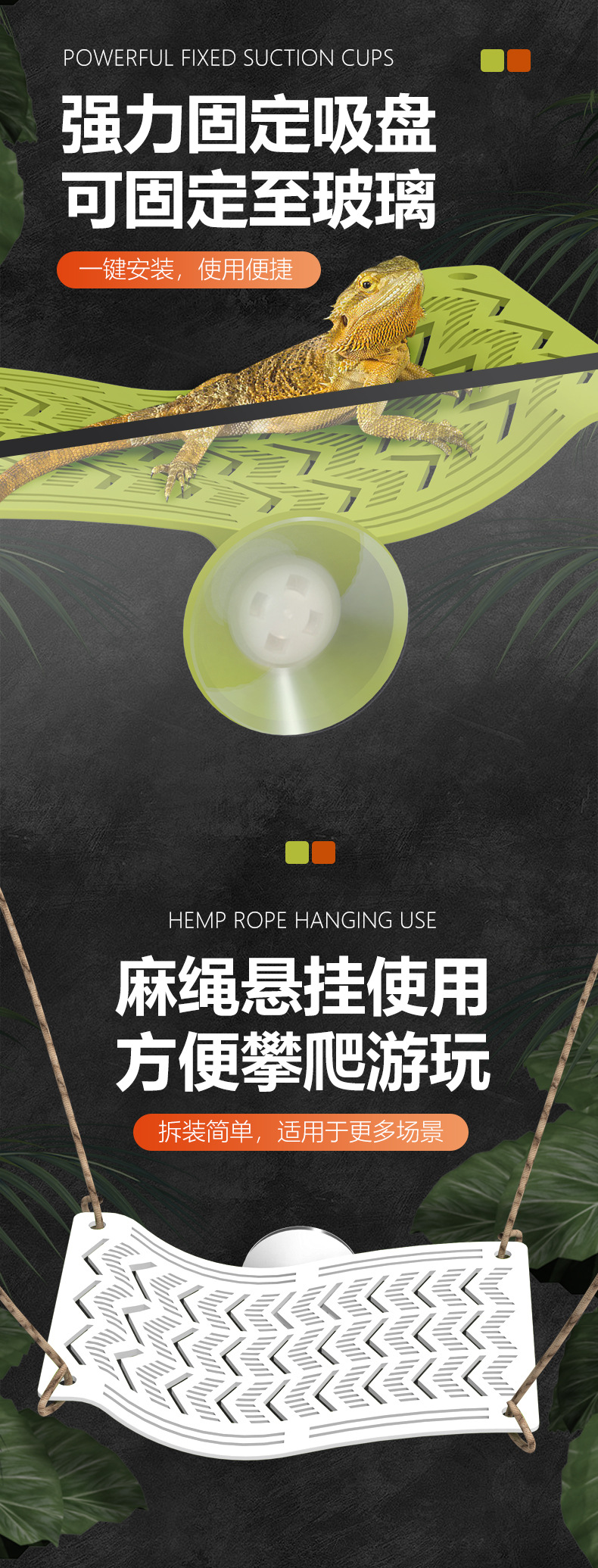 등산 애완 동물 녹색 하이에나 파충류 도마뱀 해먹 유리 탱크 상자 열대 우림 탱크 흡입 컵 파충류 수목 요람에 매달려있는 대마 로프