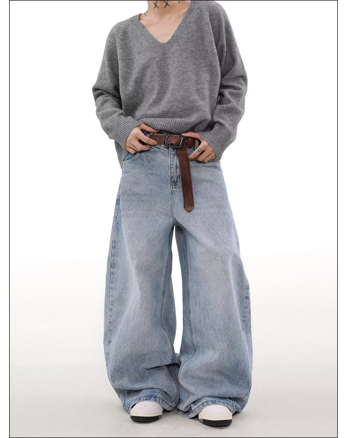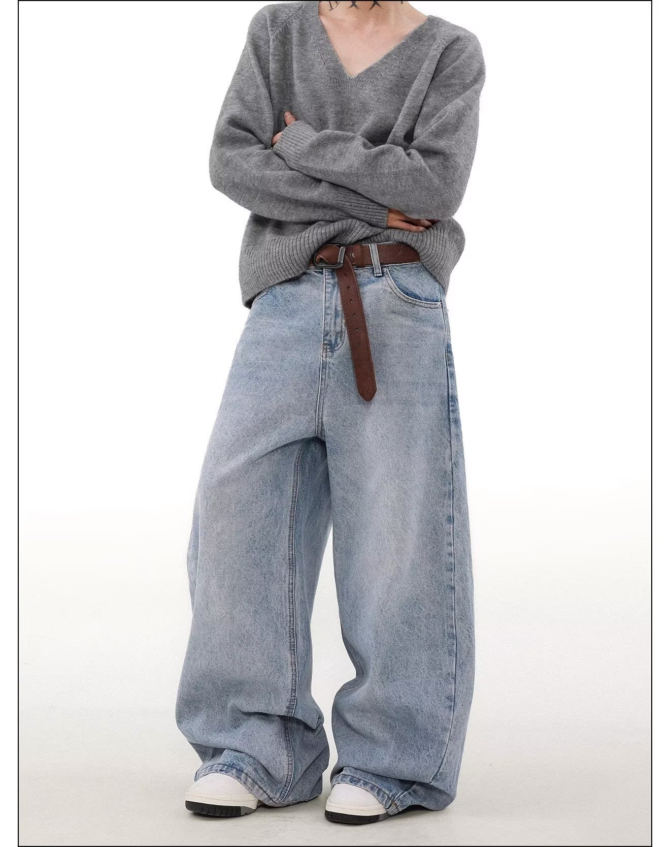 가을과 겨울 미국 스타일 빈티지 오래 된 간단한 스트레이트 청바지 남자의 느슨한 넓은 다리 Machete 바지