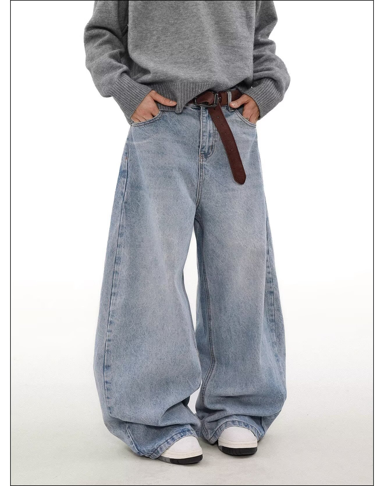 가을과 겨울 미국 스타일 빈티지 오래 된 간단한 스트레이트 청바지 남자의 느슨한 넓은 다리 Machete 바지스토어 가기