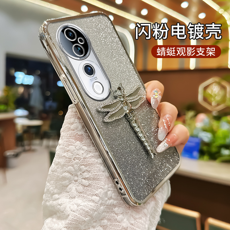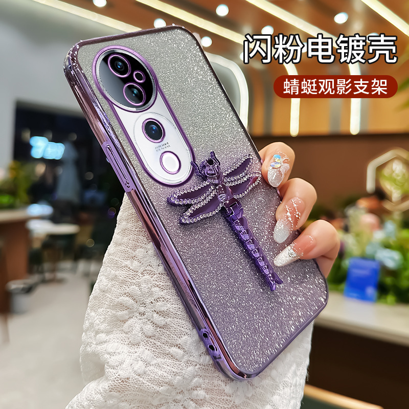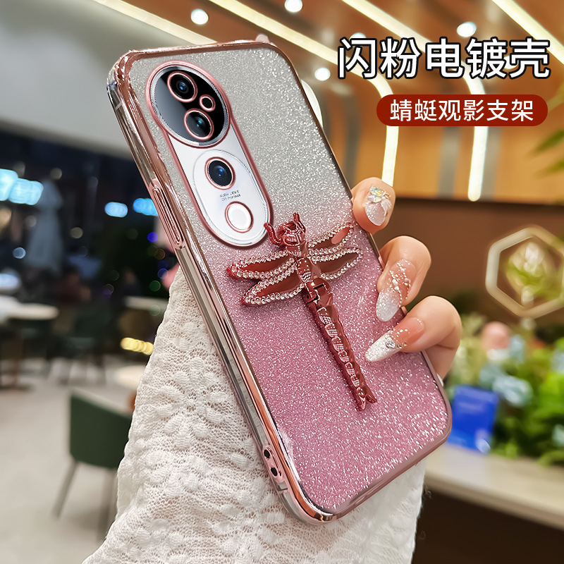 适用华为Pura70手机壳水钻蜻蜓支架电镀闪粉TPU防摔mate70PRO全包