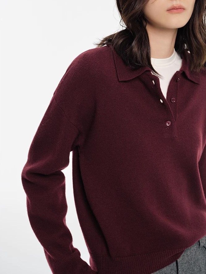 2024 회색 폴로 칼라 풀오버 스웨터 여성의 가을과 겨울 느슨한 게으른 내부 짧은베이스 옷깃 니트 탑스토어 가기