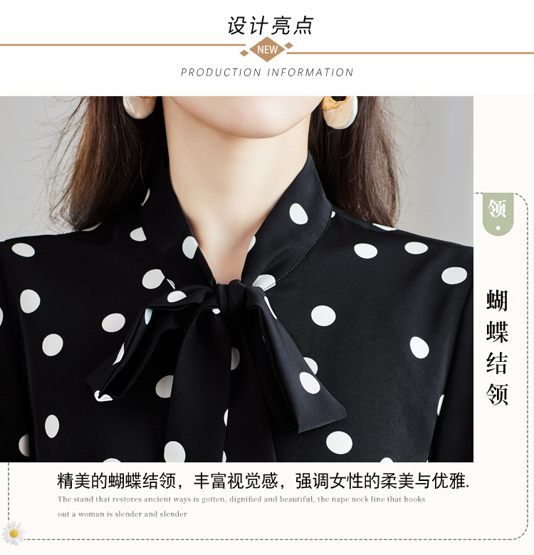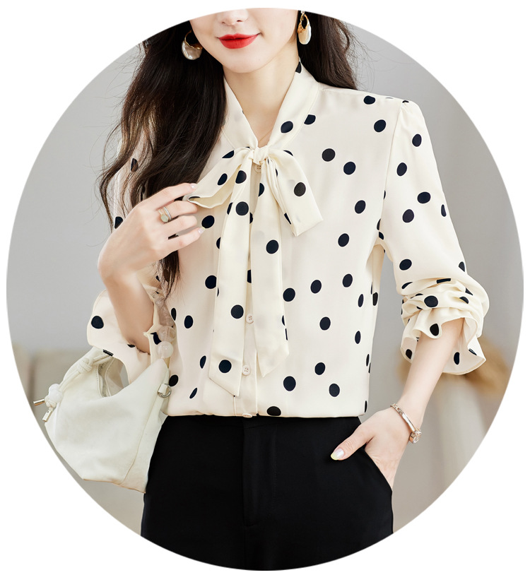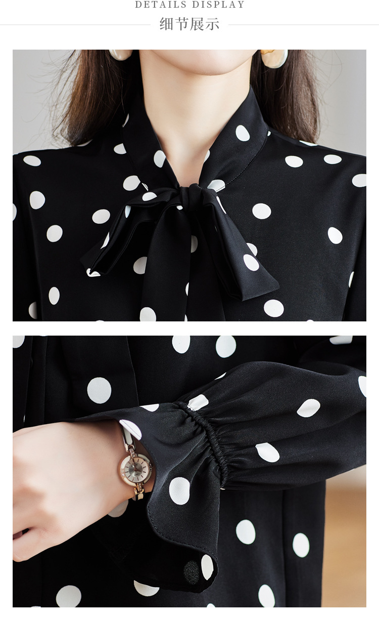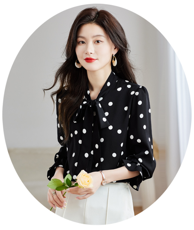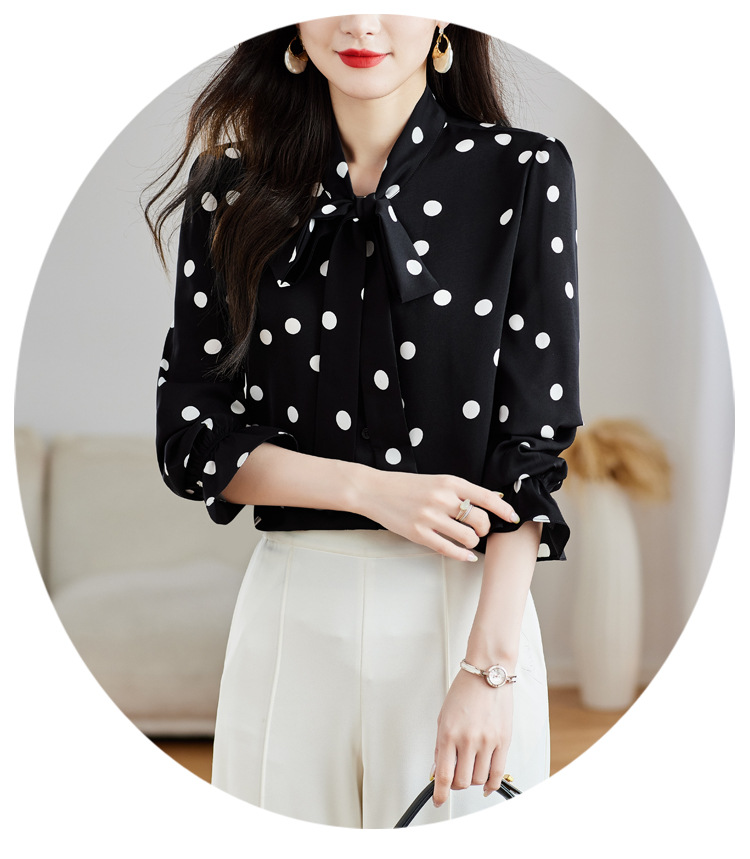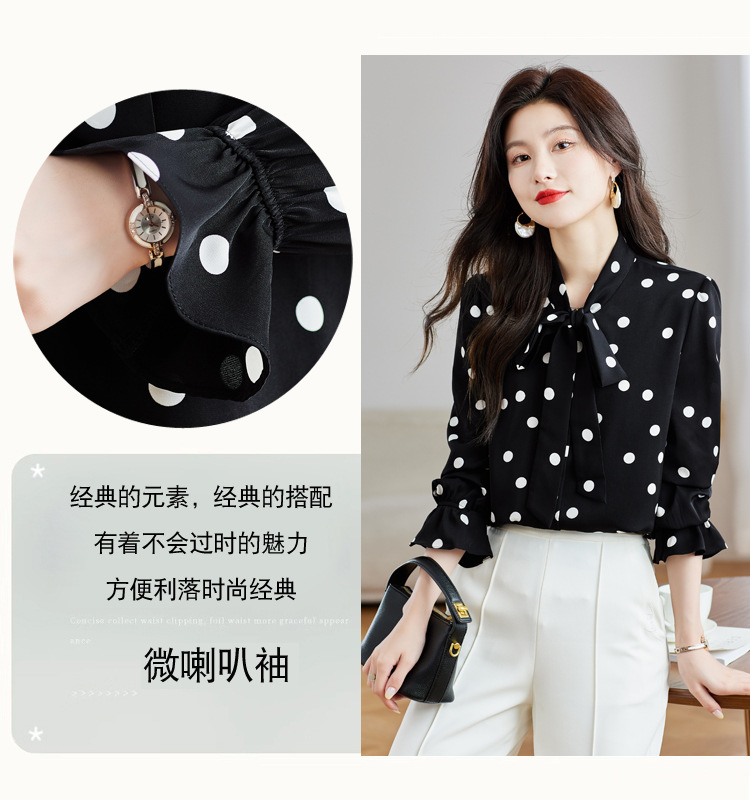 폴카 도트 셔츠 여성의 2025 새로운 봄 패션 우아한 탑 블랙 폴카 도트 긴 소매 쉬폰 셔츠스토어 가기