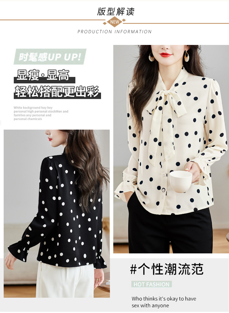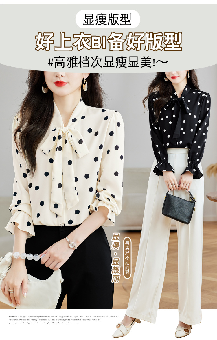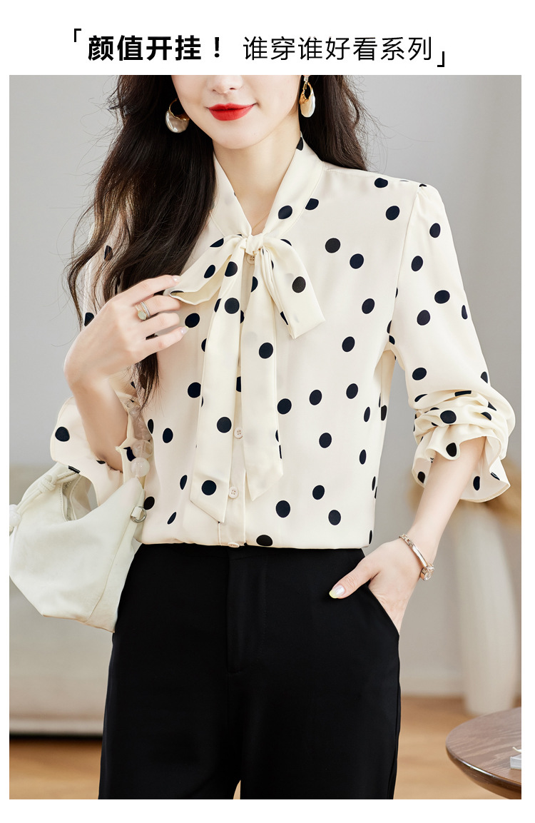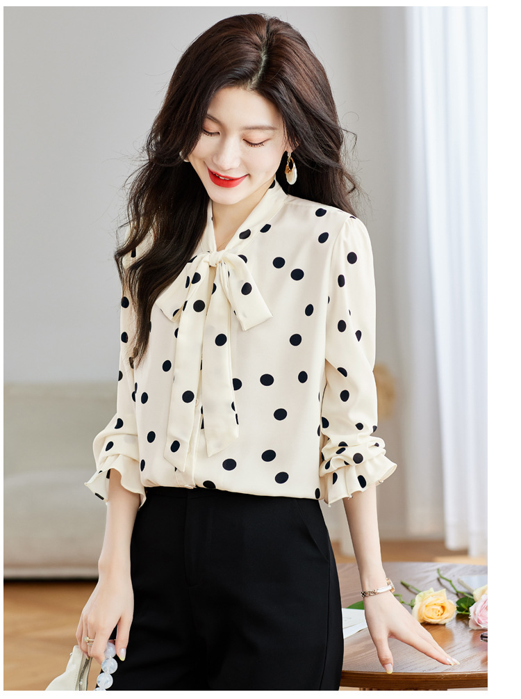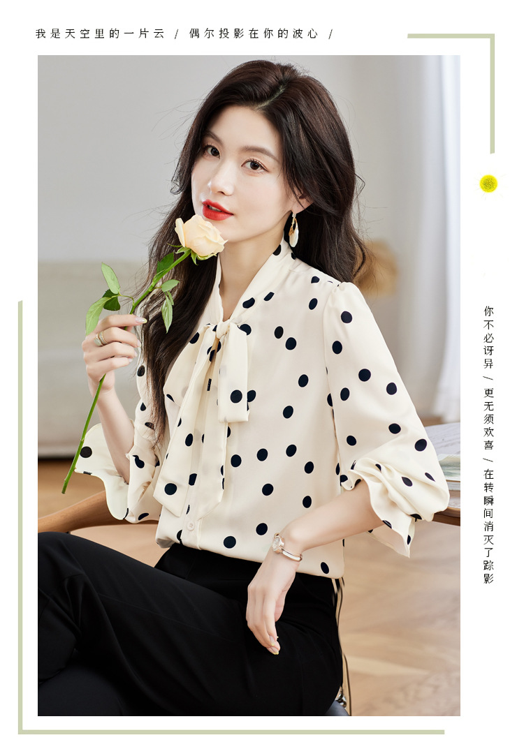 폴카 도트 셔츠 여성의 2025 새로운 봄 패션 우아한 탑 블랙 폴카 도트 긴 소매 쉬폰 셔츠스토어 가기