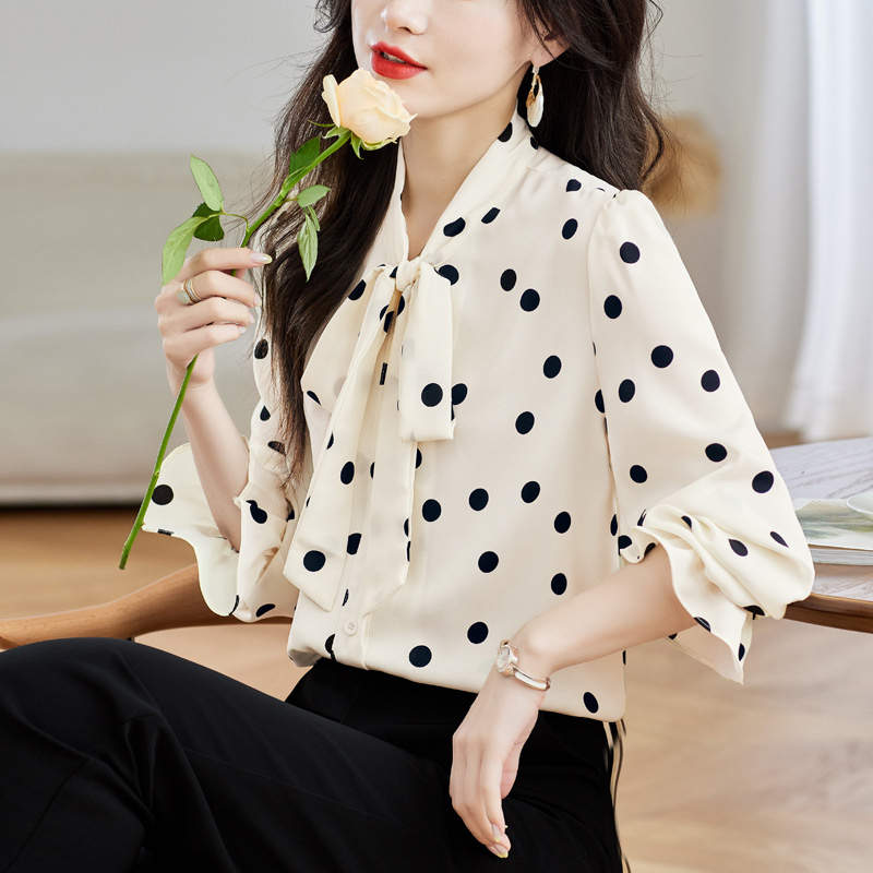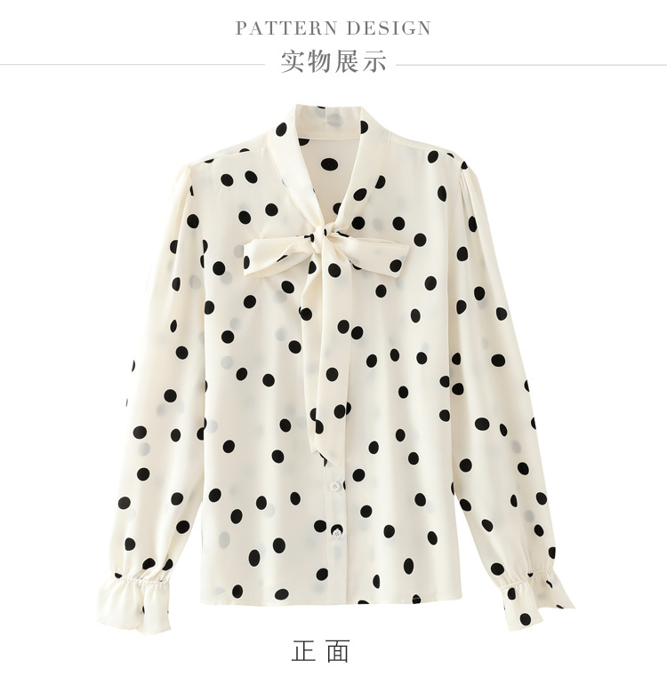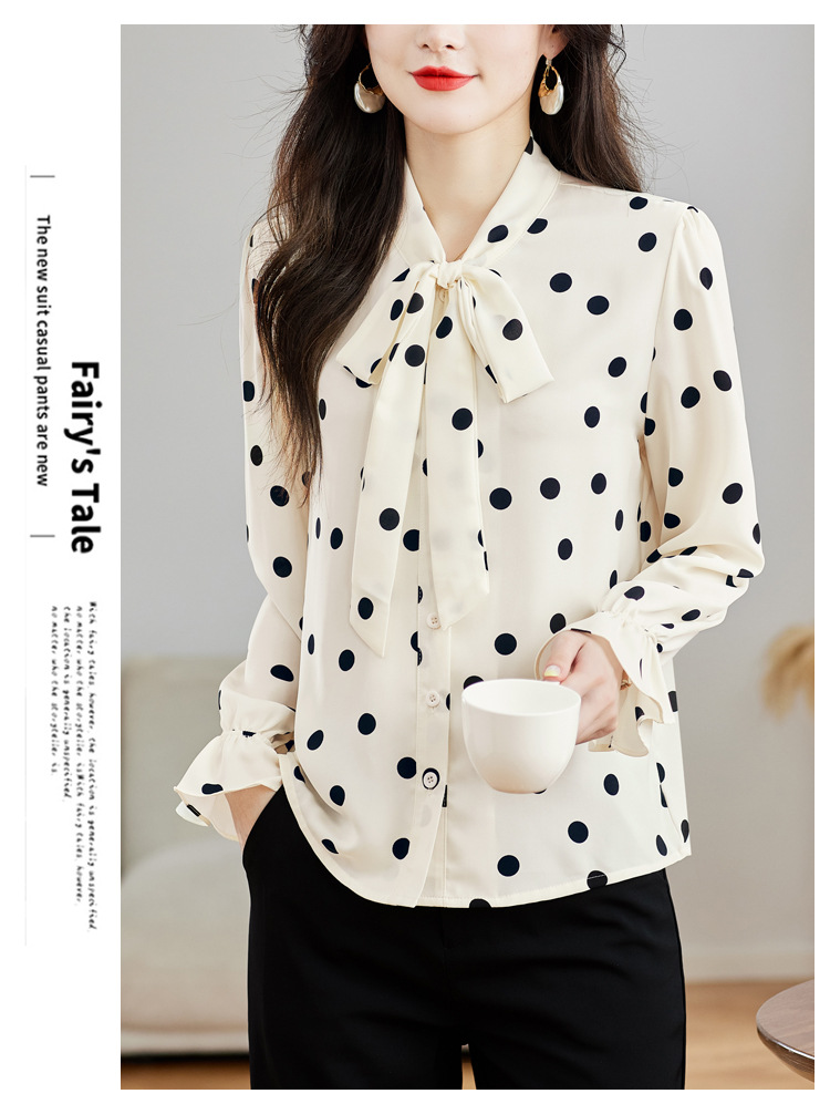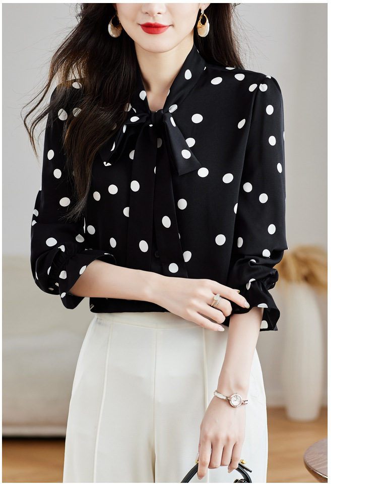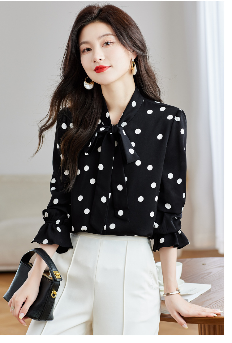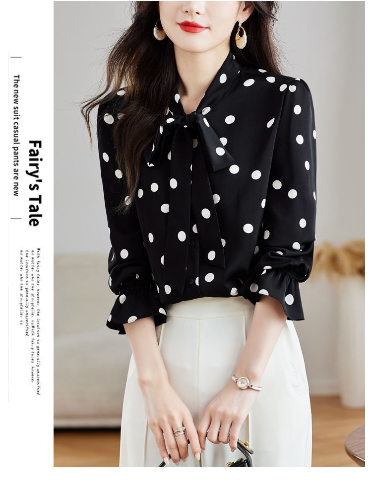 폴카 도트 셔츠 여성의 2025 새로운 봄 패션 우아한 탑 블랙 폴카 도트 긴 소매 쉬폰 셔츠