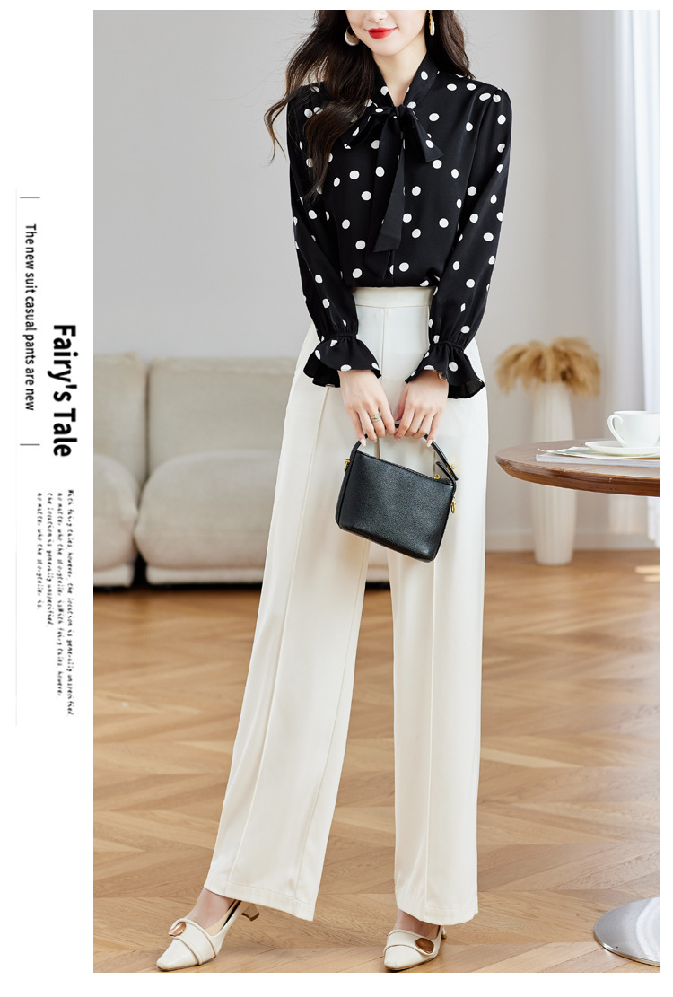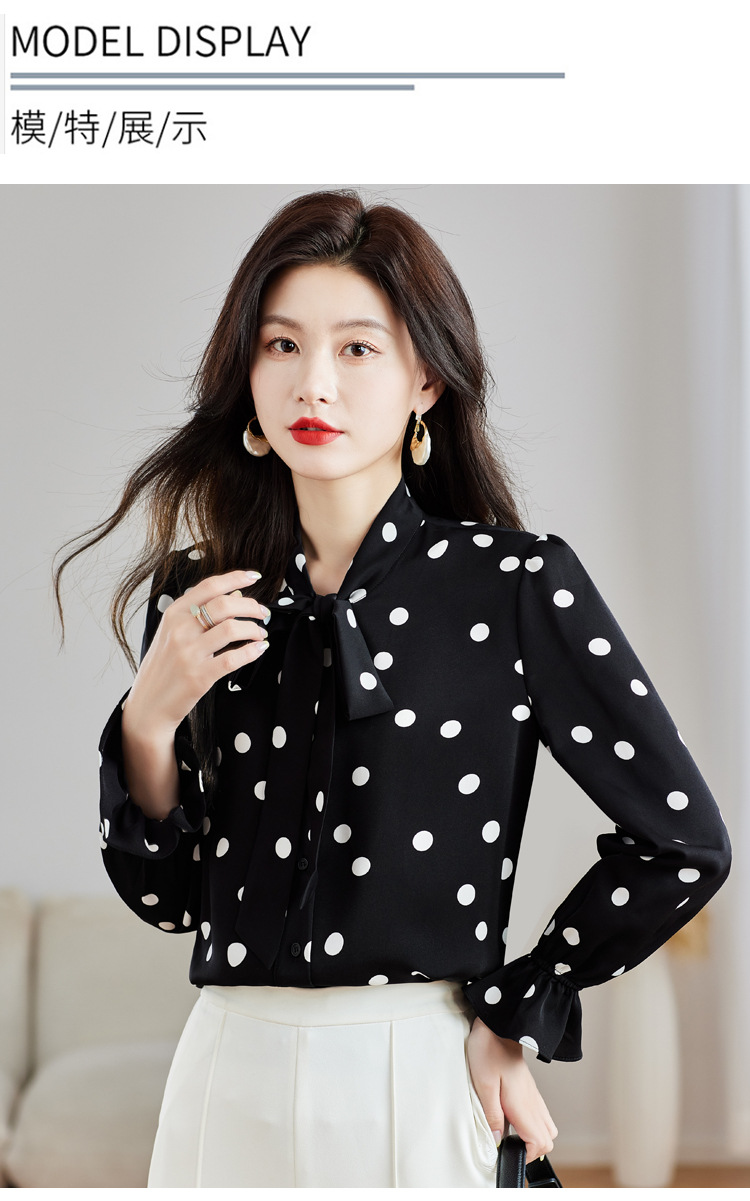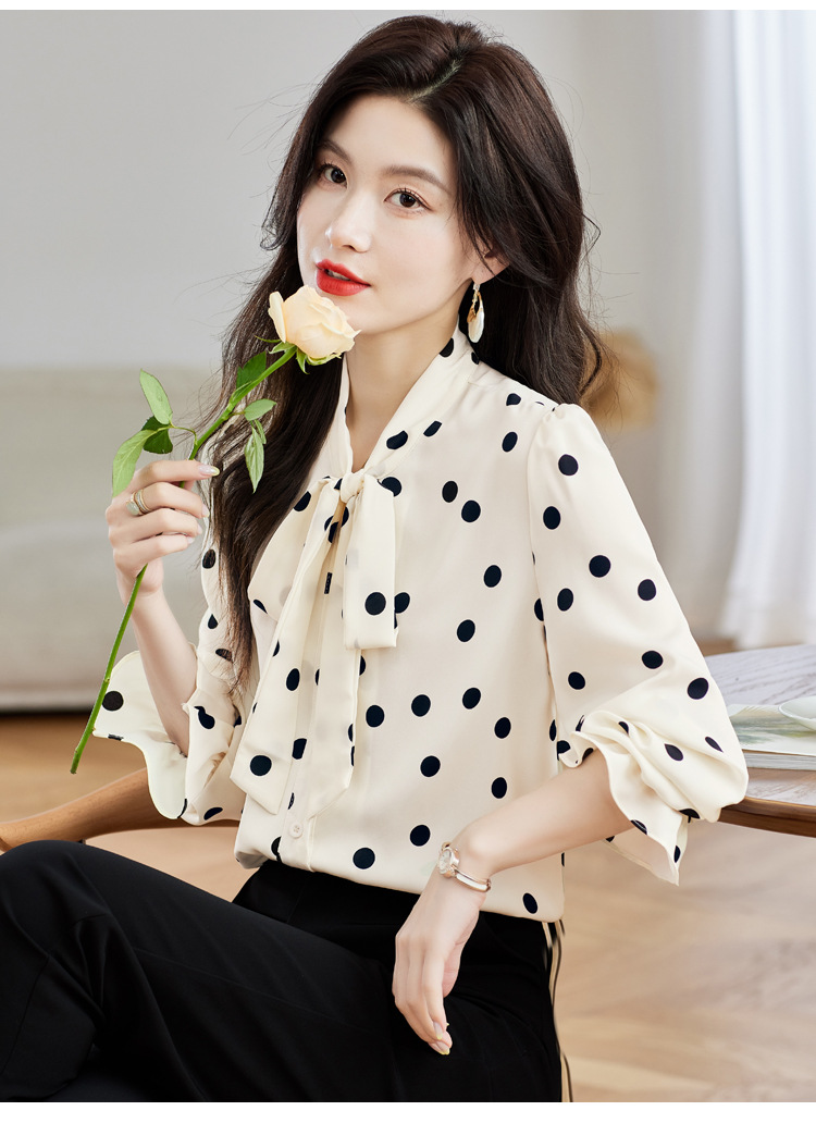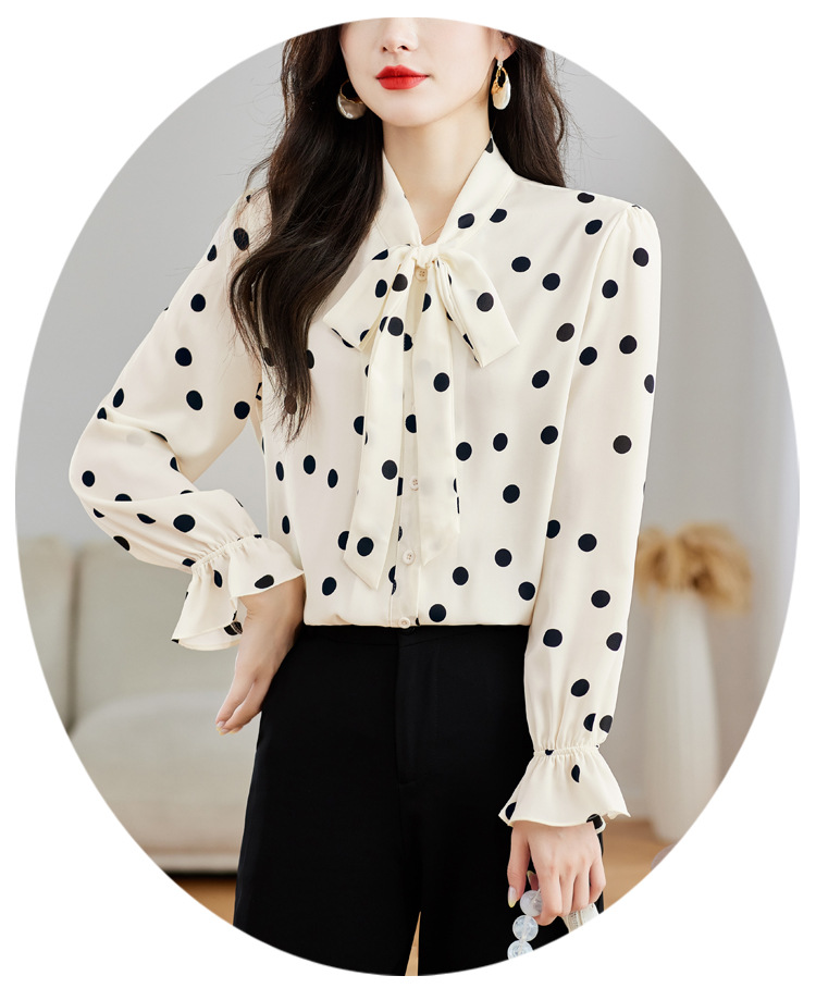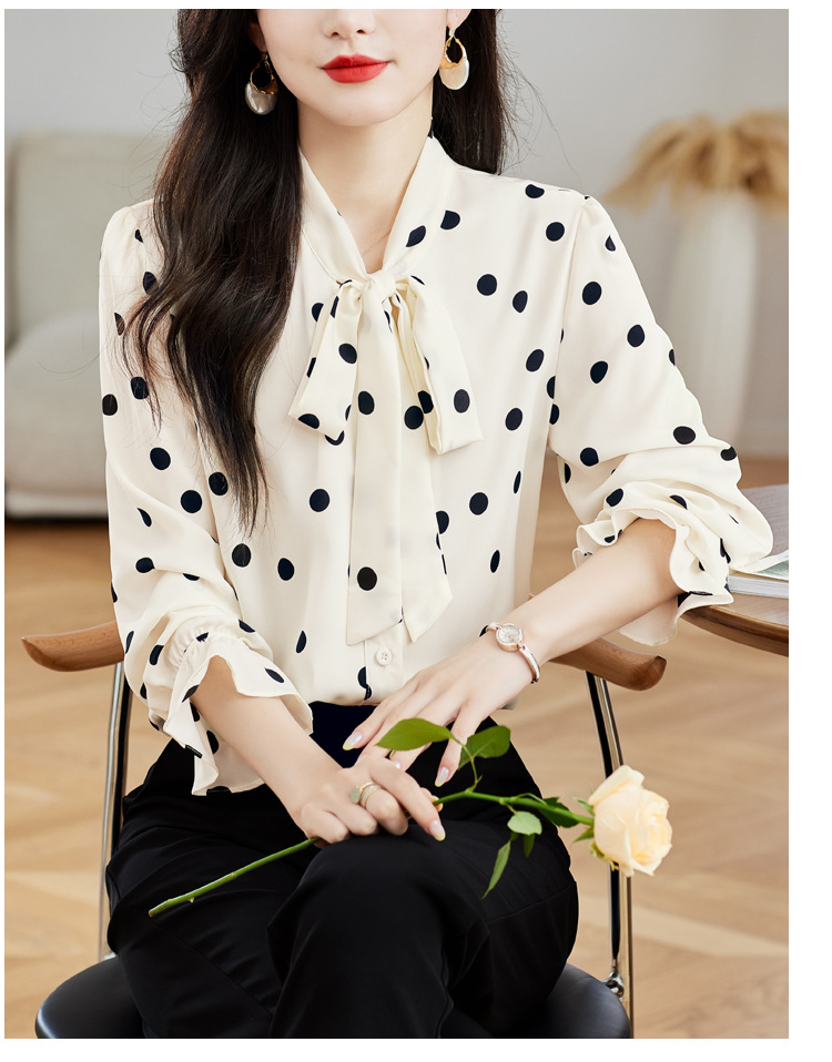 폴카 도트 셔츠 여성의 2025 새로운 봄 패션 우아한 탑 블랙 폴카 도트 긴 소매 쉬폰 셔츠