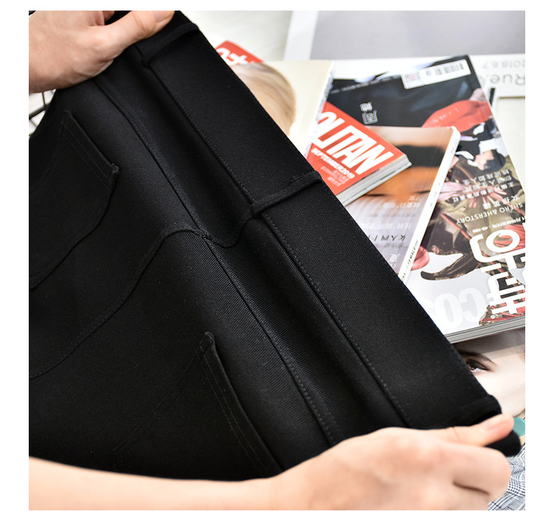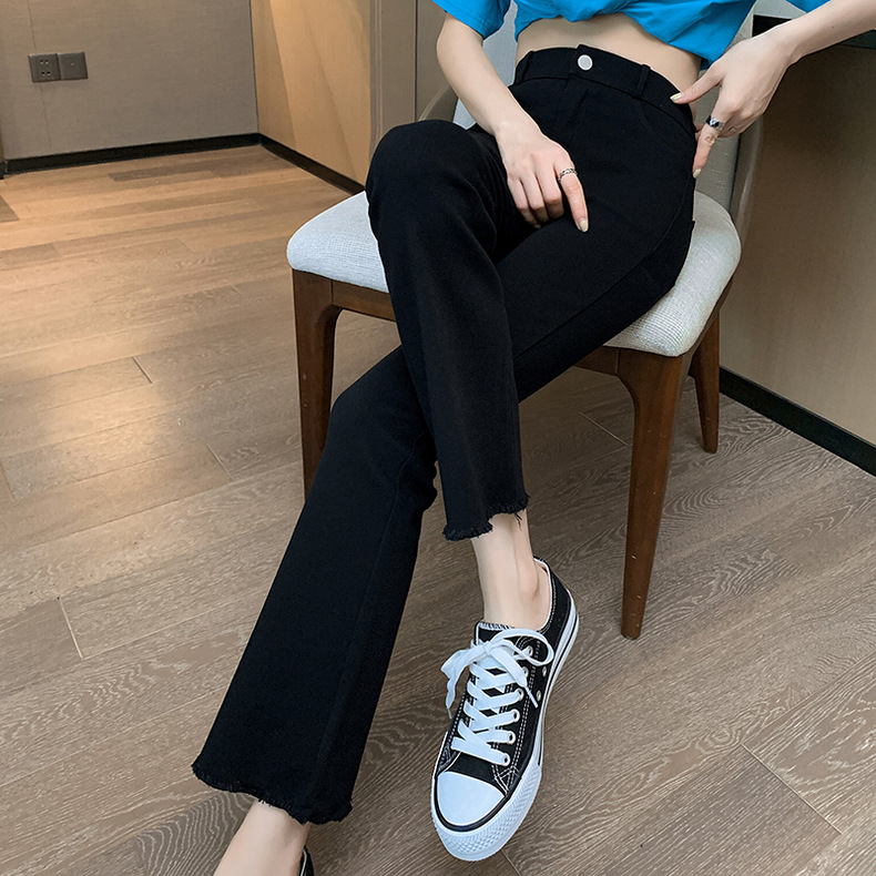 가을 새로운 블랙 스트레치 9 포인트 마이크로 볼 하이 웨이스트 스트레치 캐주얼 플레어 팬츠를위한 국경 여성 의류스토어 가기