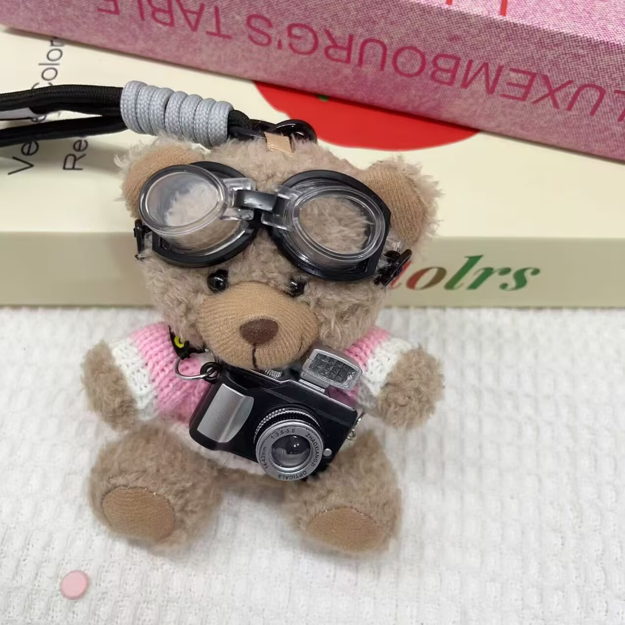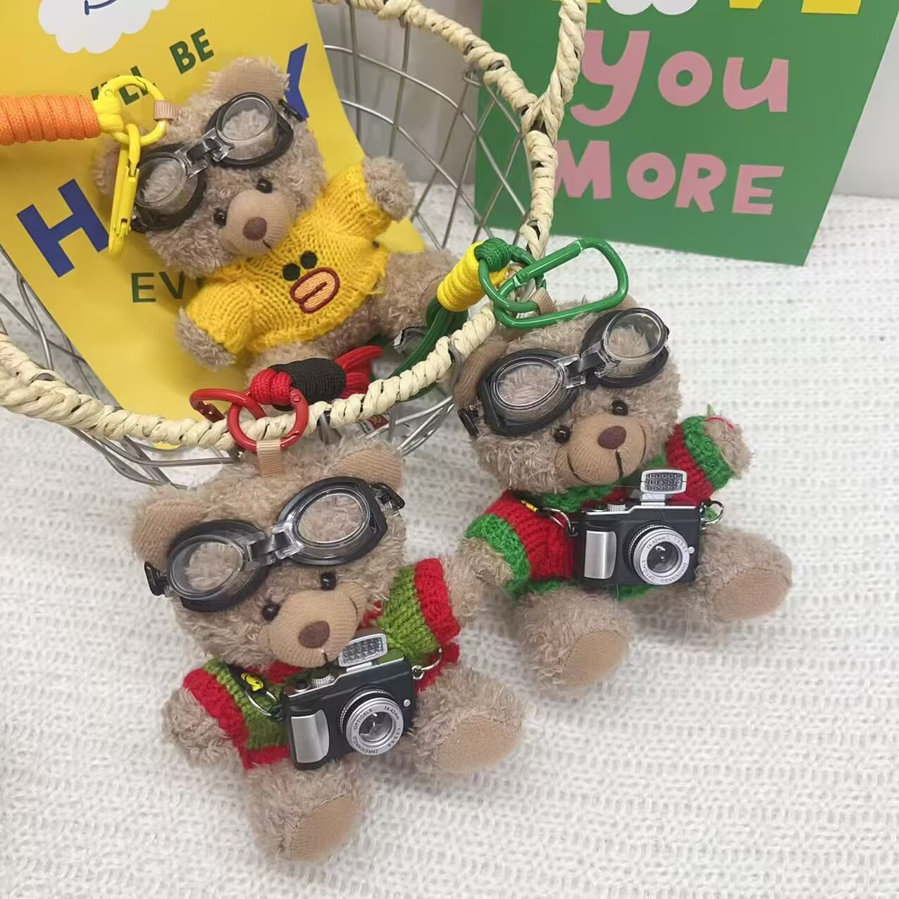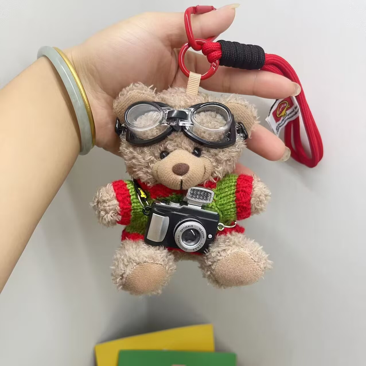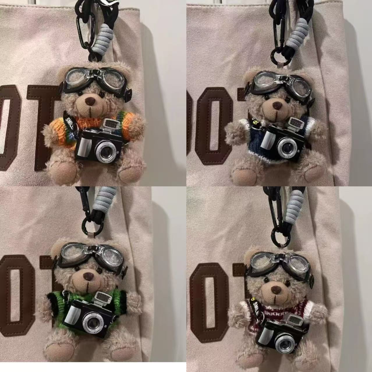 창조적 인 카메라 곰 펜던트 봉제 만화 인형 파일럿 인형 커플 선물 키 체인 가방 매달려 장식품