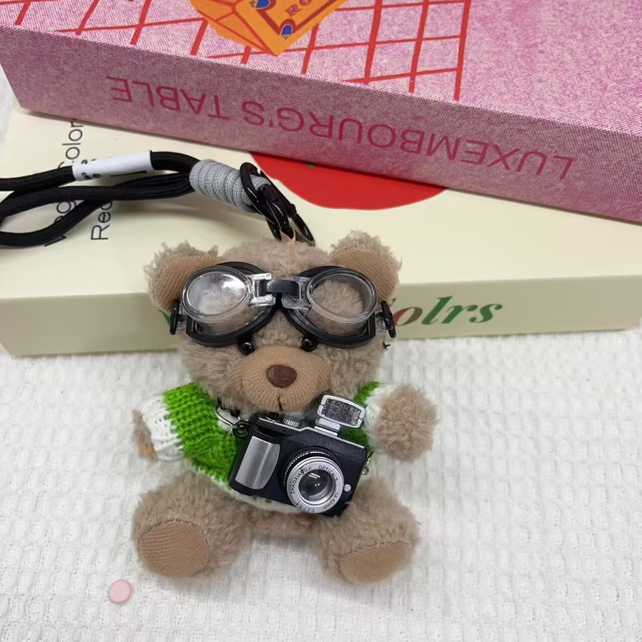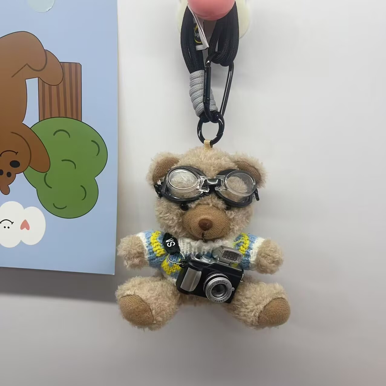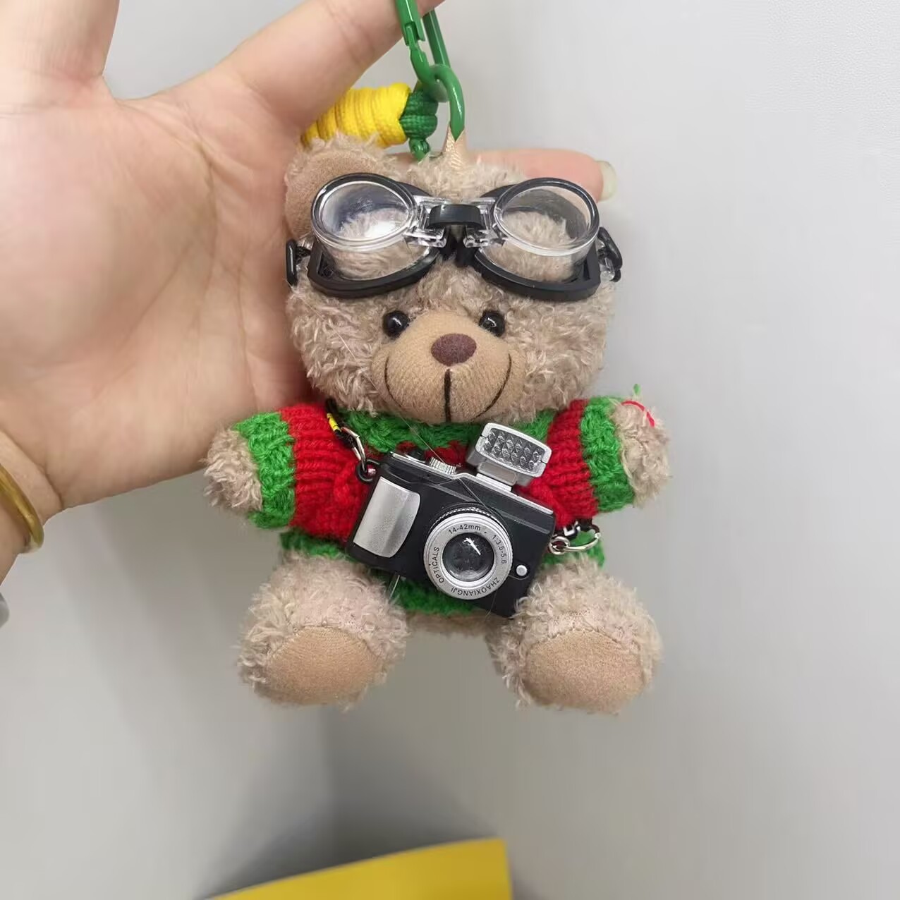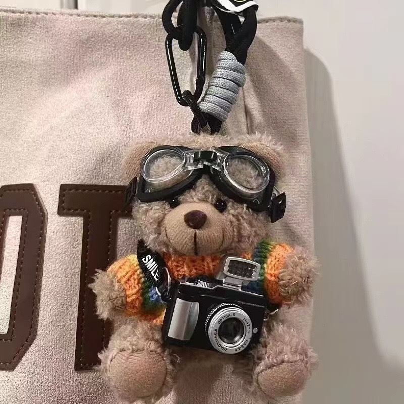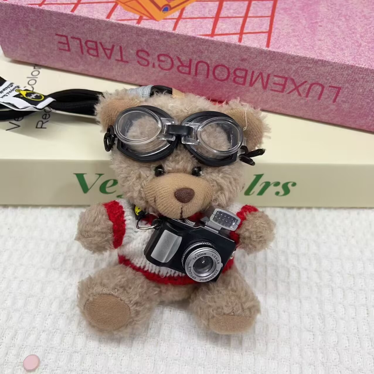 창조적 인 카메라 곰 펜던트 봉제 만화 인형 파일럿 인형 커플 선물 키 체인 가방 매달려 장식품