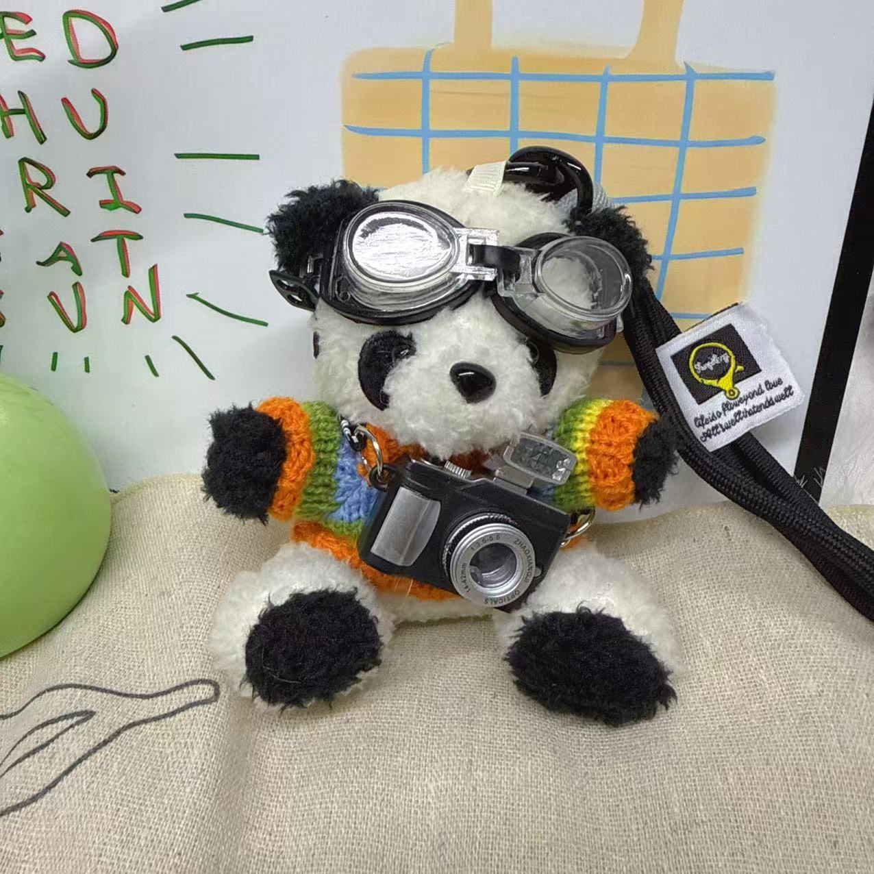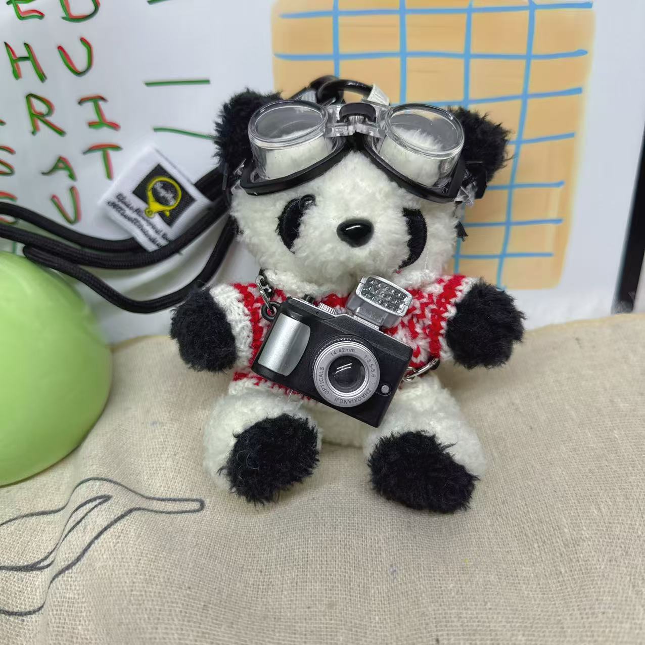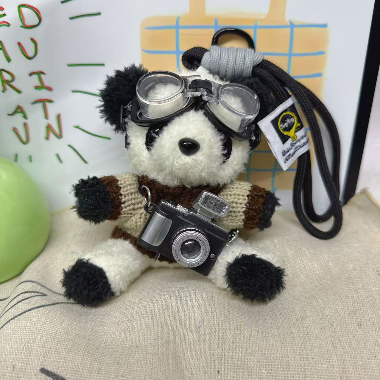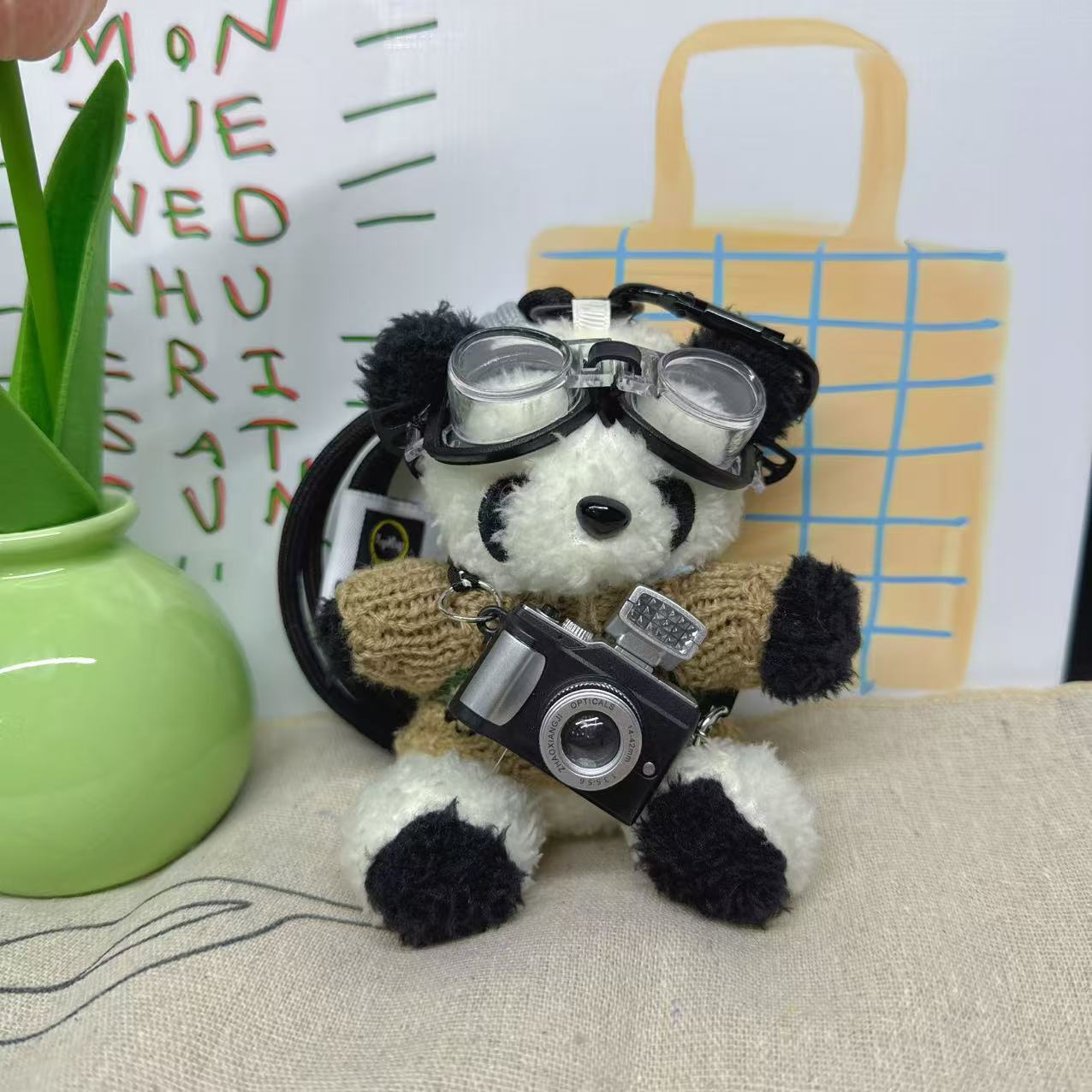 창조적 인 카메라 곰 펜던트 봉제 만화 인형 파일럿 인형 커플 선물 키 체인 가방 매달려 장식품