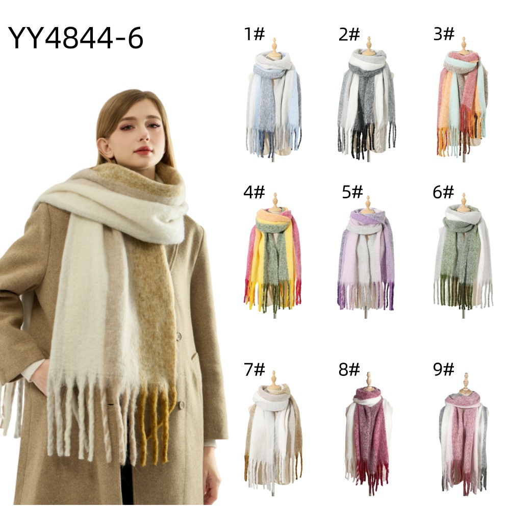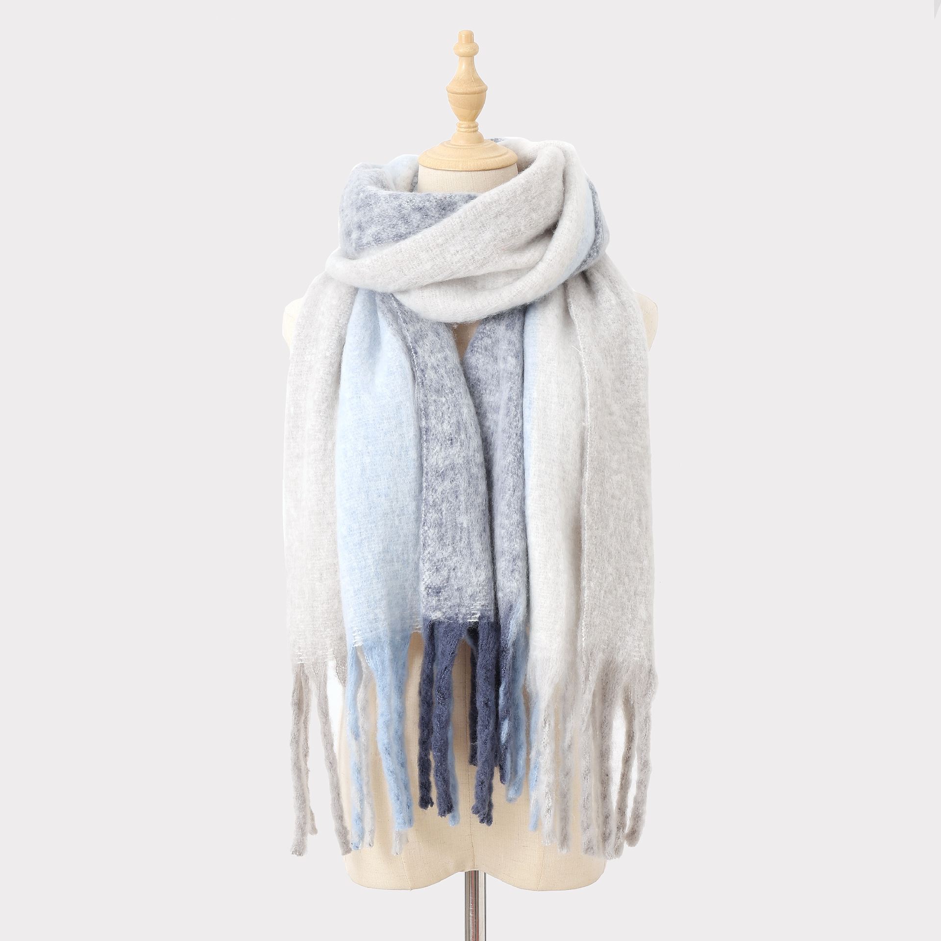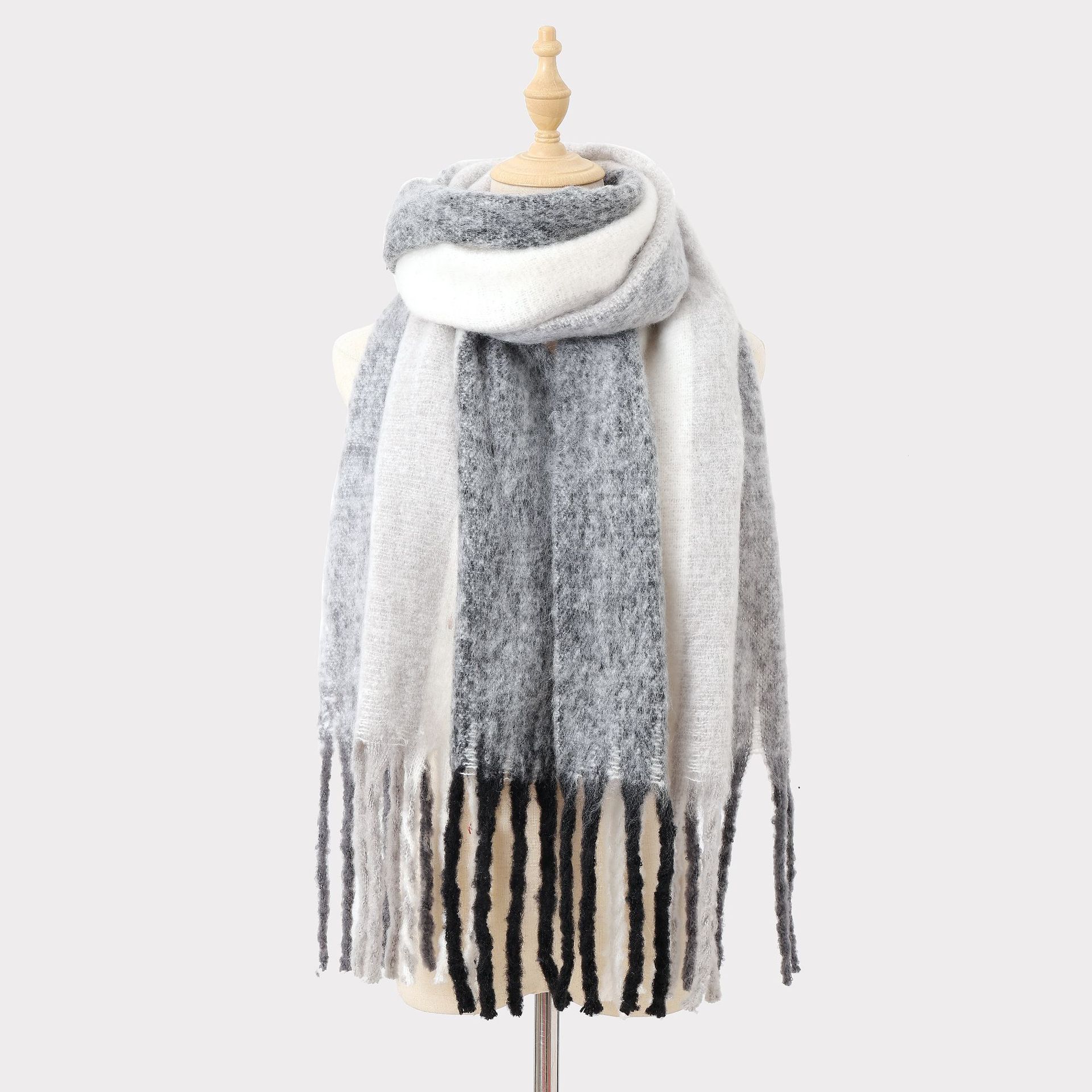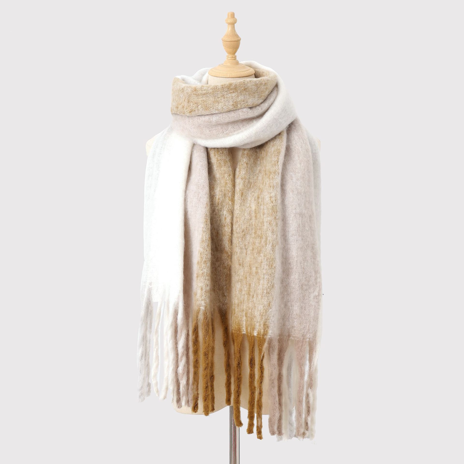 유럽과 미국의 컬러 매칭 모헤어 스카프 여성의 가을과 겨울 하이 엔드 센스 두꺼운 따뜻한 올 매치 스카프 간단한 올 매치 스카프