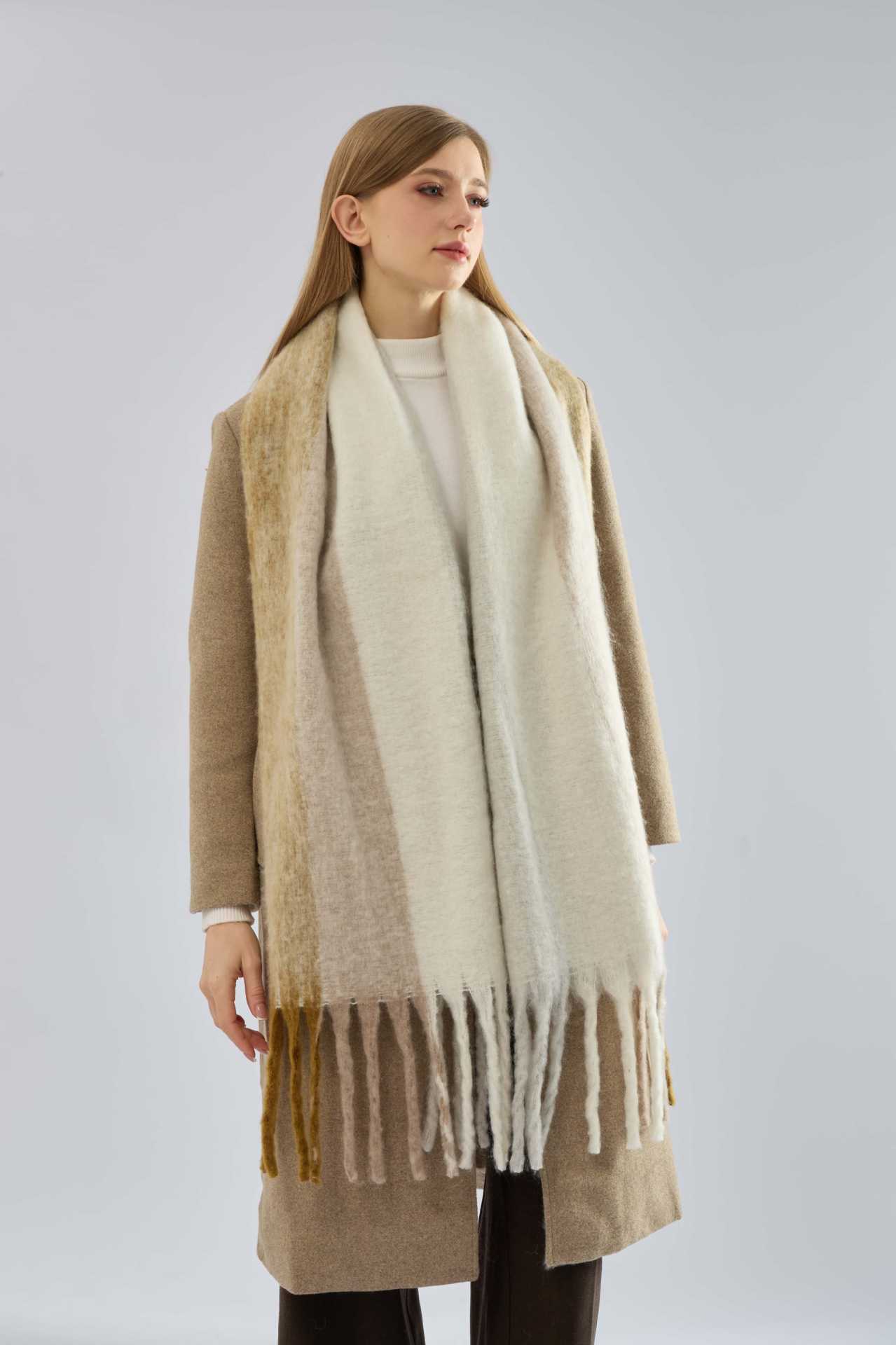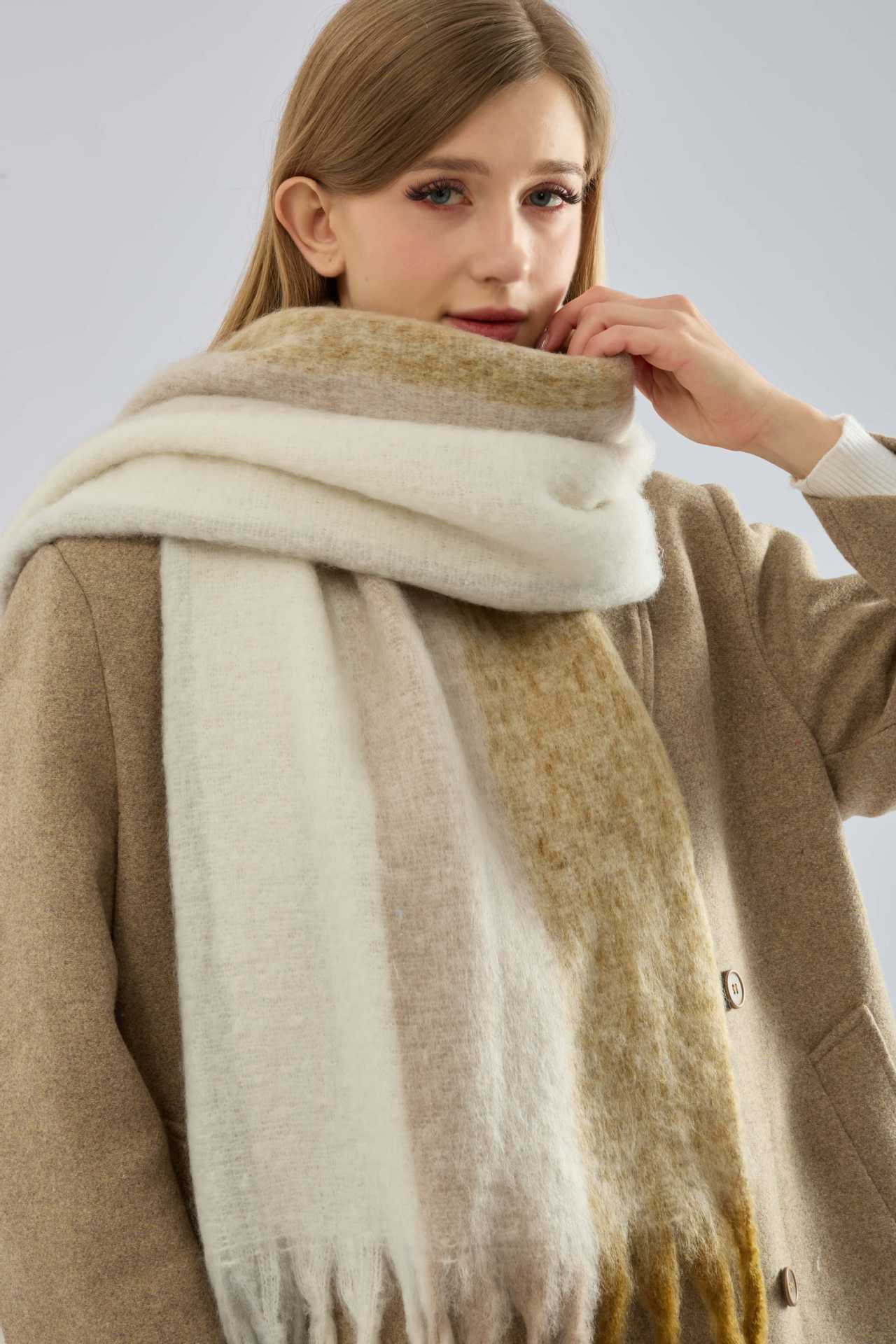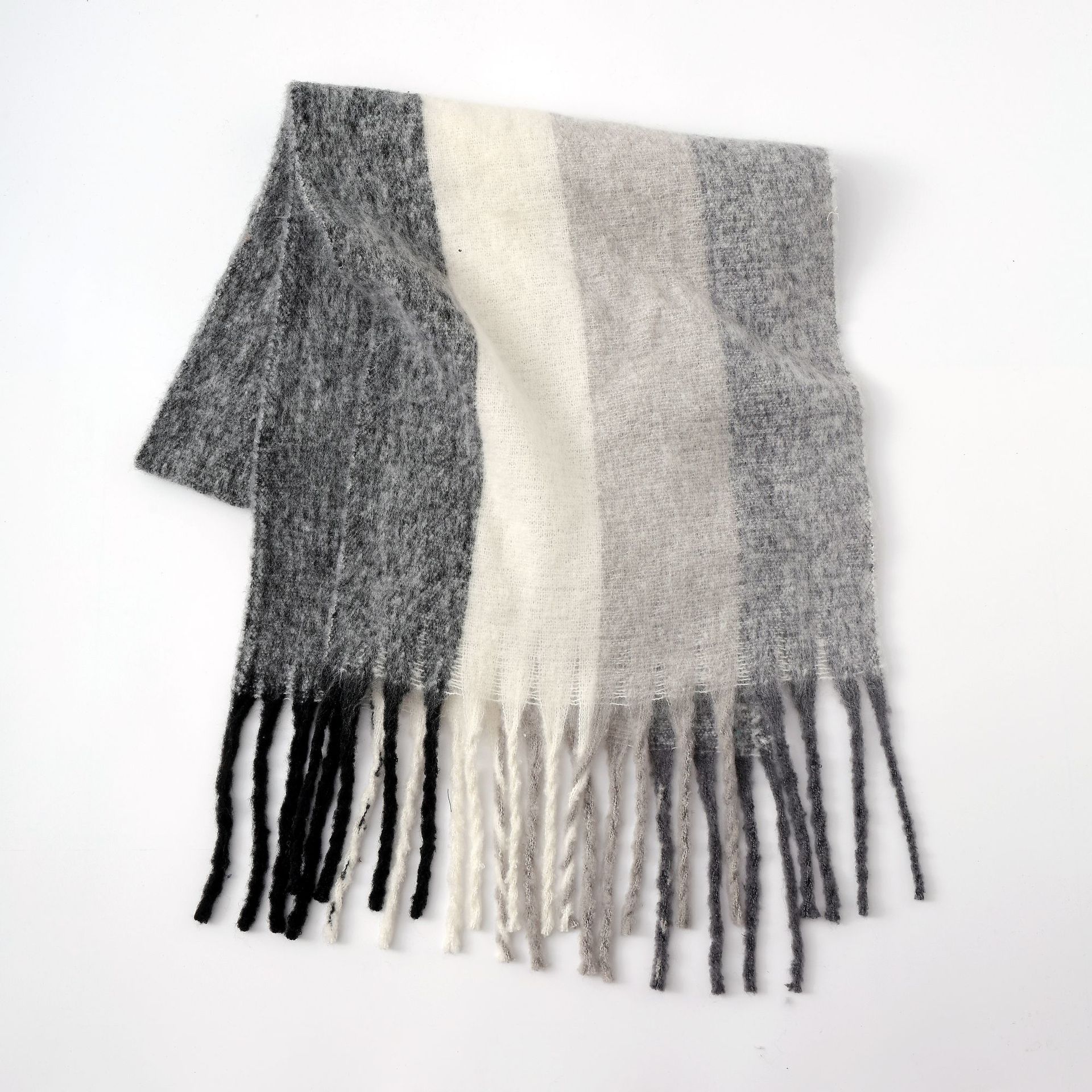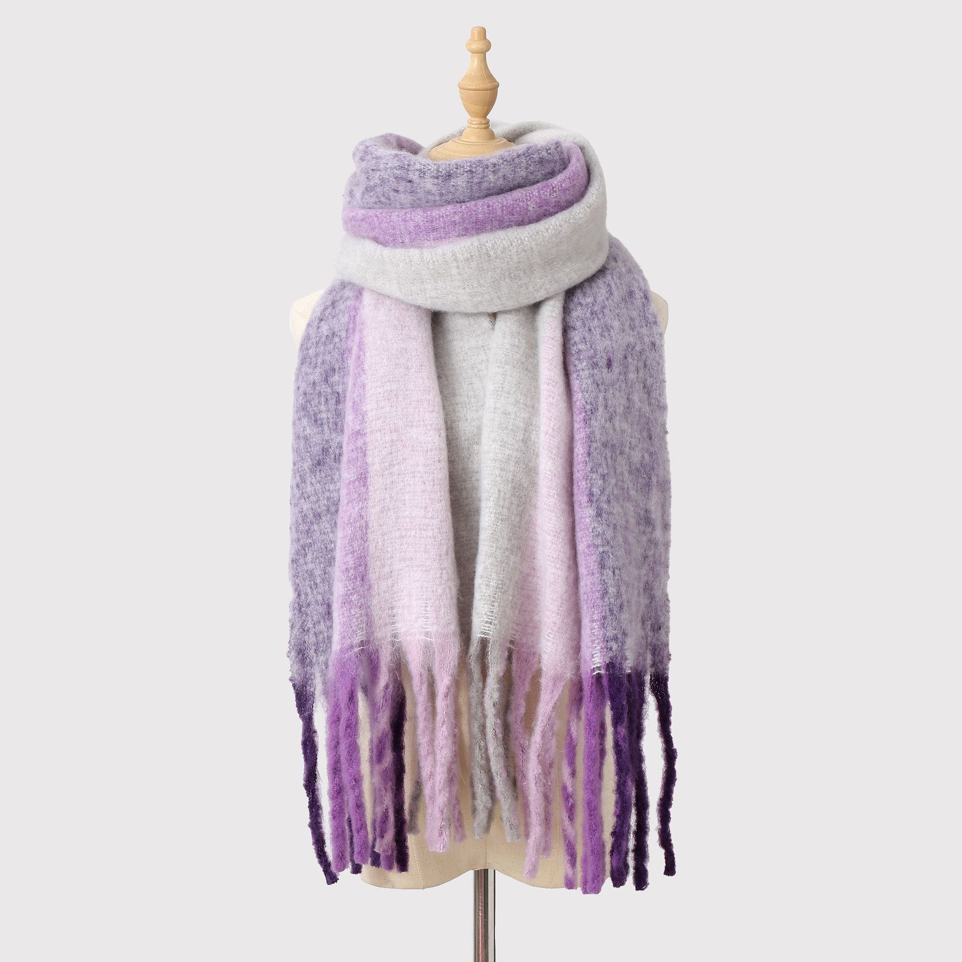 유럽과 미국의 컬러 매칭 모헤어 스카프 여성의 가을과 겨울 하이 엔드 센스 두꺼운 따뜻한 올 매치 스카프 간단한 올 매치 스카프