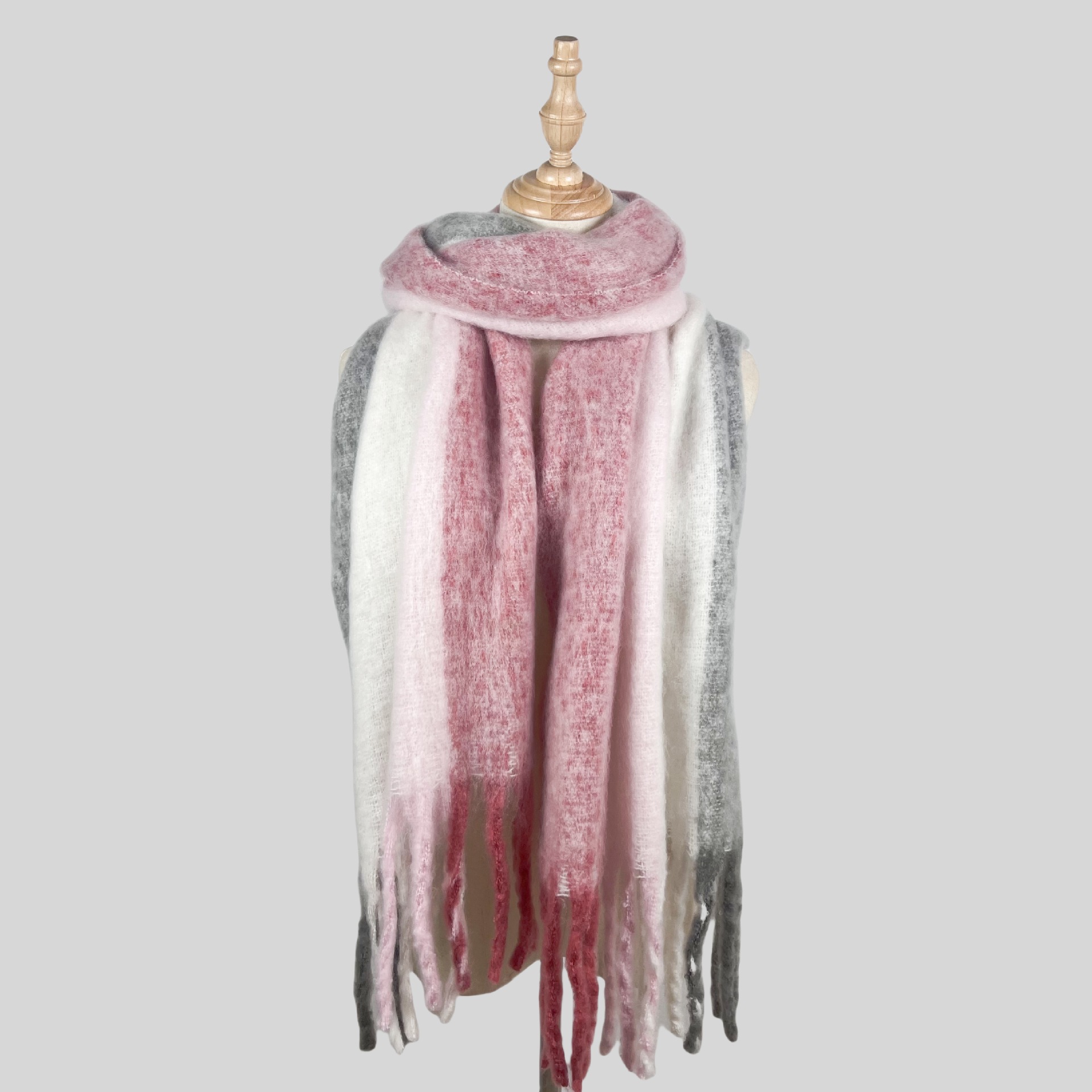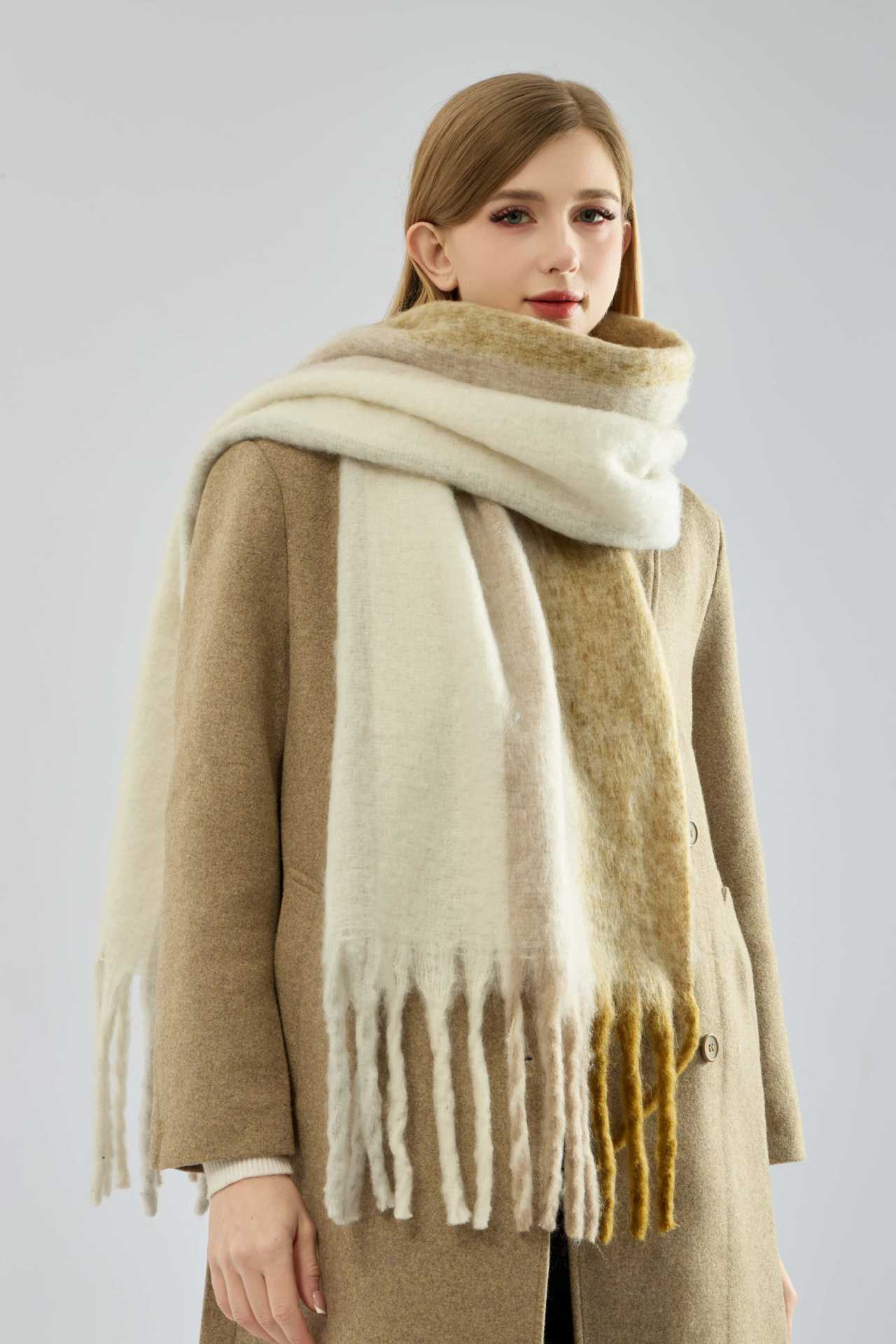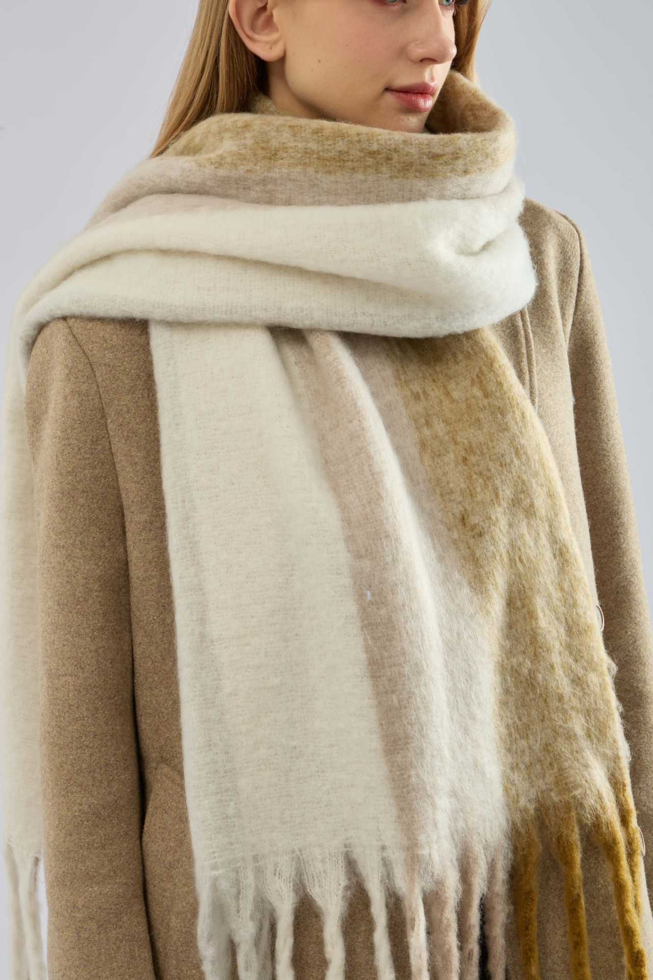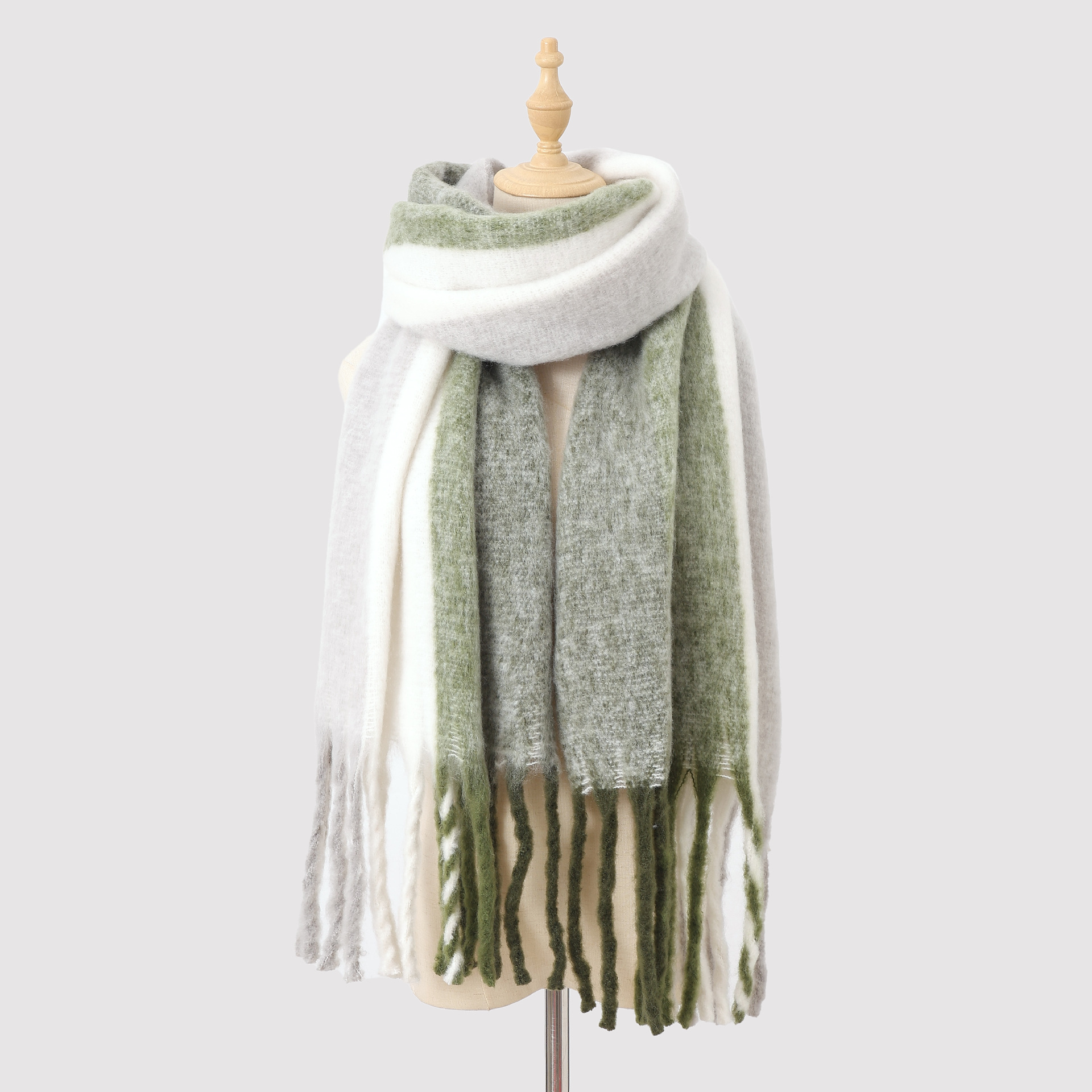 유럽과 미국의 컬러 매칭 모헤어 스카프 여성의 가을과 겨울 하이 엔드 센스 두꺼운 따뜻한 올 매치 스카프 간단한 올 매치 스카프