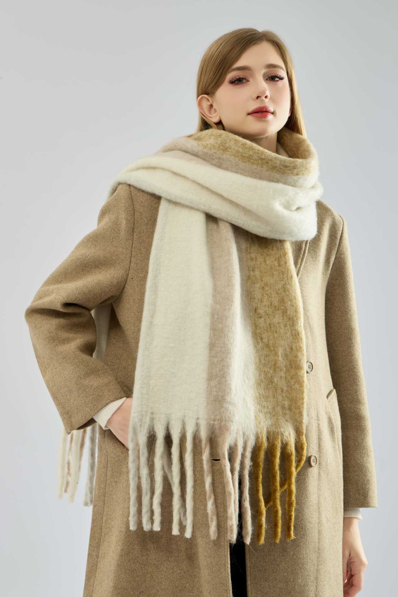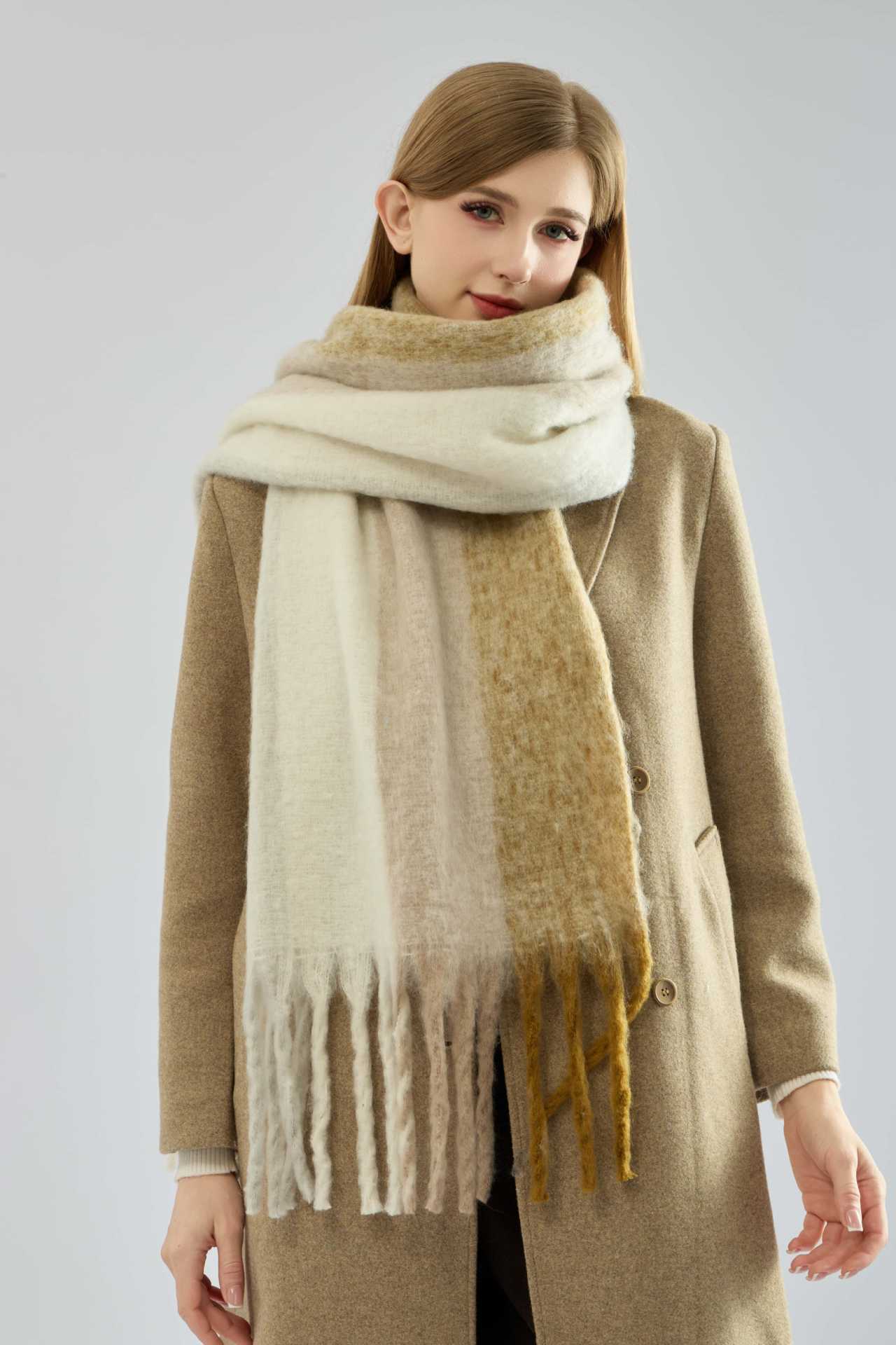 유럽과 미국의 컬러 매칭 모헤어 스카프 여성의 가을과 겨울 하이 엔드 센스 두꺼운 따뜻한 올 매치 스카프 간단한 올 매치 스카프스토어 가기