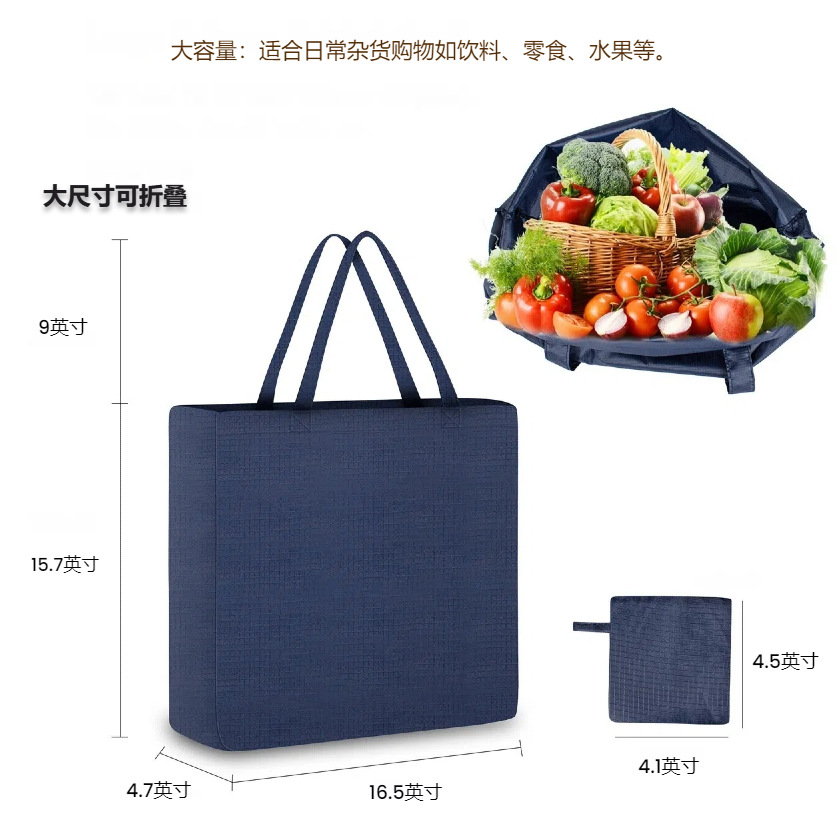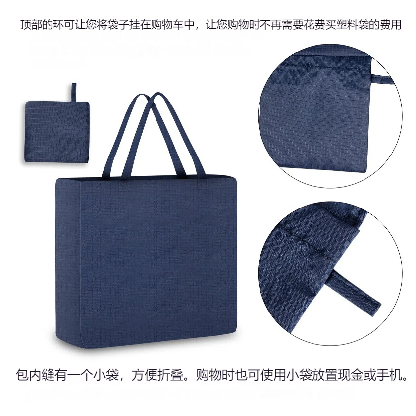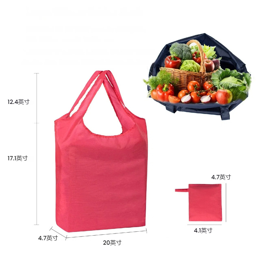 폴리 에스테르 재고 슈퍼마켓 핸드백 나일론 환경 보호 가방 접이식 휴대용 사각 가방 양식 보관 쇼핑백스토어 가기