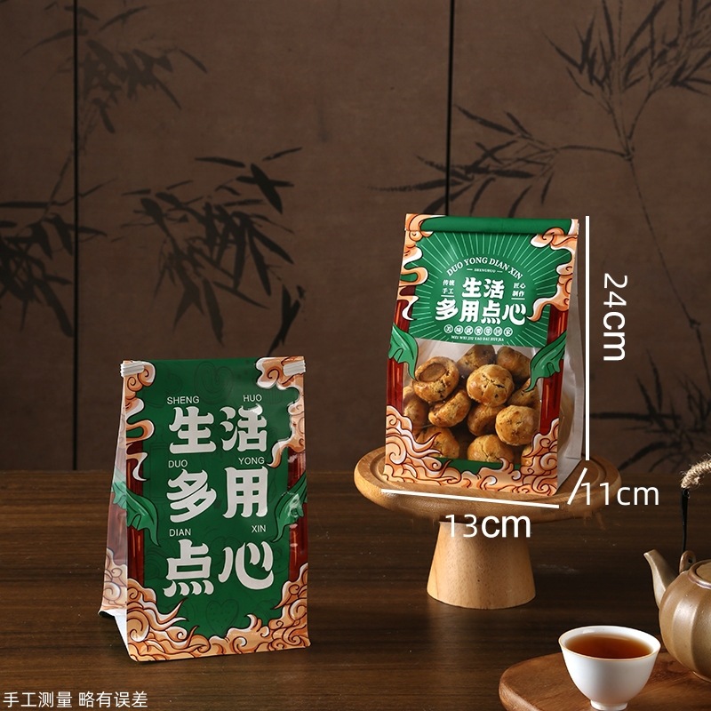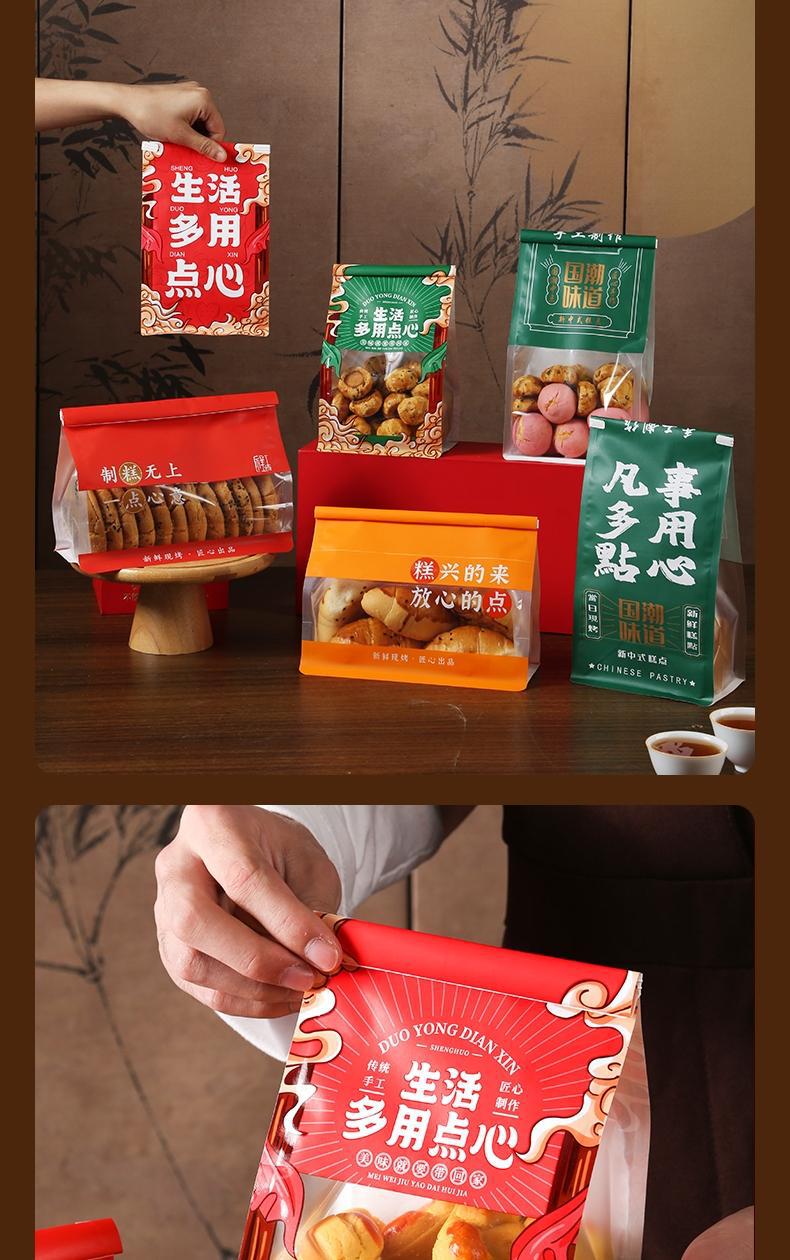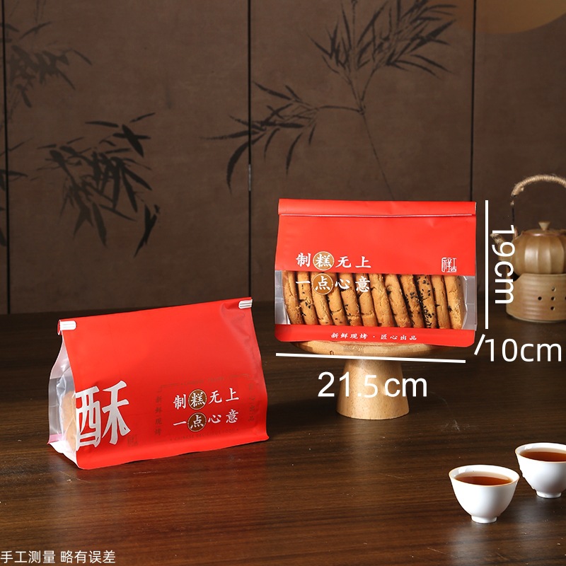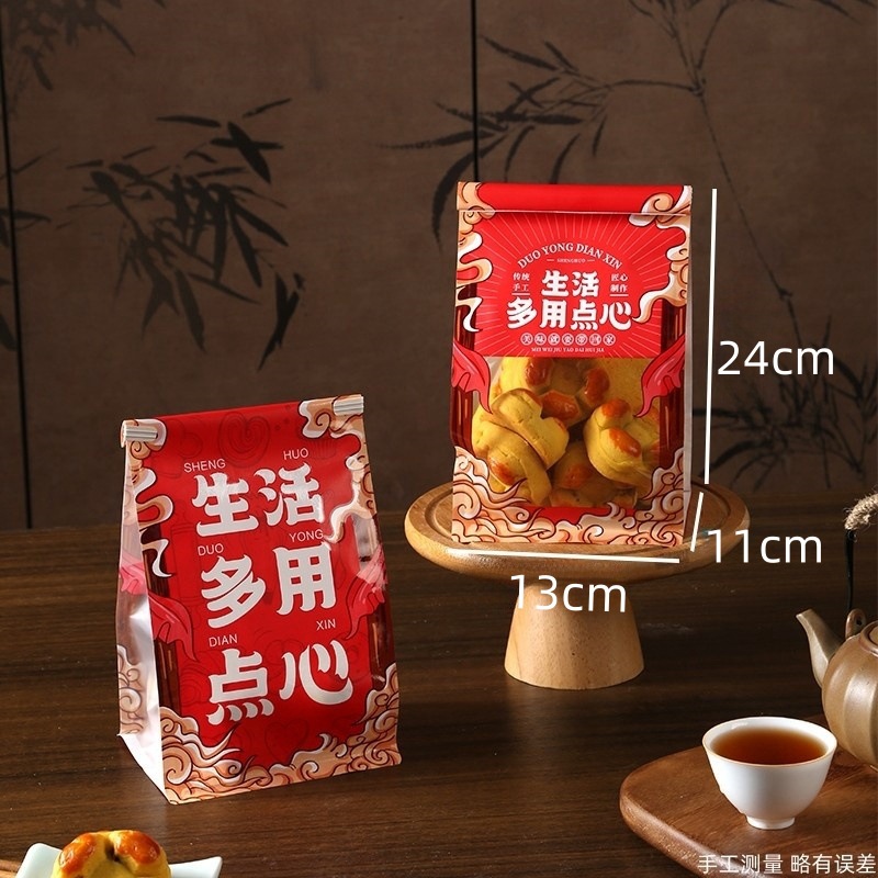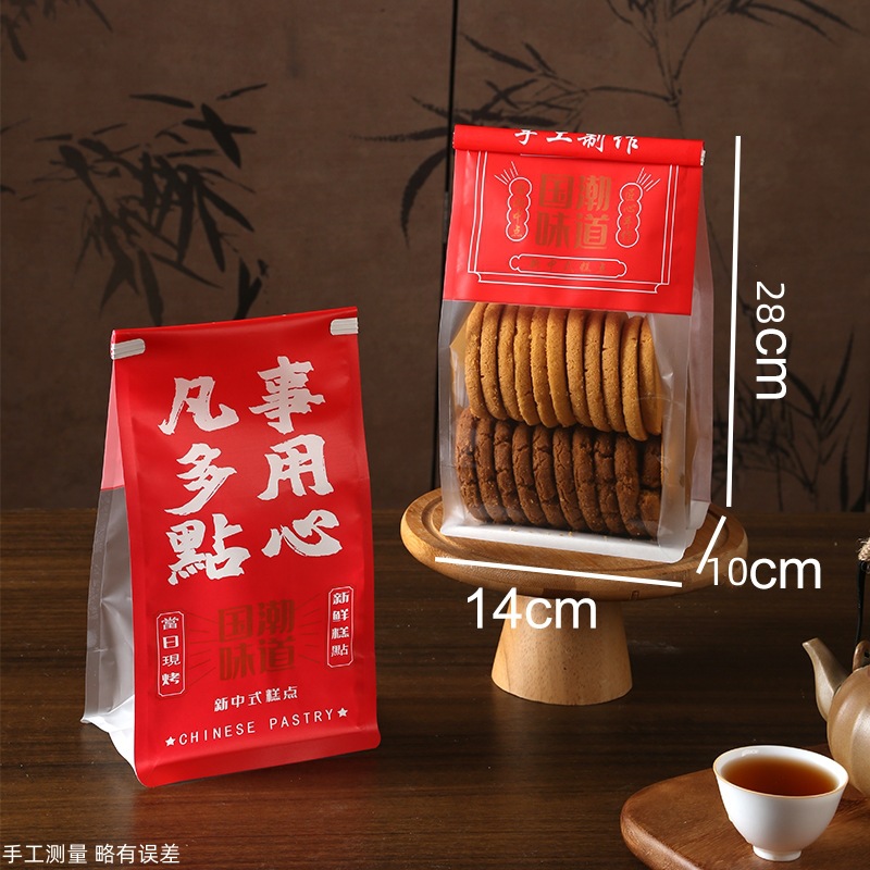 국가 조수 맛 중국 스타일 과자 포장 가방 비스킷 복숭아 크리스프 계란 롤 디저트 바삭한 가방 빵 컬링 자체 밀봉 가방스토어 가기