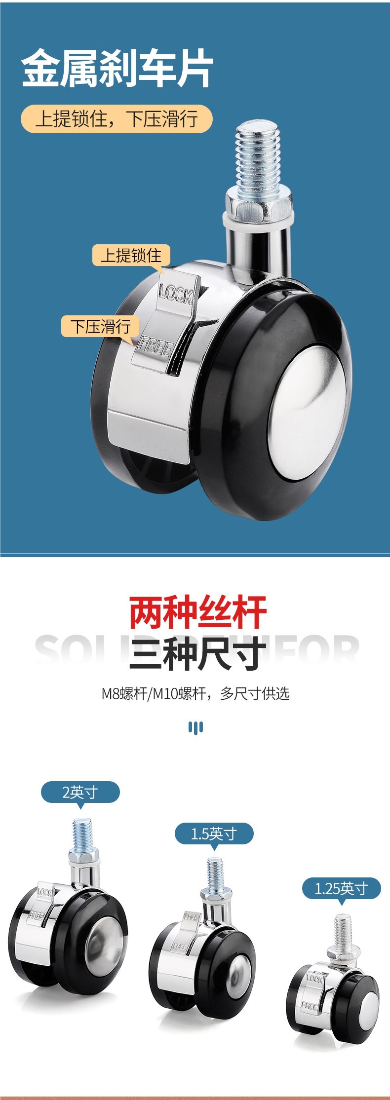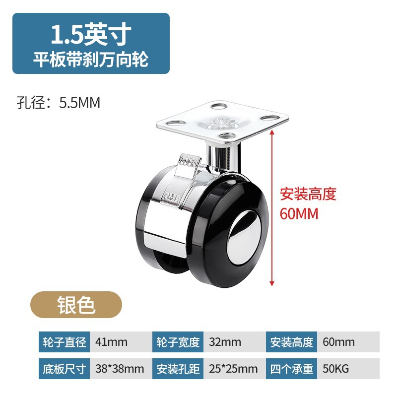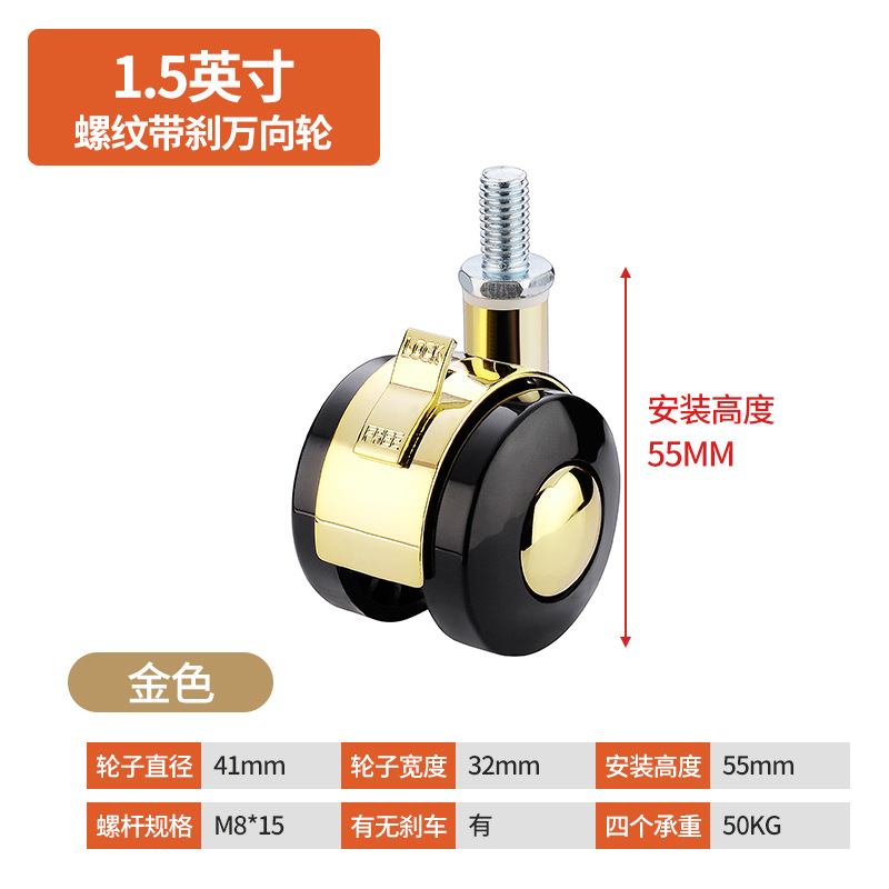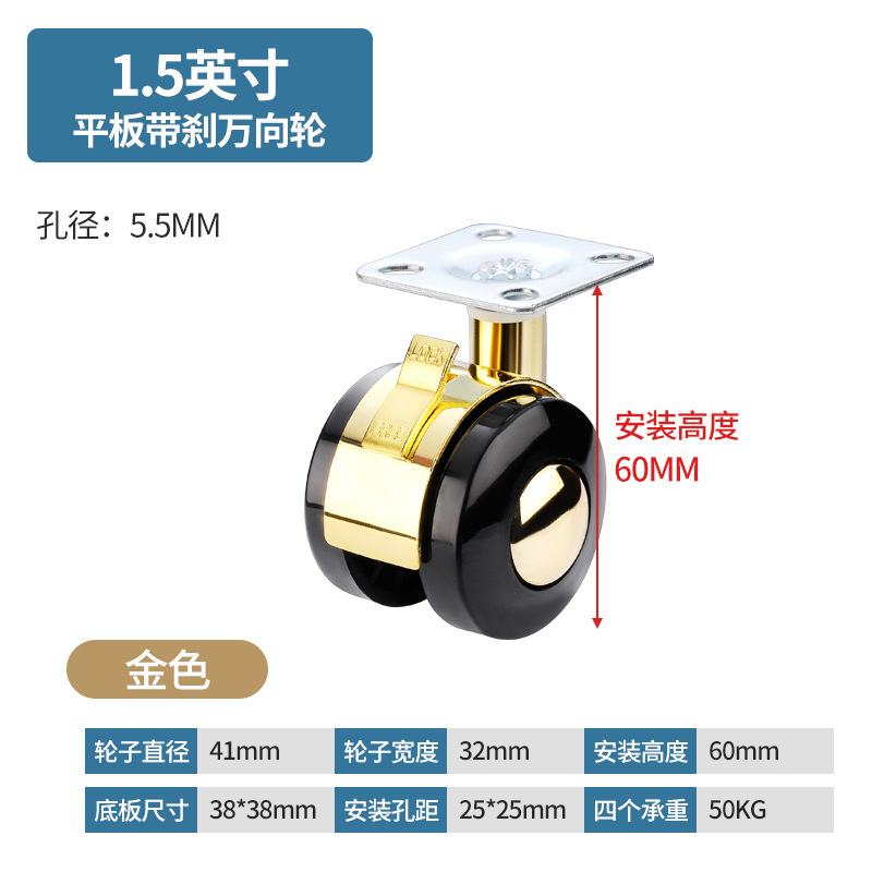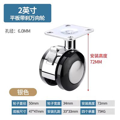 가구 유니버설 휠 자동 합금 휠 회전 휠 플랫 모바일 유모차 베이비 침대 풀리 브레이크 캐스터