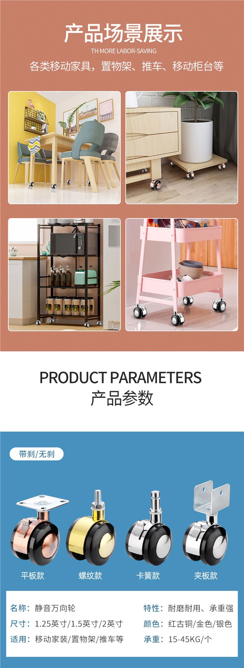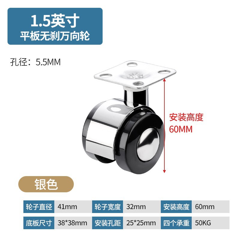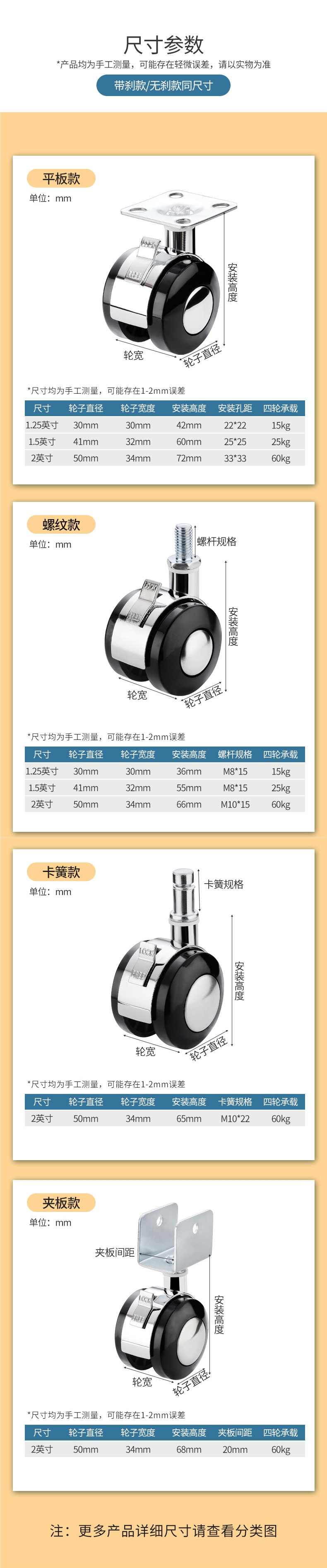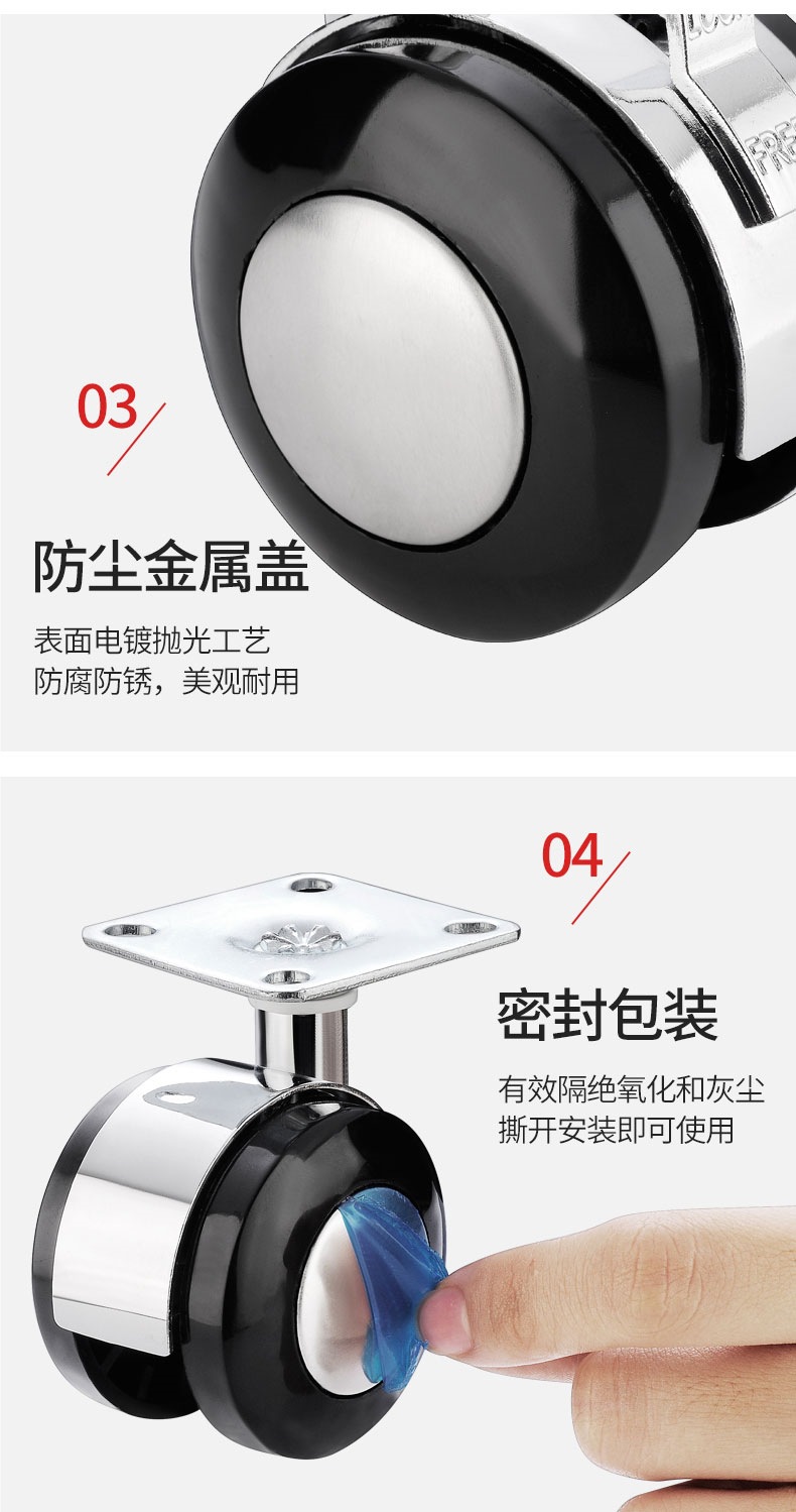 가구 유니버설 휠 자동 합금 휠 회전 휠 플랫 모바일 유모차 베이비 침대 풀리 브레이크 캐스터