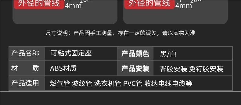펀치없는 수도관 호스 클립 와이어 클립 가스 파이프 리테이너 벽 클립 자체 접착 다운 커머 고정 클립