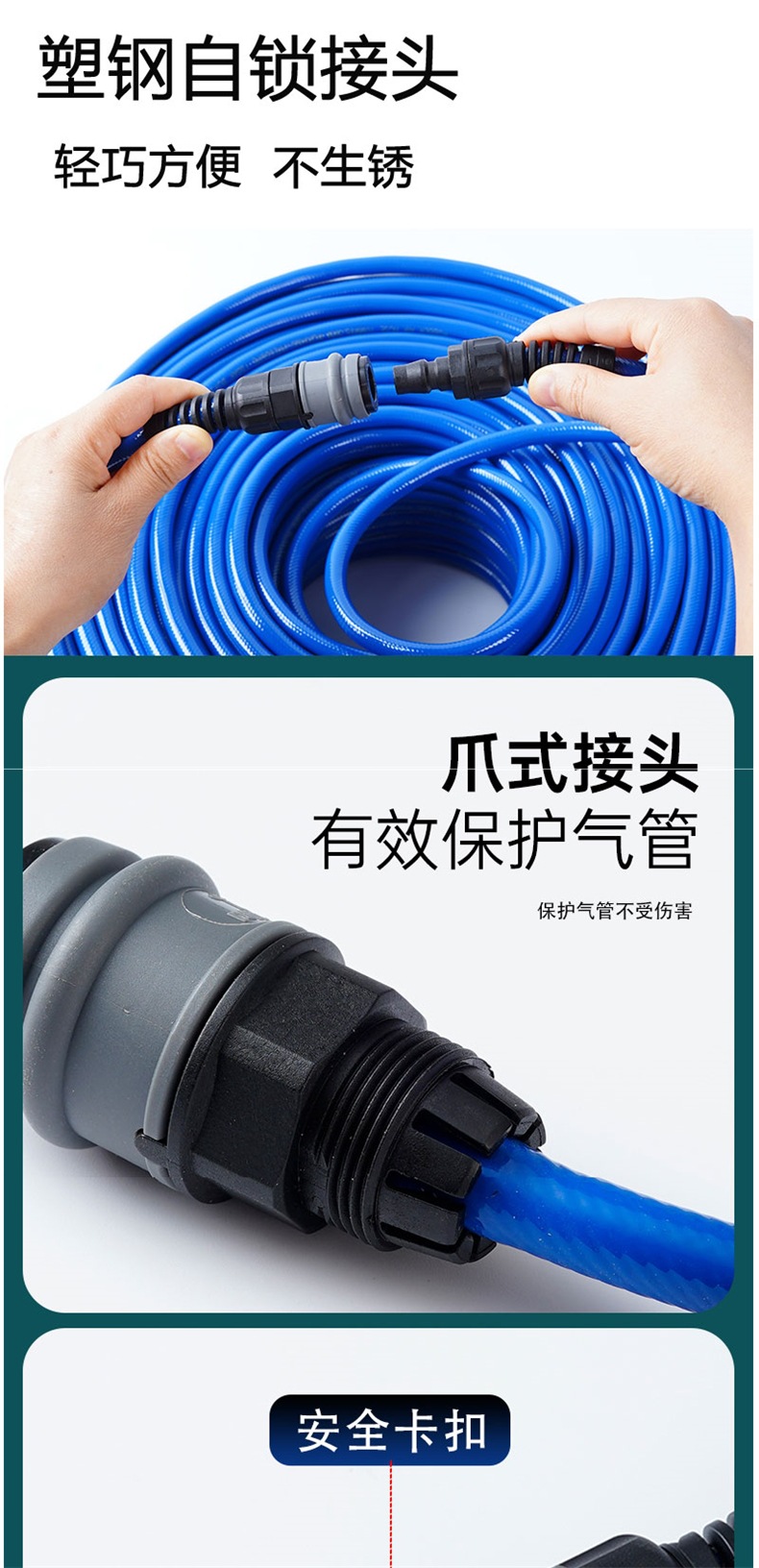 • 6.5×10 부동액 튜브 20m 에는 금속 자동 잠금 커넥터가 함께 제공됩니다.