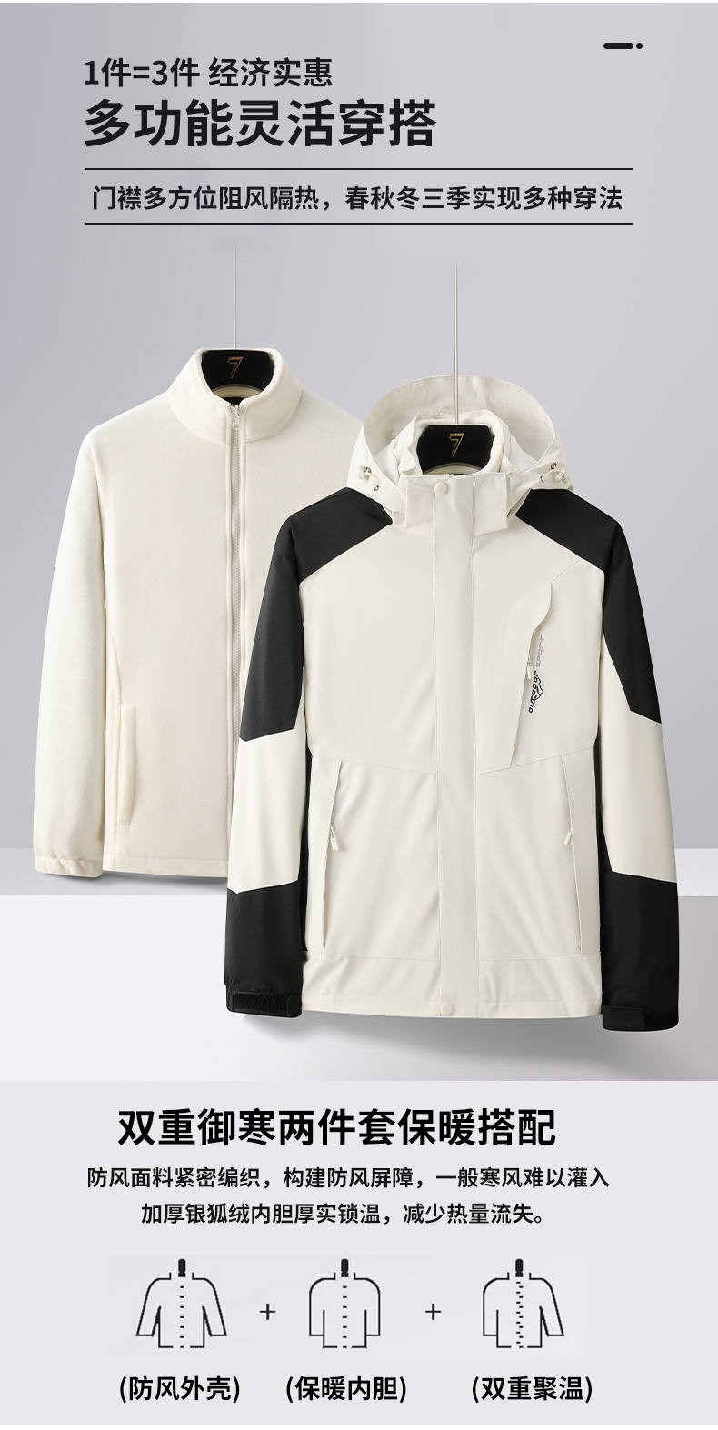 커플의 올 매치 아웃 도어 재킷 겨울 트렌디 브랜드 3 대 1 분리 가능한 재킷 남자 방수 양털 추가 재킷 여성스토어 가기
