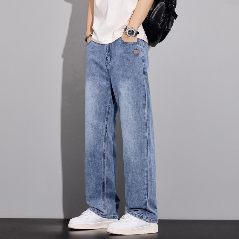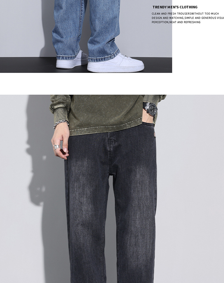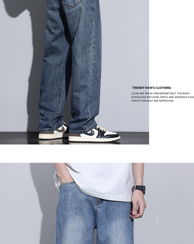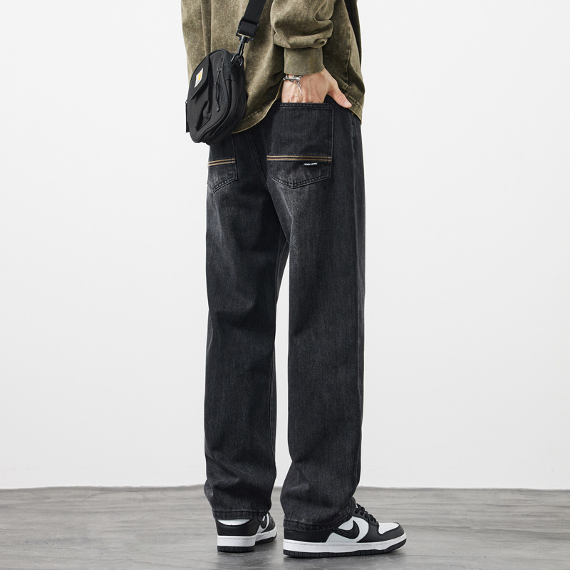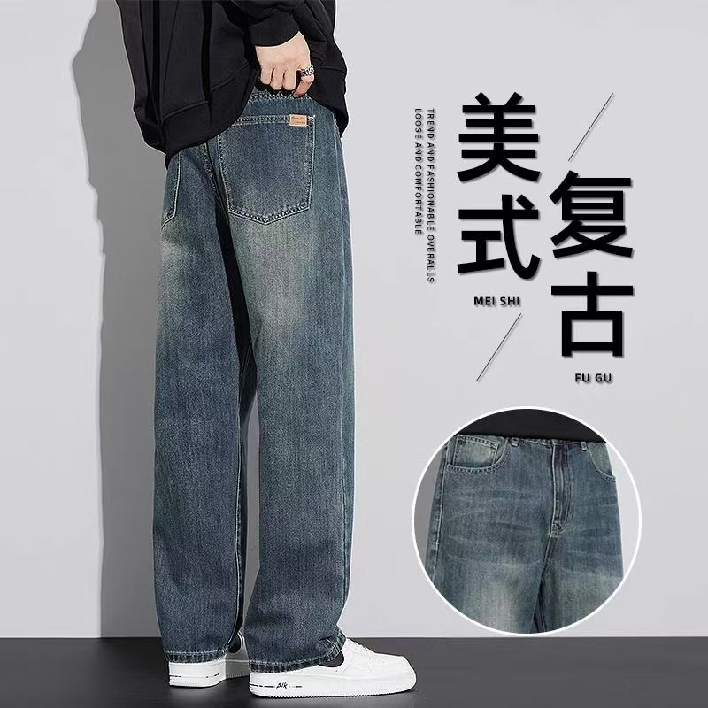 봄과 가을 새로운 느슨한 스트레이트 청바지 남성 유행 브랜드 2025 봄과 여름 미국 하이 스트리트 복고풍 남성 긴 바지스토어 가기