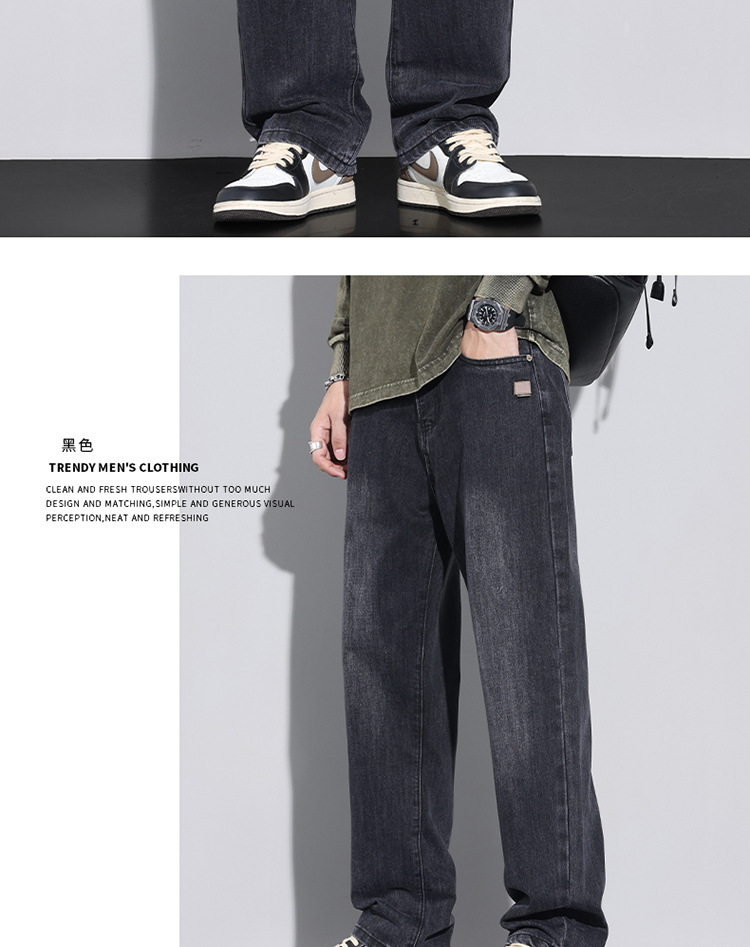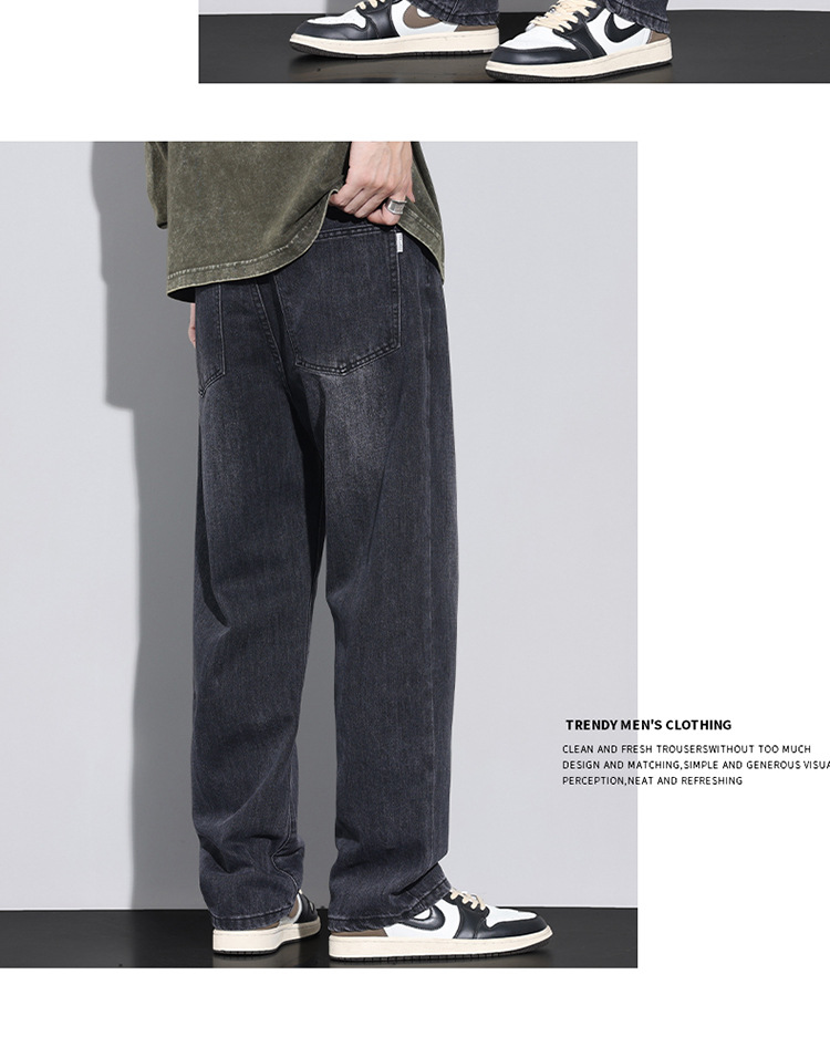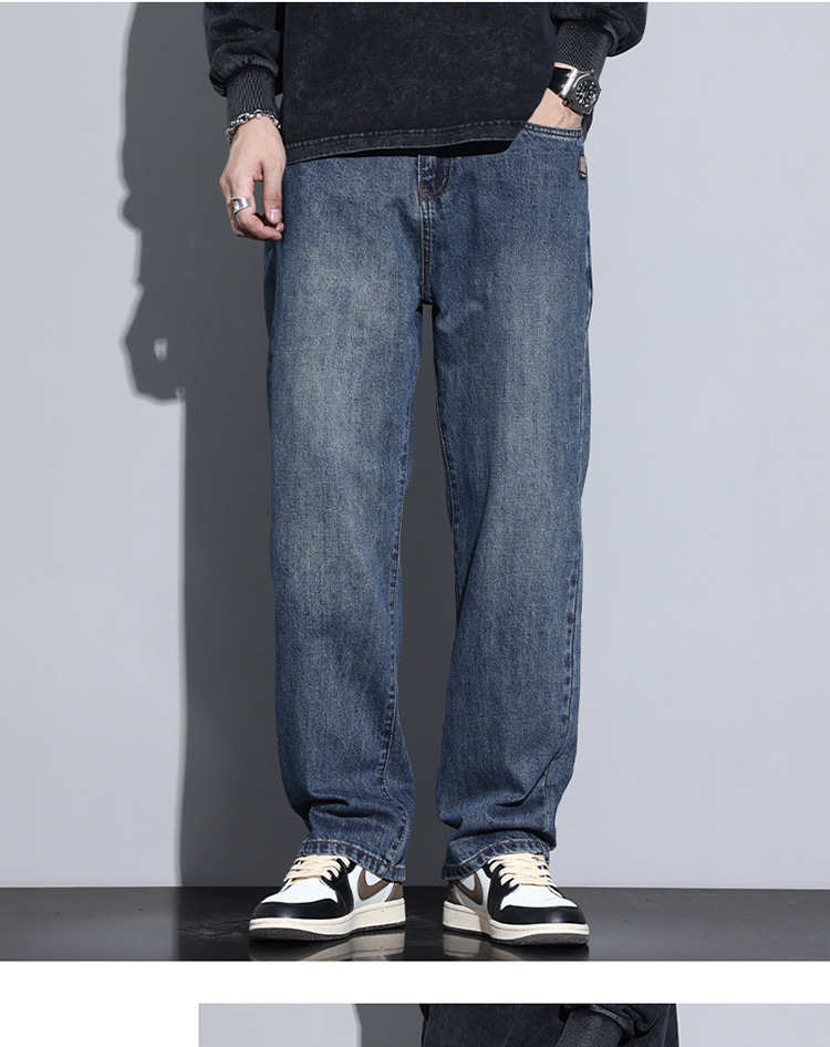 봄과 가을 새로운 느슨한 스트레이트 청바지 남성 유행 브랜드 2025 봄과 여름 미국 하이 스트리트 복고풍 남성 긴 바지