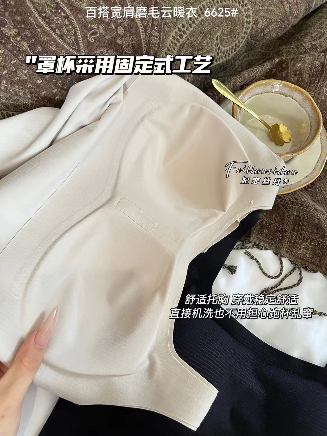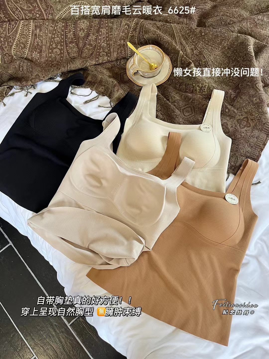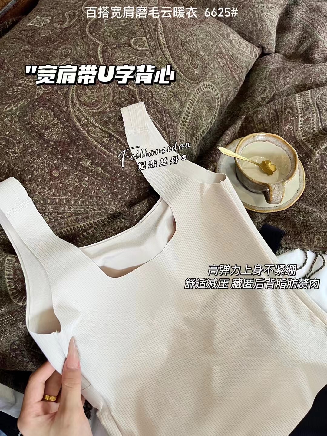 가을과 겨울 6625 원활한 샌딩 올 매치 와이드 숄더 구름 따뜻한 옷 착용없는 브래지어 올인원 컵 여성 조끼 탄성스토어 가기