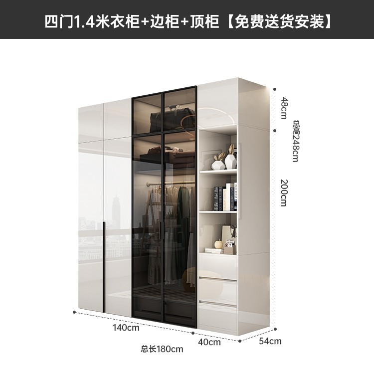 • 4도어 1.4m 옷장 + 측면 캐비닛 + 상단 캐비닛(두꺼운 후면 패널)