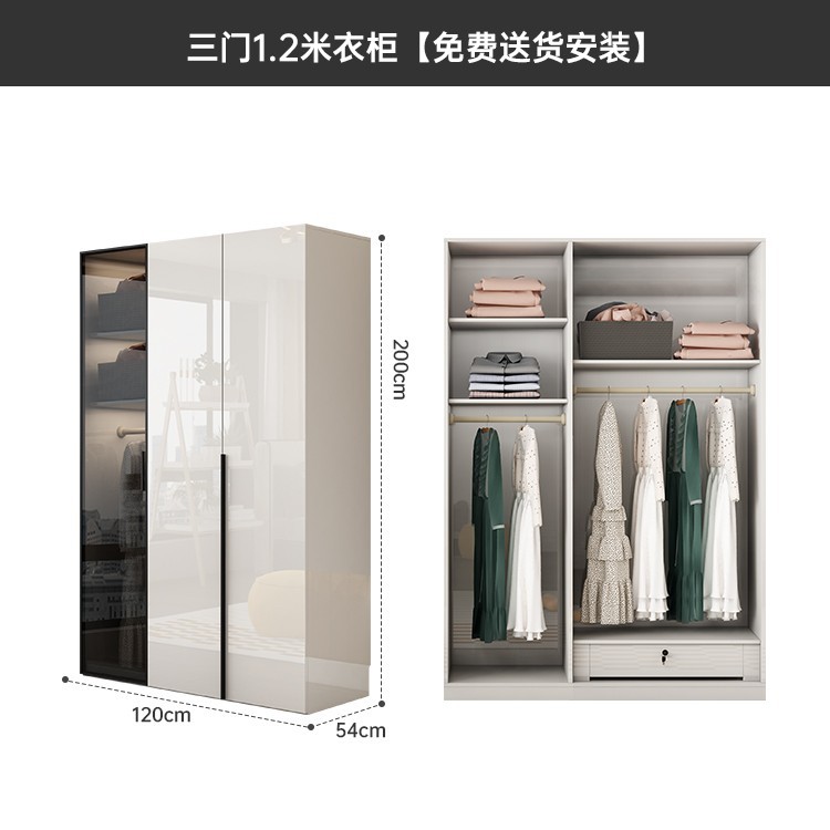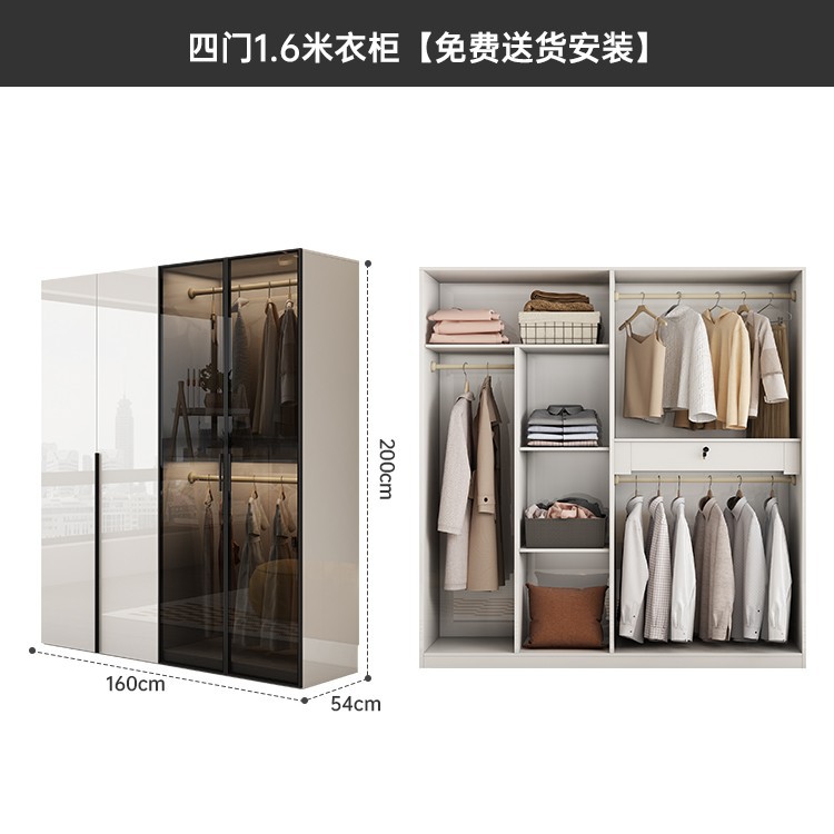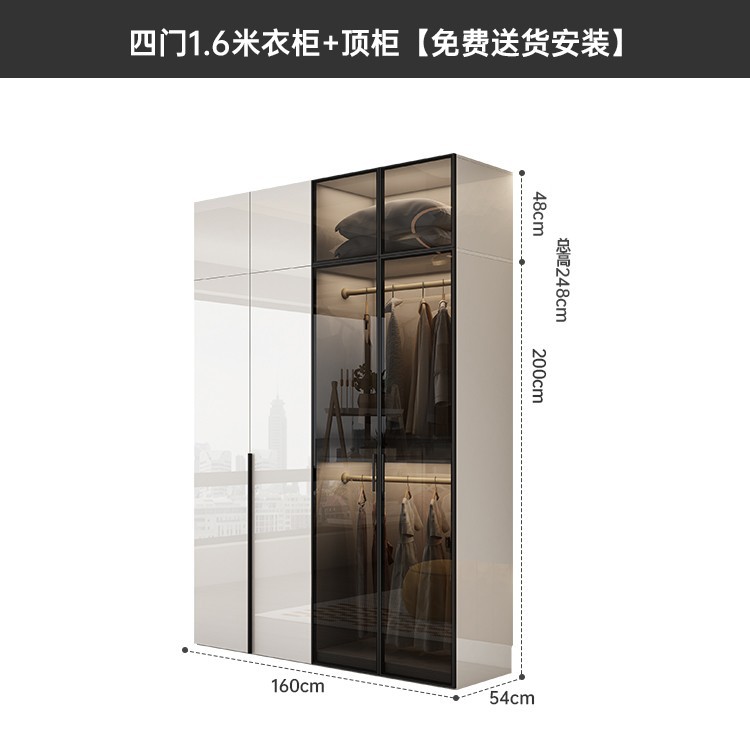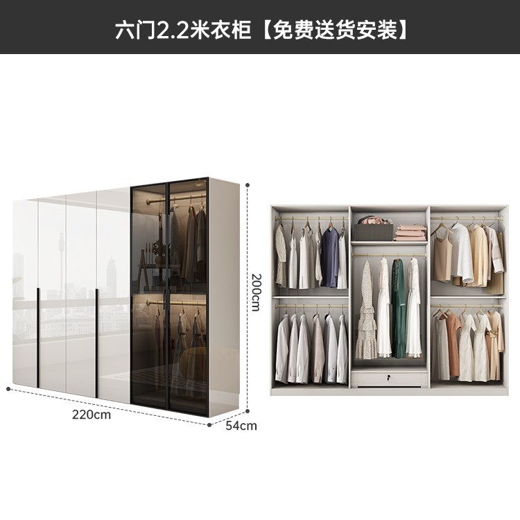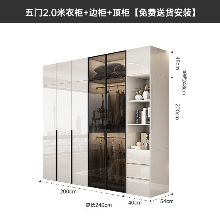 가벼운 고급 유리 문 옷장 홈 침실 3456 대형 옷장과 현대 간단한 단단한 나무 페인트 캐비닛