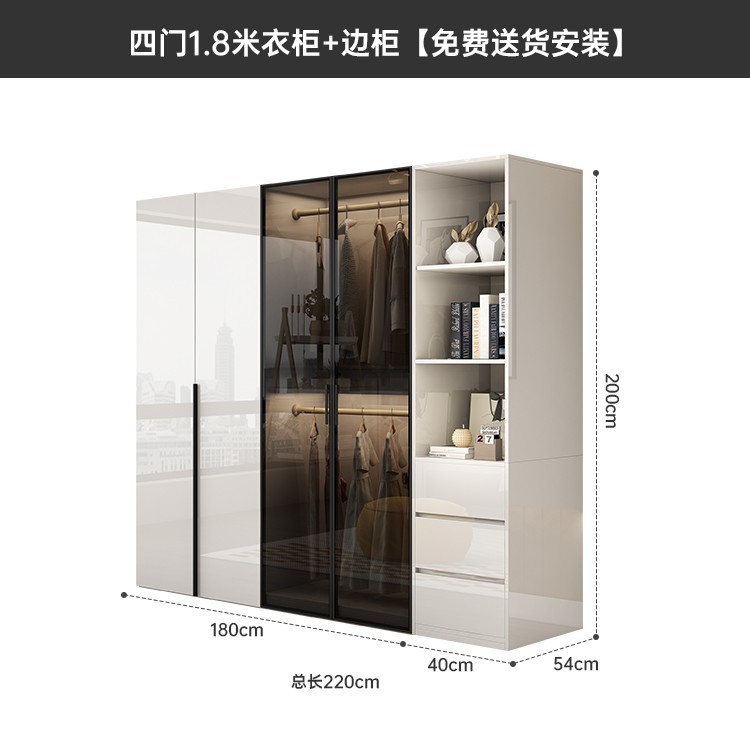 • 4도어 1.8m 옷장 + 사이드 캐비닛(두꺼운 후면 패널)